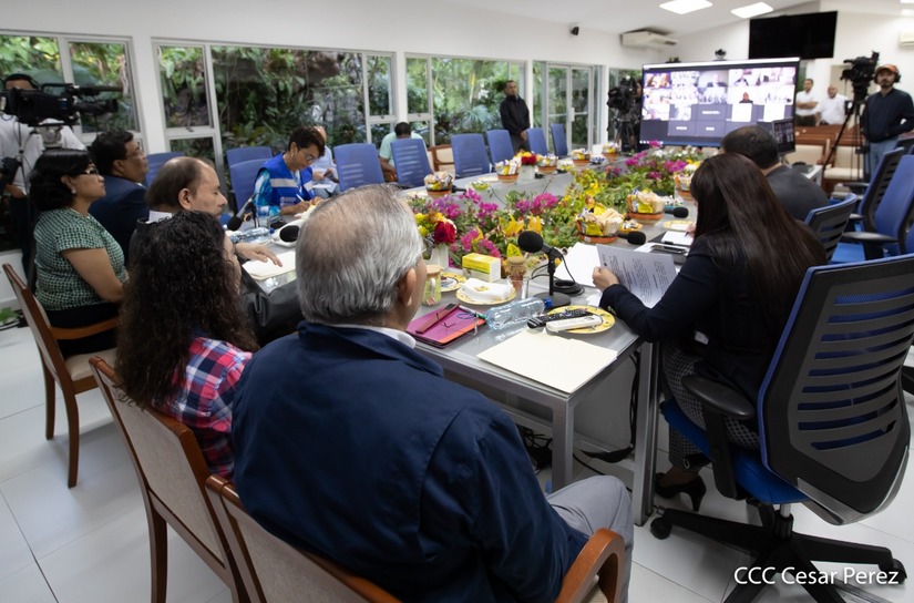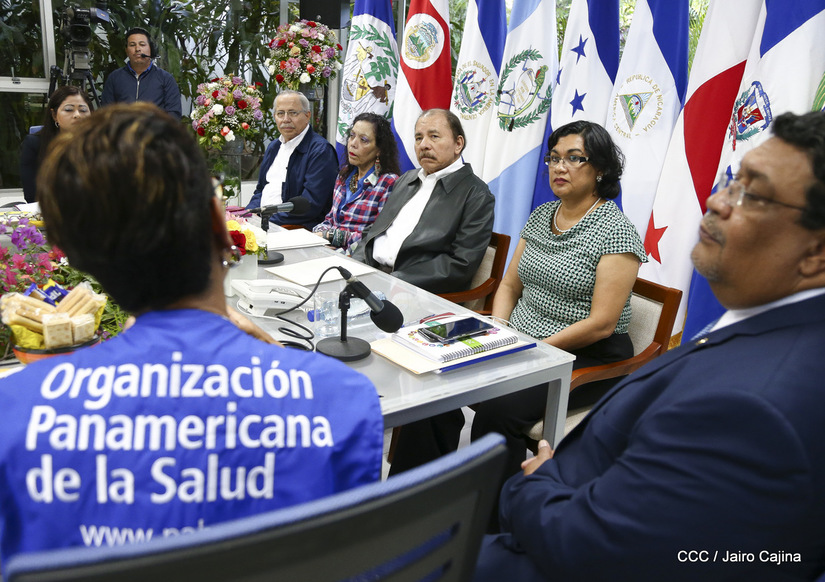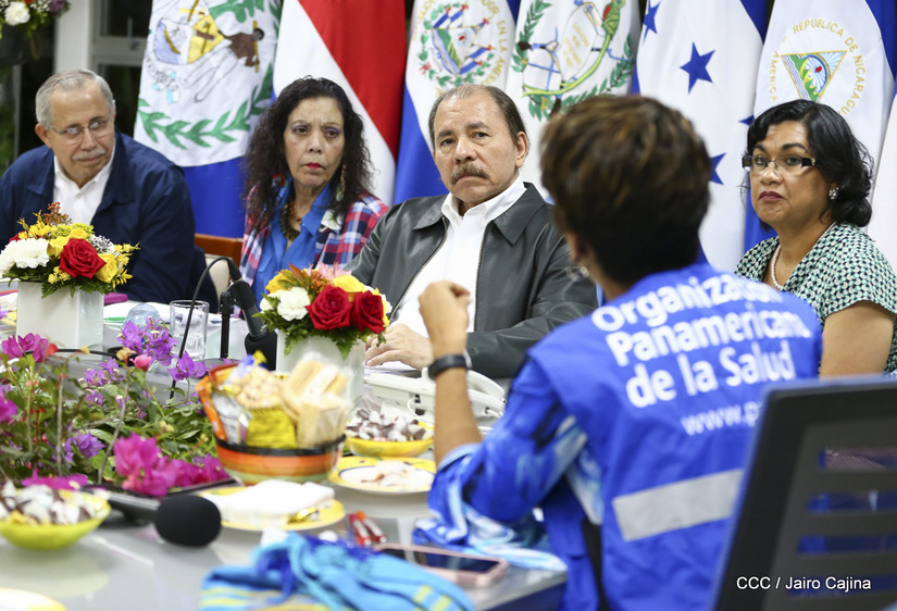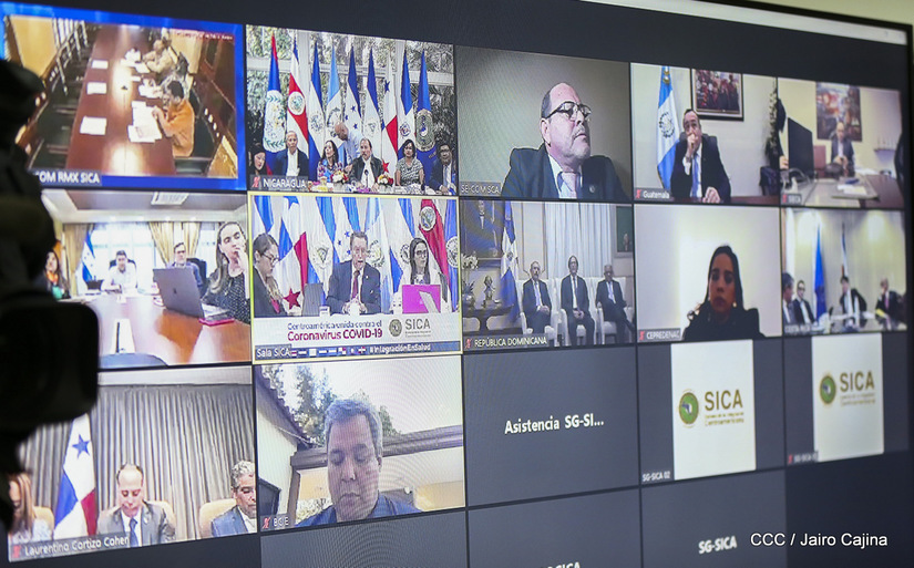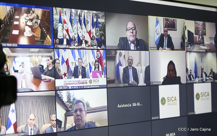 El presidente comandante Daniel Ortega Saavedra y la vicepresidenta compañera Rosario Murillo, junto a las autoridades del Ministerio de Salud y la representante de la OPS en Nicaragua, participaron en la reunión virtual extraordinaria de Jefes de Estado y de Gobierno del SICA, en la que se emitió una declaración con recomendaciones a los estados miembros y órganos del SICA para actuar frente a la pandemia del Covid-19.