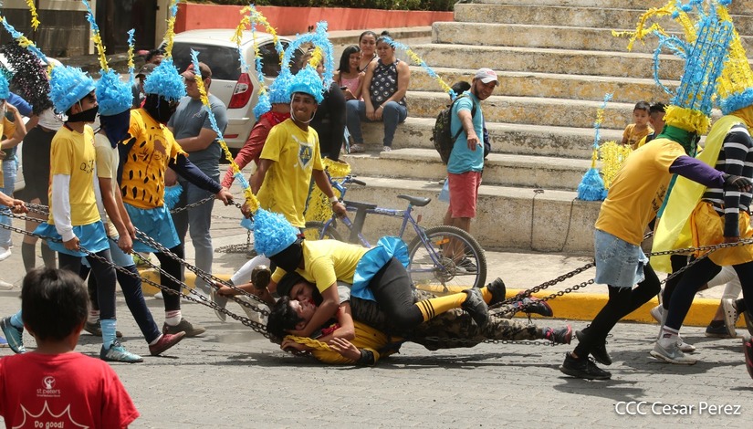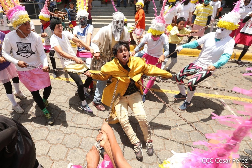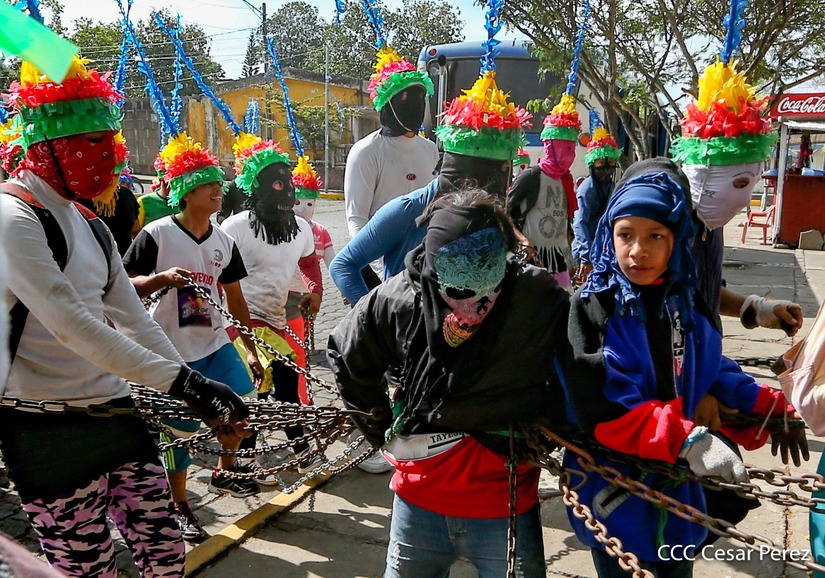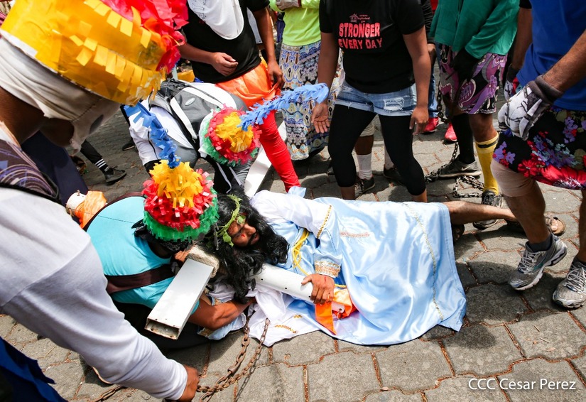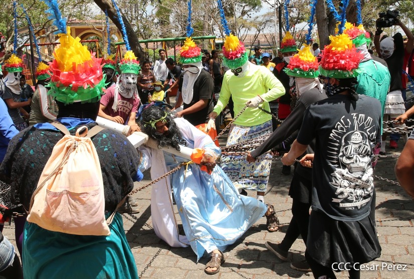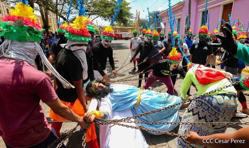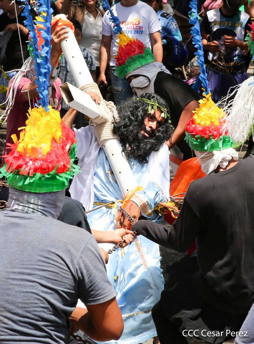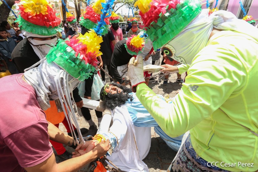 Los judíos de Masatepe volvieron a salir a las calles este jueves Santo para revivir la crucifixión de Cristo y traición de Judas. Cada Jueves Santos vestidos con coloridos atuendos jóvenes, adultos y niños se arman de grandes cadenas con las que atrapan a Judas para arrastrarlo por todas calles de Masatepe, un municipio del municipio de Masaya.