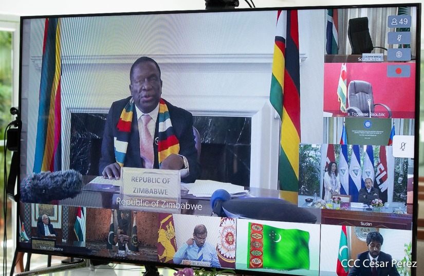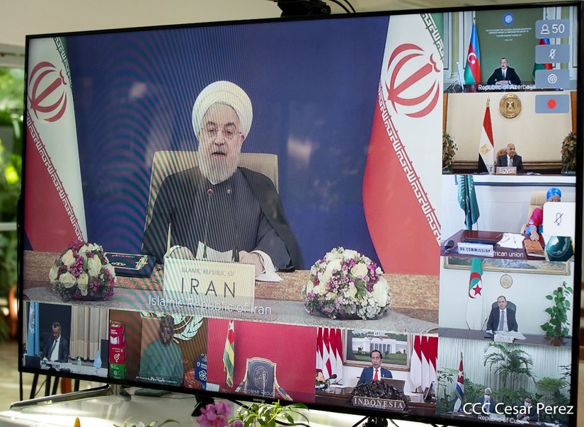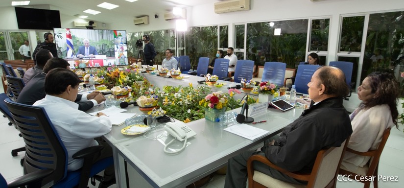 El presidente de la República, comandante Daniel Ortega Saavedra, y la vicepresidenta compañera Rosario Murillo, participaron por videoconferencia en la Cumbre Virtual de Mandatarios, organizada por el Movimiento de Países No Alineados, MNOAL, para abordar de la pandemia de la Covid-19.
