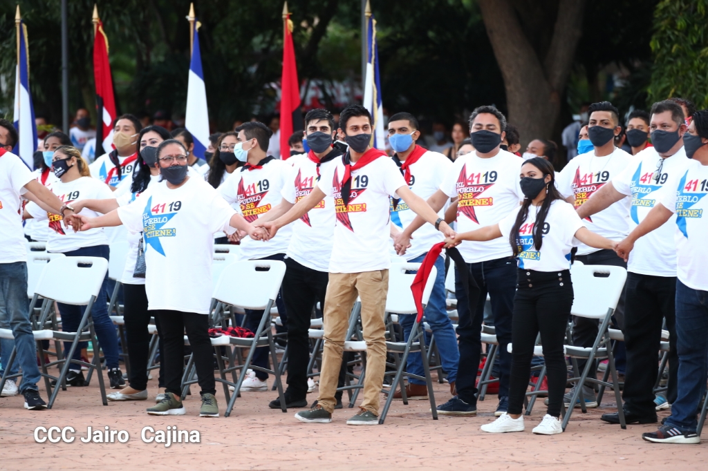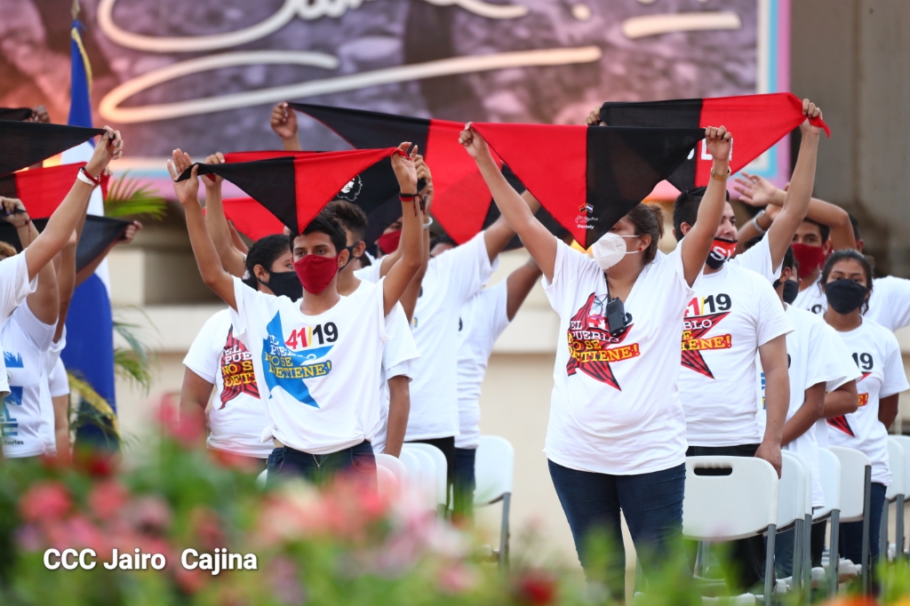El presidente de Nicaragua, Comandante Daniel Ortega y la vicepresidenta compañera Rosario Murillo, presidieron el acto del 41 aniversario del Triunfo de la Revolución Popular Sandinista que se desarrolló en la histórica Plaza de la Revolución en Managua.