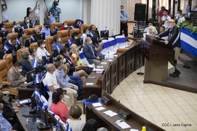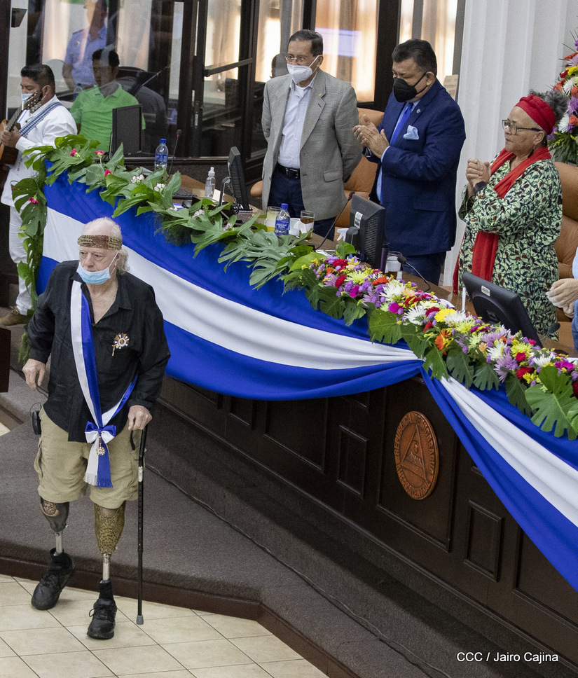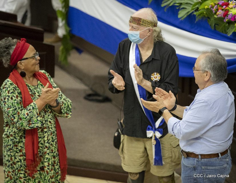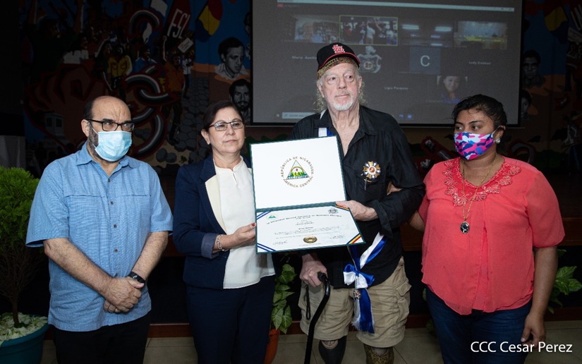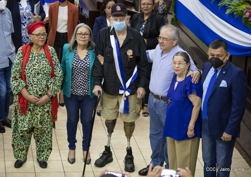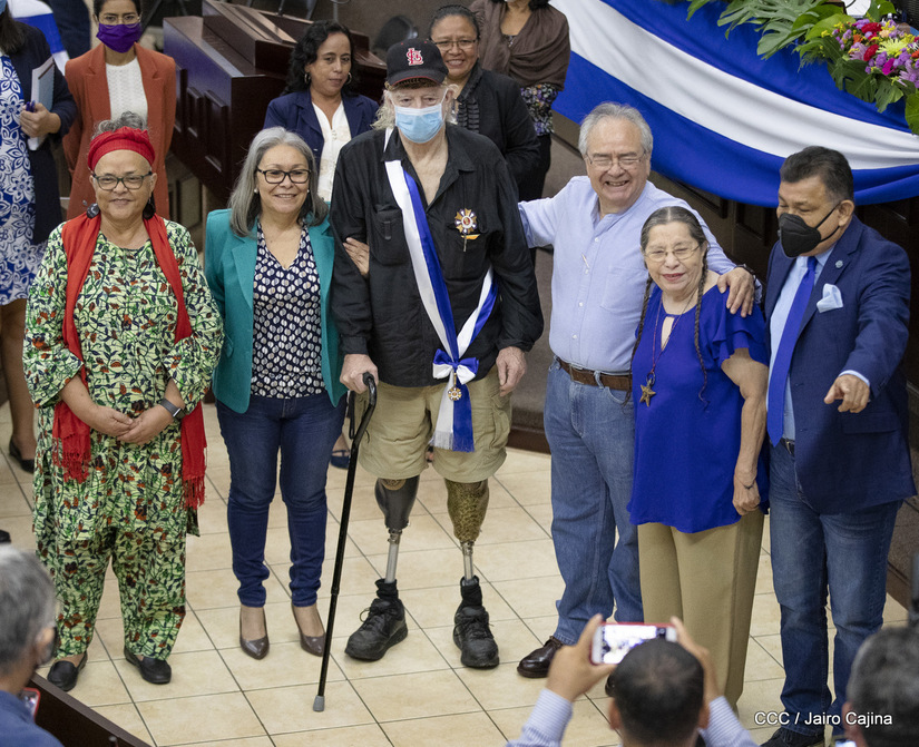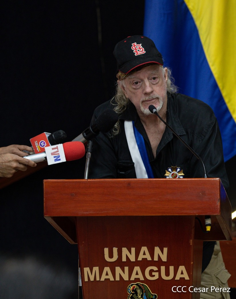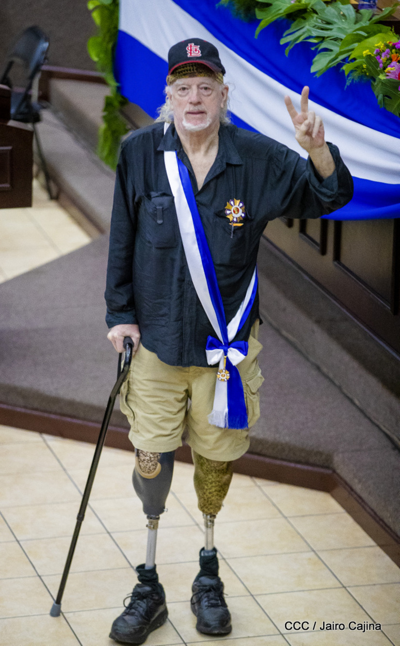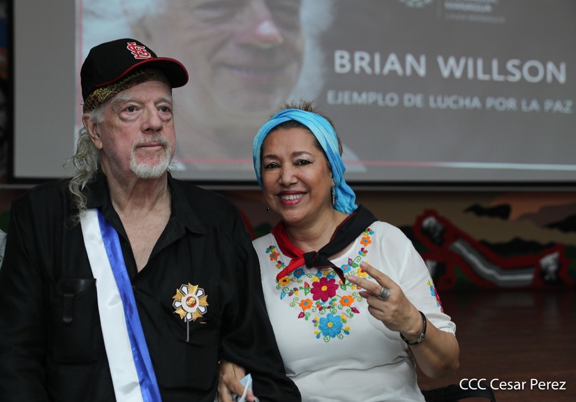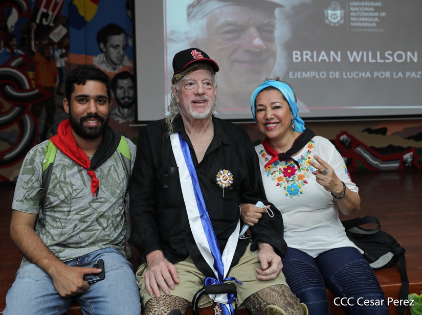 Brian Wilson, héroe de la solidaridad, recibió este martes entre aplausos la orden José dolores Estrada batalla de San Jacinto en grado de Gran Cruz. La UNAN Managua también le rindió homenaje al gran amigo de Nicaragua, el compañero Brian Wilson, héroe de la solidaridad y ejemplo de lucha por la paz, otorgándole el título honorífico de Visitante Distinguido.