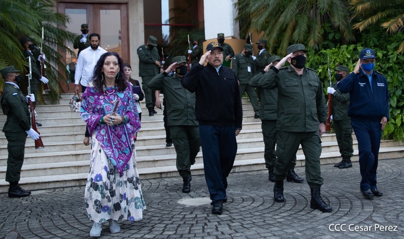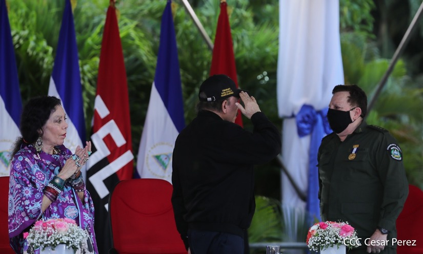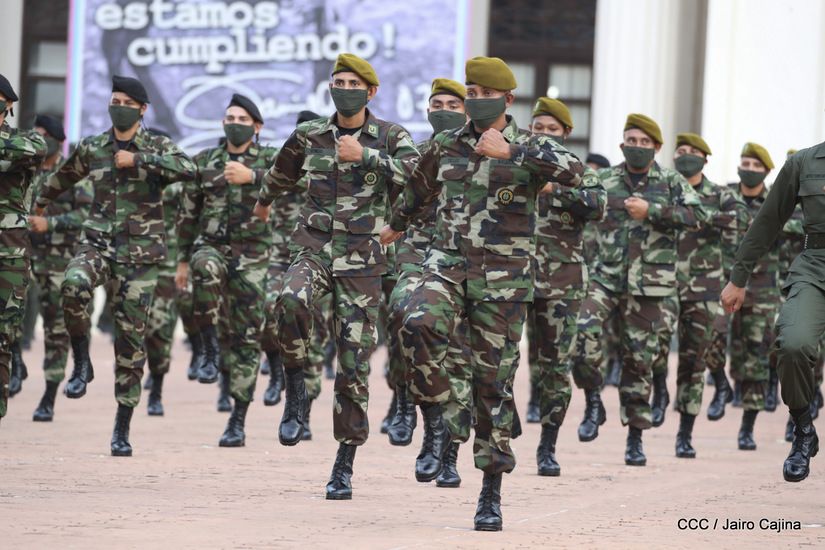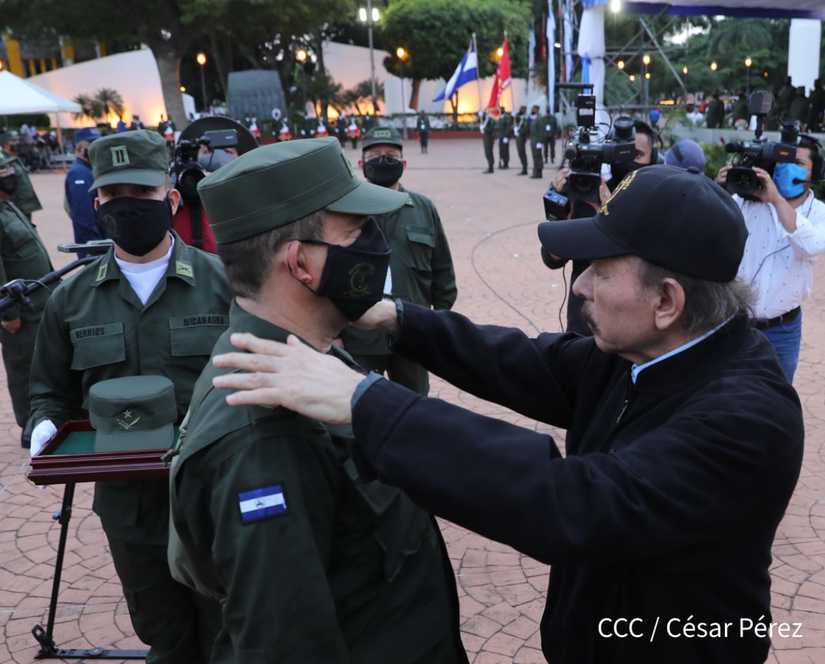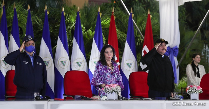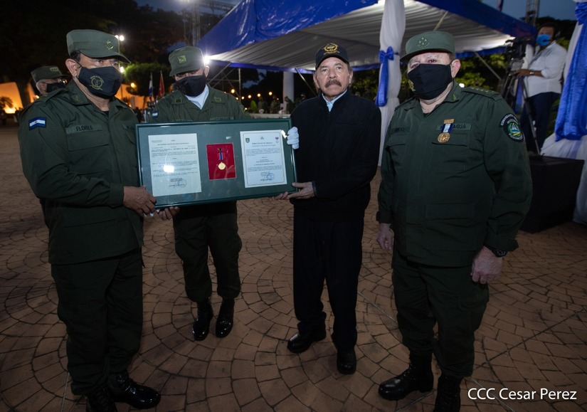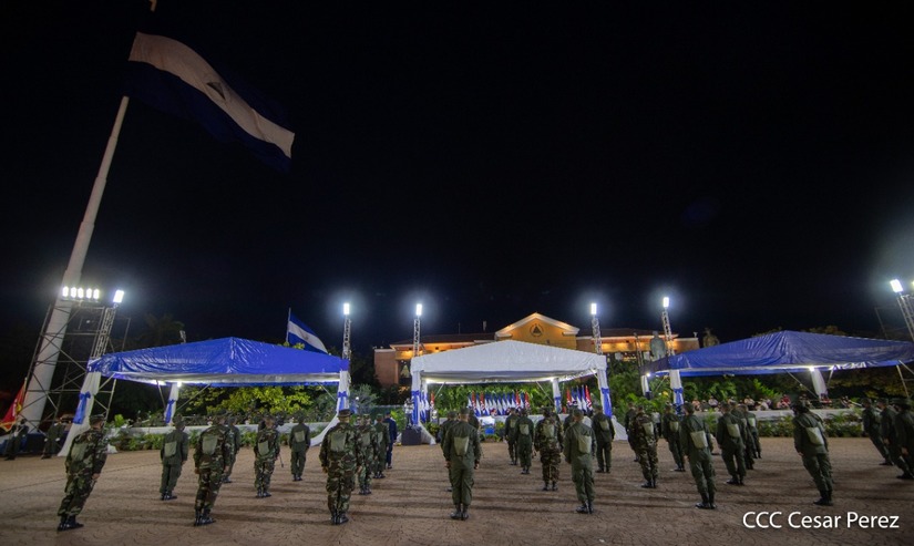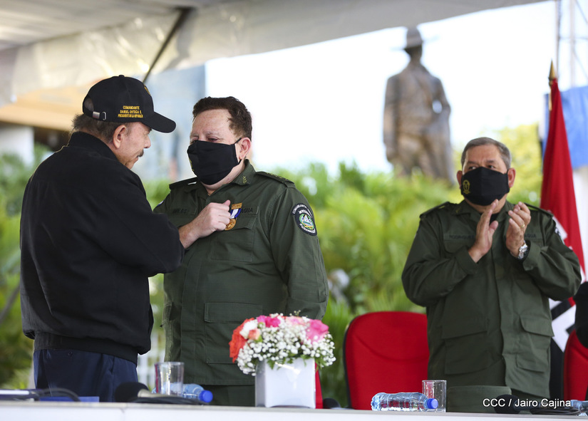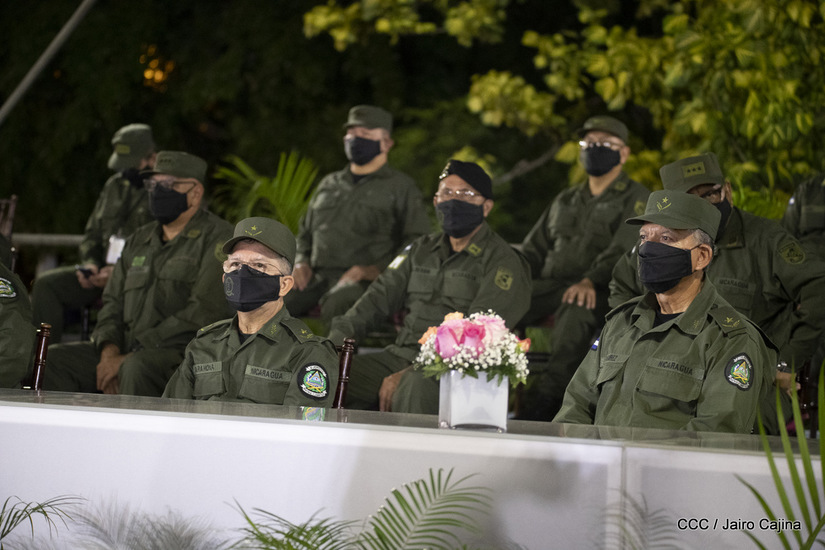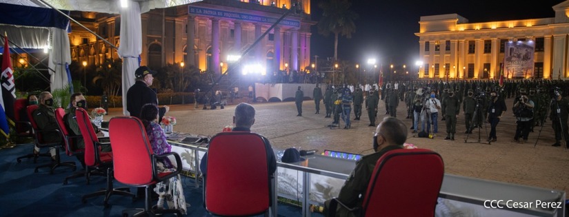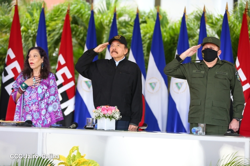 El Presidente de la República, comandante Daniel Ortega Saavedra y la vicepresidenta compañera Rosario Murillo, presidieron junto al comandante en jefe del Ejército de Nicaragua, general de ejército Julio César Avilés Castillo, el acto de conmemoración del 41 aniversario de constitución del Ejército de Nicaragua.