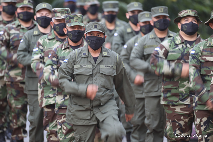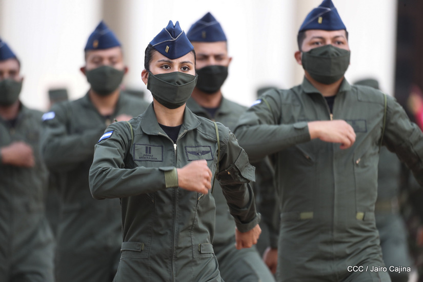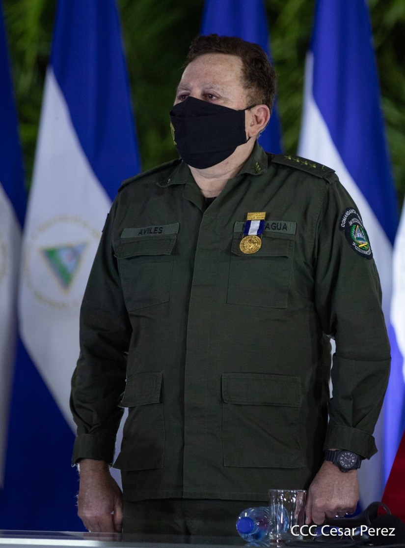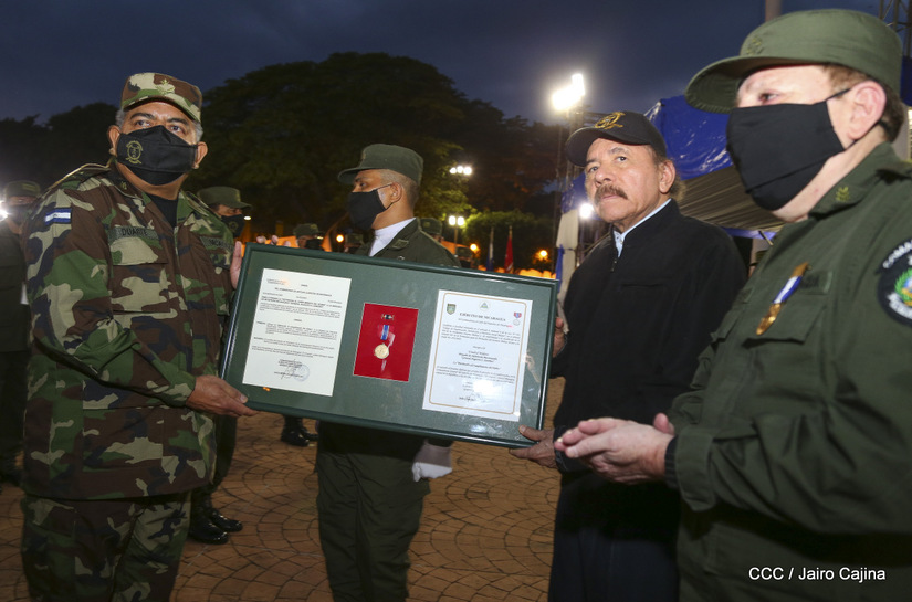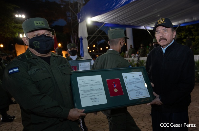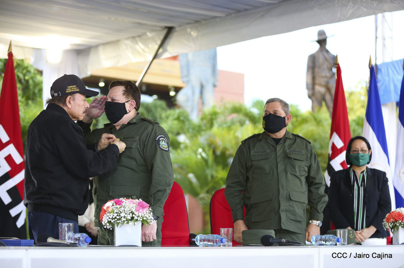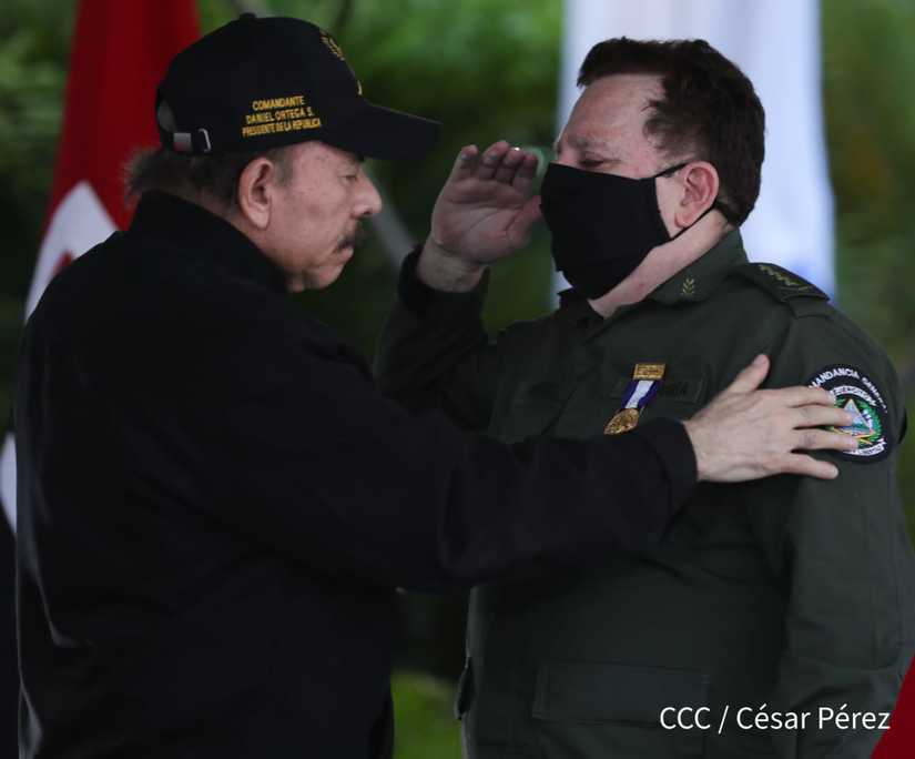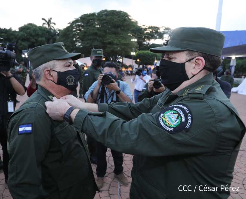 El Presidente de la República, comandante Daniel Ortega Saavedra y la vicepresidenta compañera Rosario Murillo, presidieron junto al comandante en jefe del Ejército de Nicaragua, general de ejército Julio César Avilés Castillo, el acto de conmemoración del 41 aniversario de constitución del Ejército de Nicaragua.
