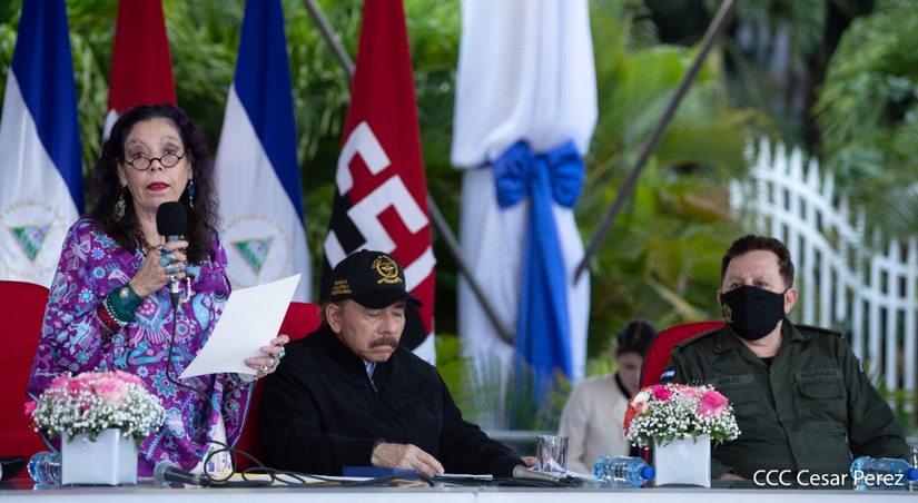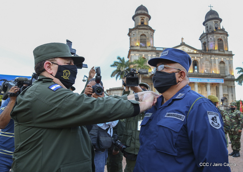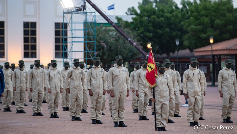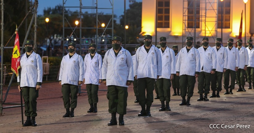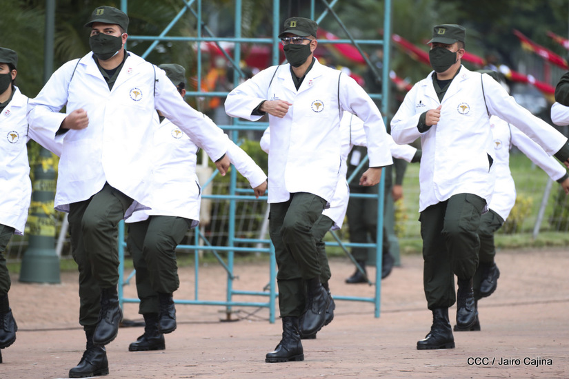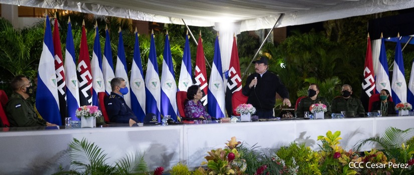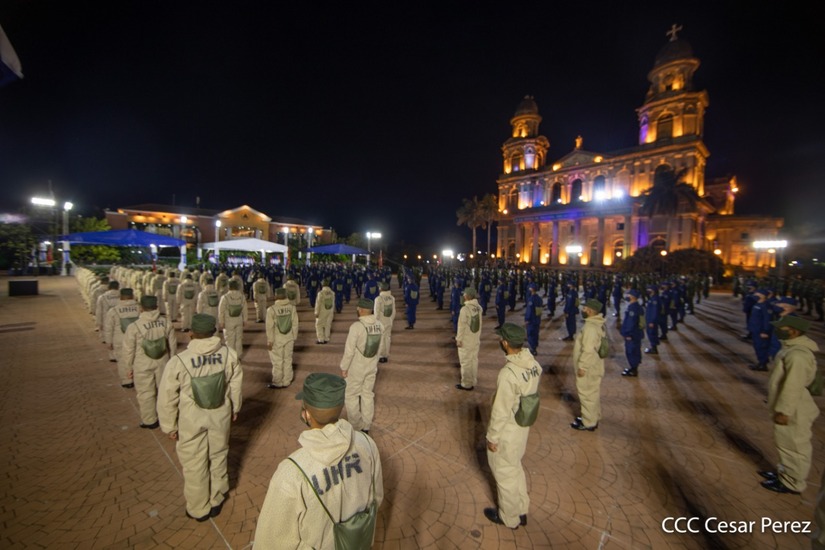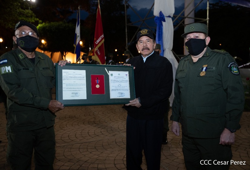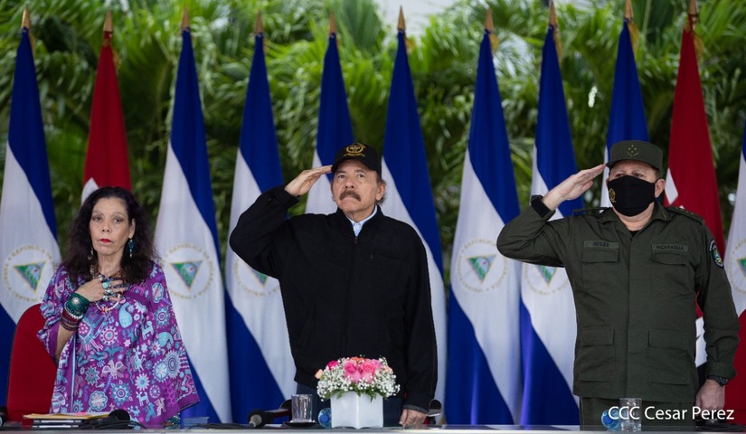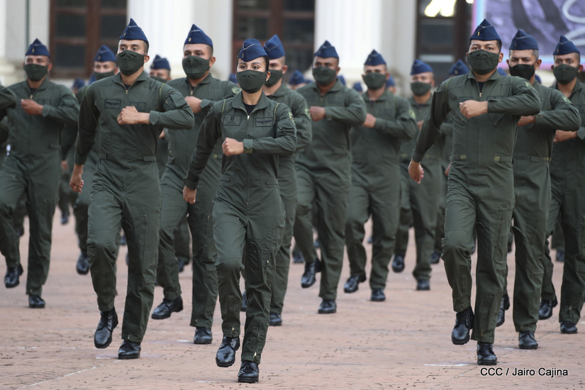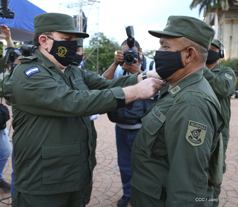 El Presidente de la República, comandante Daniel Ortega Saavedra y la vicepresidenta compañera Rosario Murillo, presidieron junto al comandante en jefe del Ejército de Nicaragua, general de ejército Julio César Avilés Castillo, el acto de conmemoración del 41 aniversario de constitución del Ejército de Nicaragua.