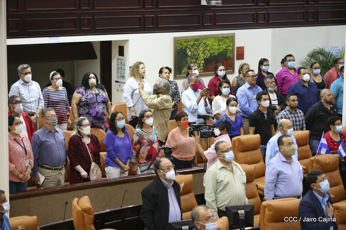 La Asamblea Nacional de Nicaragua celebró este 8 septiembre una sesión especial para conmemorar el Día Internacional del Periodista. En medio de presentaciones artísticas y folclóricas, fueron reconocidas las labores de los hombres y mujeres de prensa, en voz del Presidente de la junta directiva de la Asamblea Nacional, Gustavo Porras.