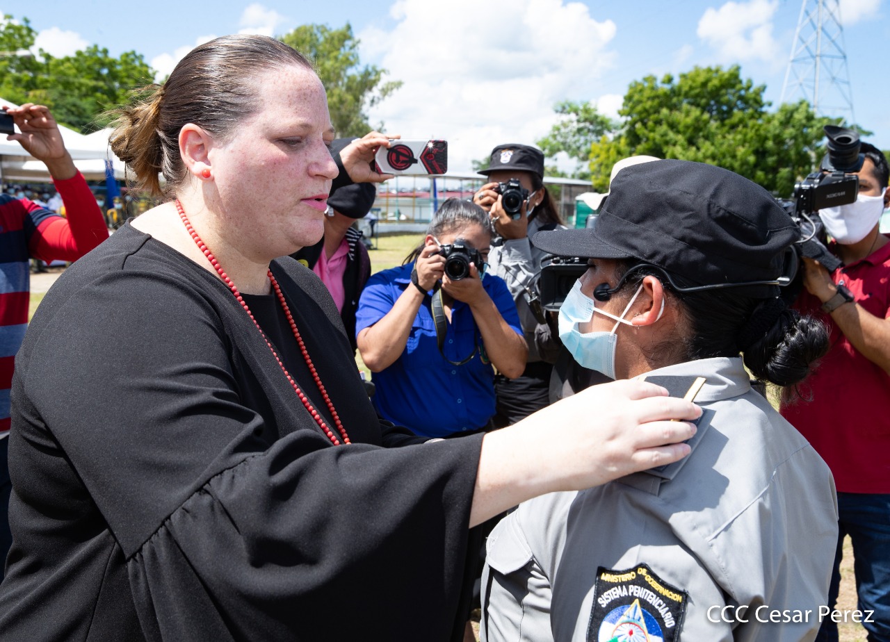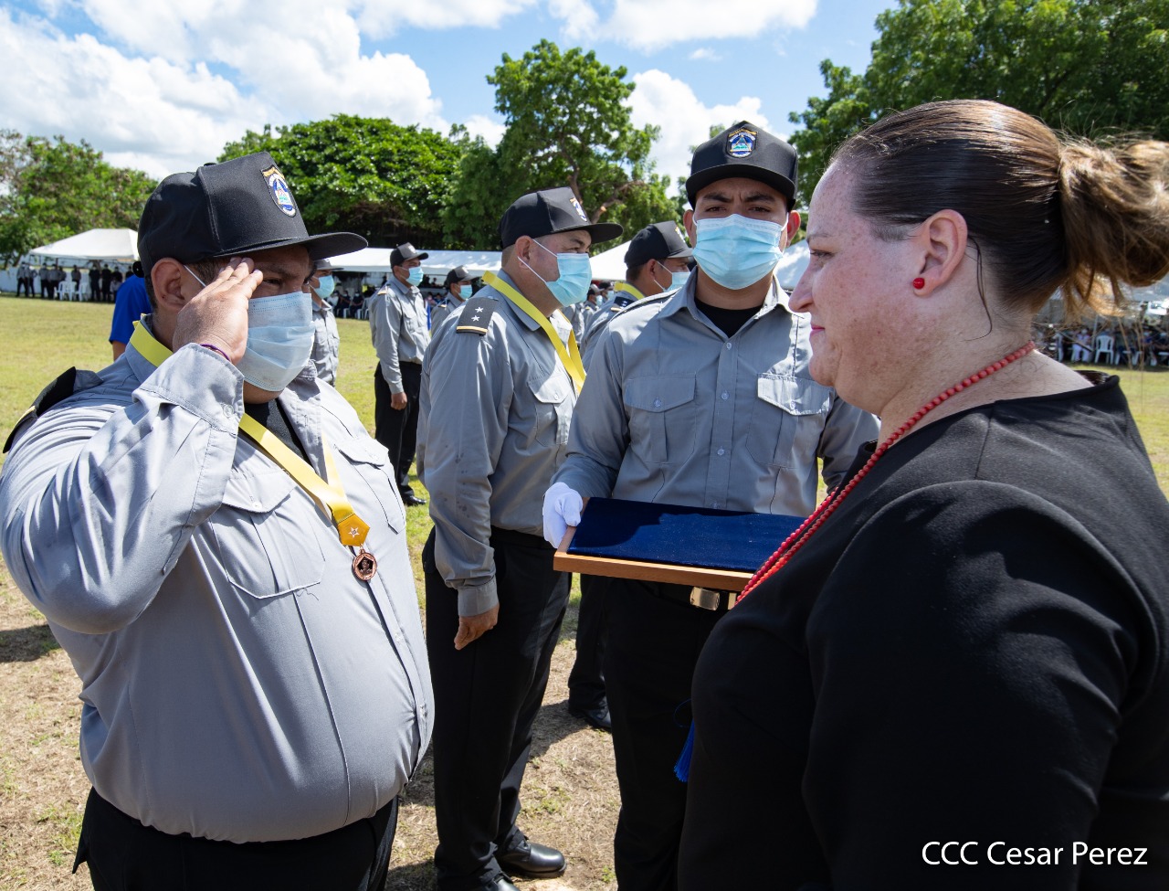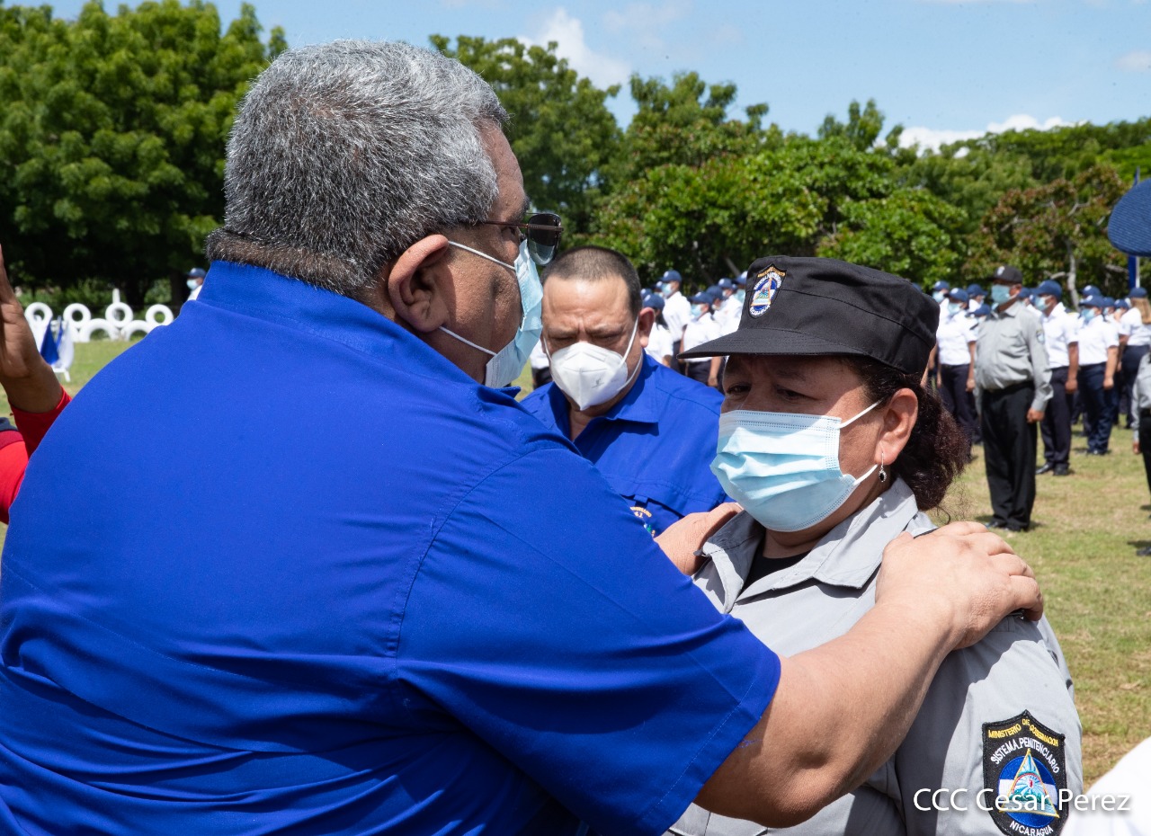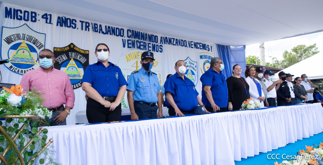 170 compañeros y compañeras del Sistema Penitenciario Nacional, la Dirección General de Migración y Extranjería, Bomberos Unificados y áreas centrales, recibieron condecoración y ascensos en grados en el marco de la celebración del 41 aniversario del Ministerio de Gobernación, acto que se llevó a cabo este 10 de octubre, en las instalaciones del penal de Tipitapa, en Managua.