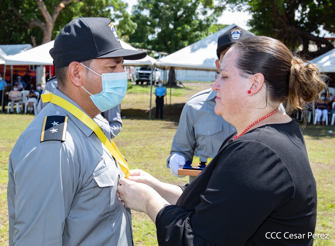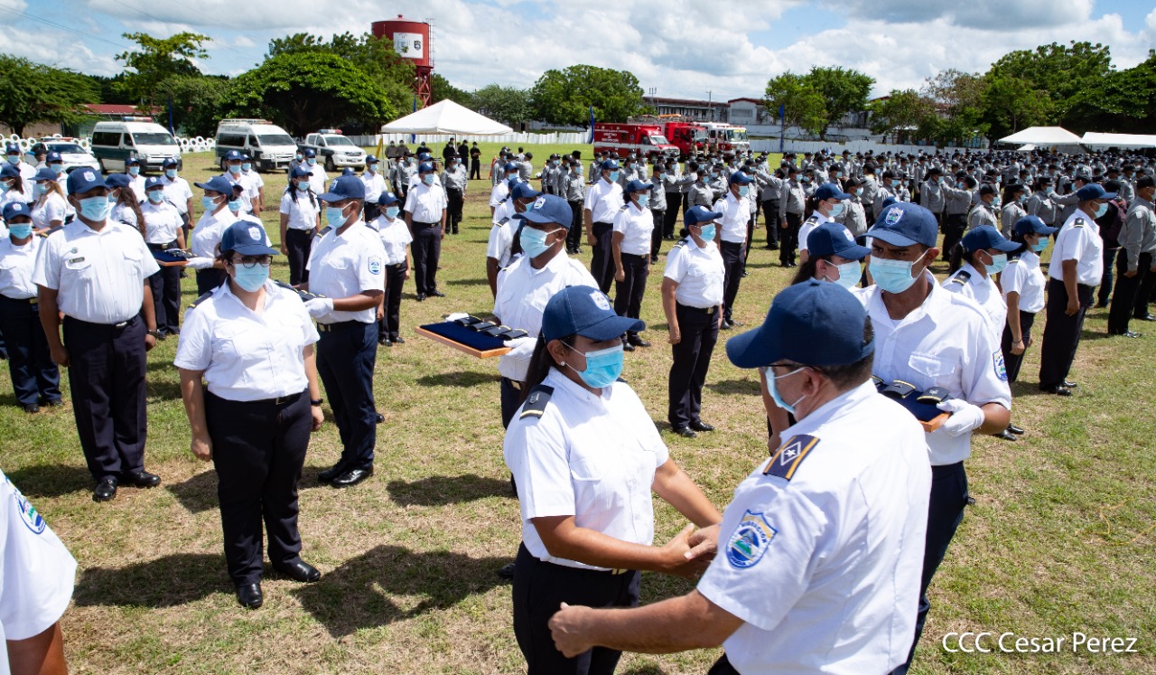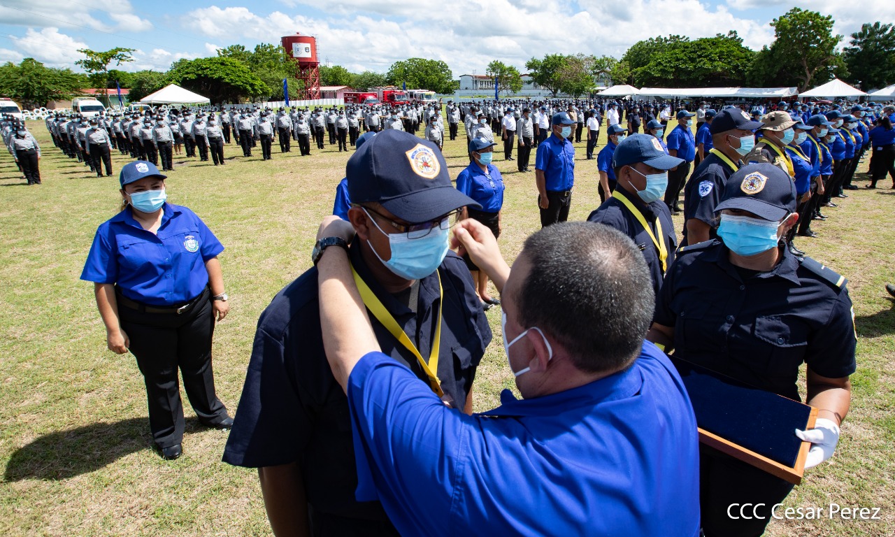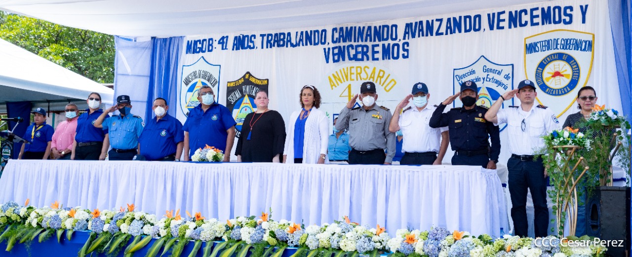 170 compañeros y compañeras del Sistema Penitenciario Nacional, la Dirección General de Migración y Extranjería, Bomberos Unificados y áreas centrales, recibieron condecoración y ascensos en grados en el marco de la celebración del 41 aniversario del Ministerio de Gobernación, acto que se llevó a cabo este 10 de octubre, en las instalaciones del penal de Tipitapa, en Managua.