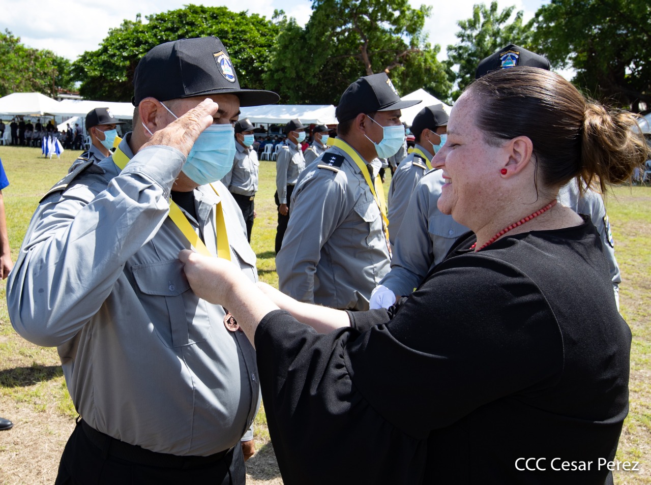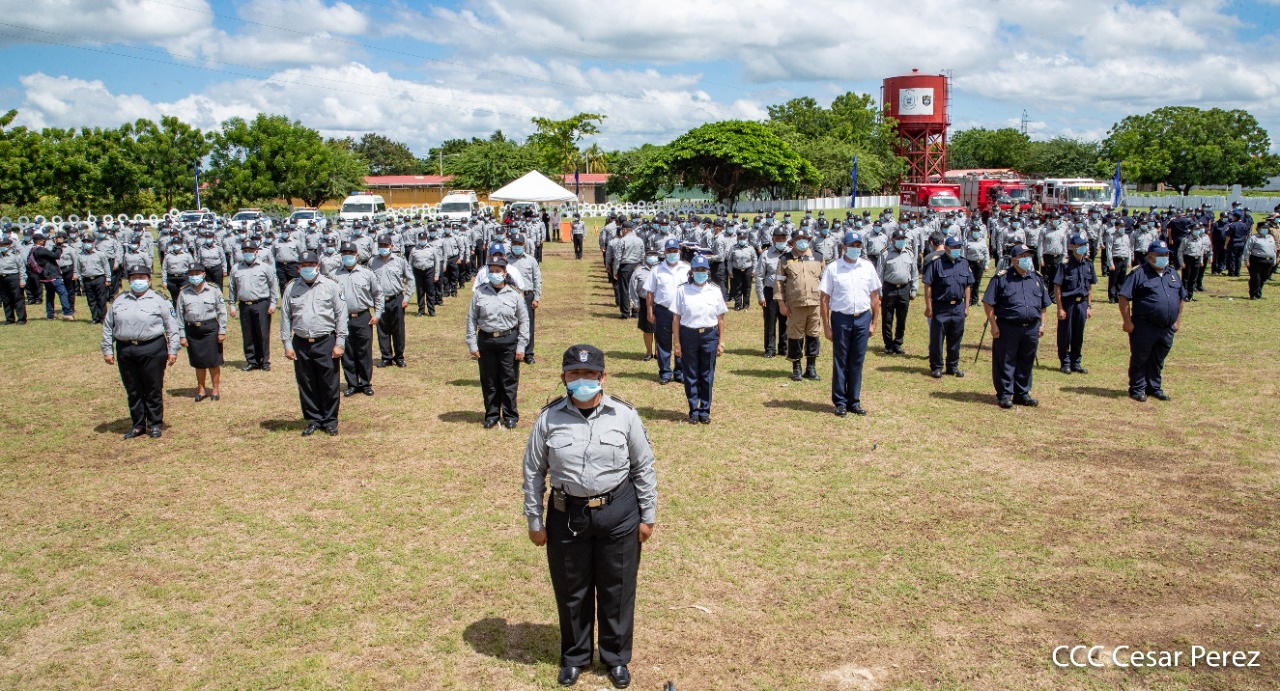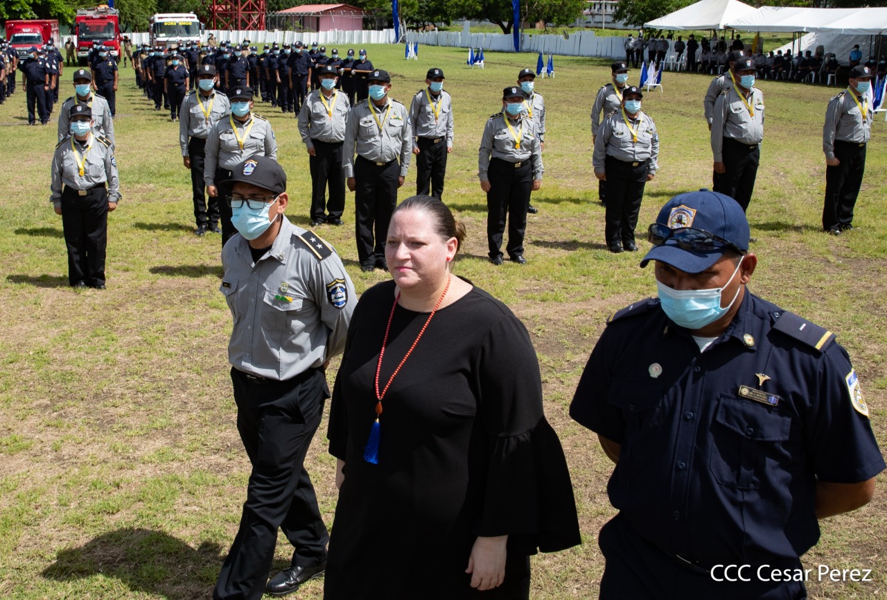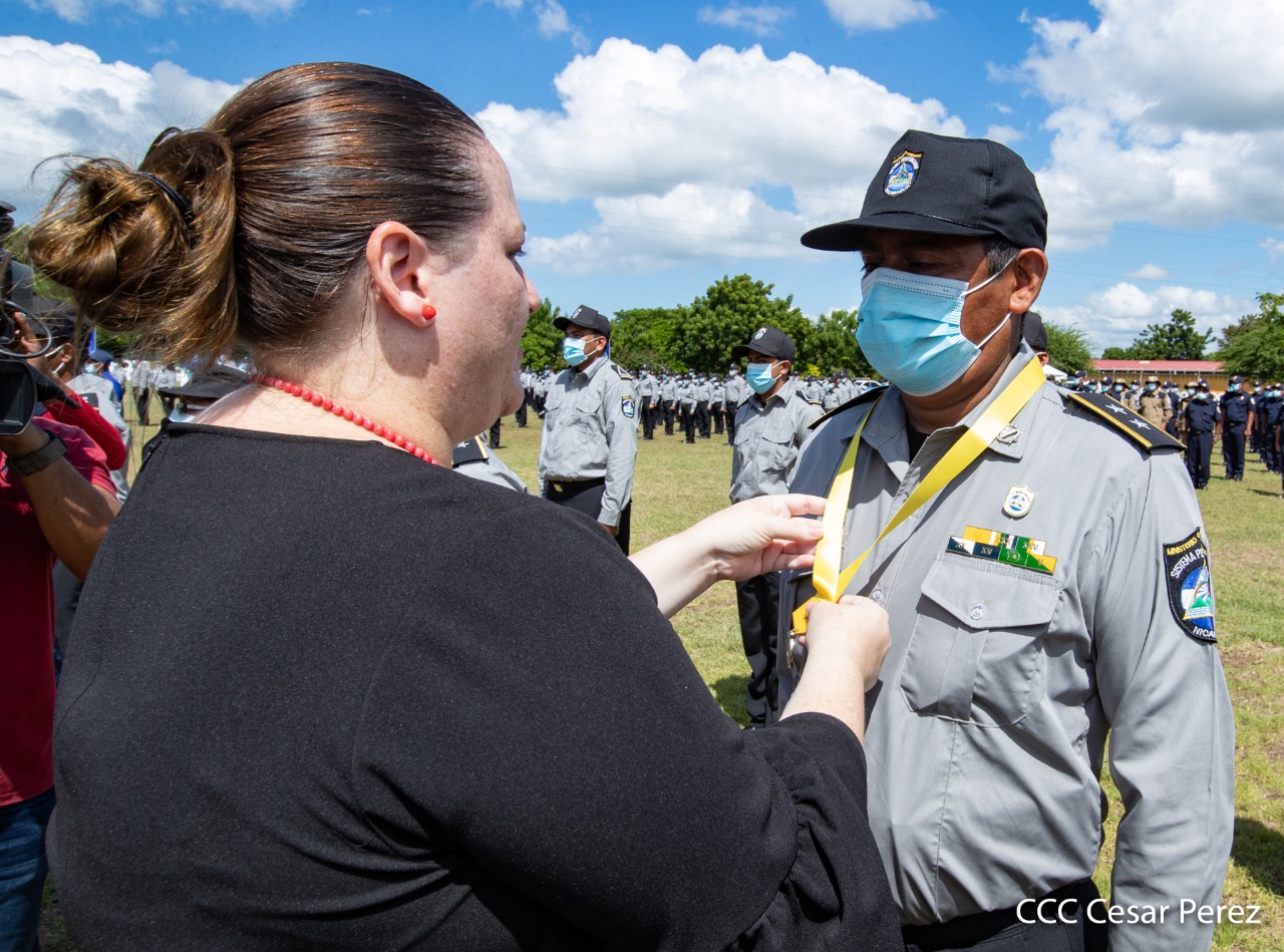 170 compañeros y compañeras del Sistema Penitenciario Nacional, la Dirección General de Migración y Extranjería, Bomberos Unificados y áreas centrales, recibieron condecoración y ascensos en grados en el marco de la celebración del 41 aniversario del Ministerio de Gobernación, acto que se llevó a cabo este 10 de octubre, en las instalaciones del penal de Tipitapa, en Managua.