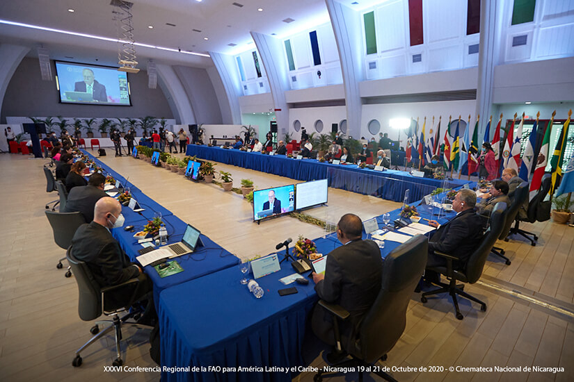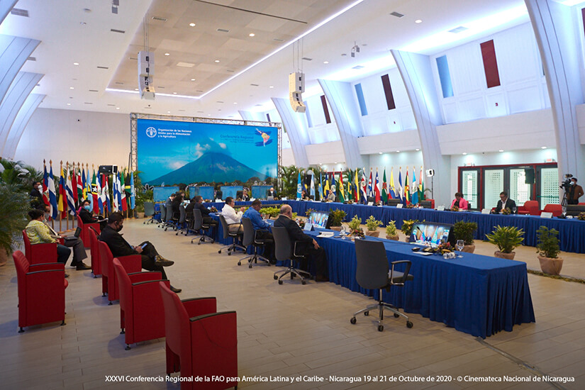 El trigésimo sexto periodo de sesiones de la Conferencia Regional de la Organización de las Naciones Unidas para la Alimentación y la Agricultura (FAO) se desarrolla en Managua, capital de Nicaragua, de manera virtual y presencial, con la participación de ministros de Agricultura y altos funcionarios de los Estados Miembros donde la organización está presente y activa.
