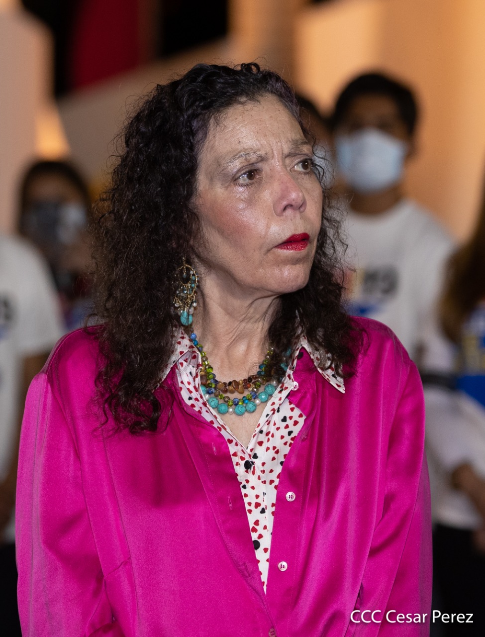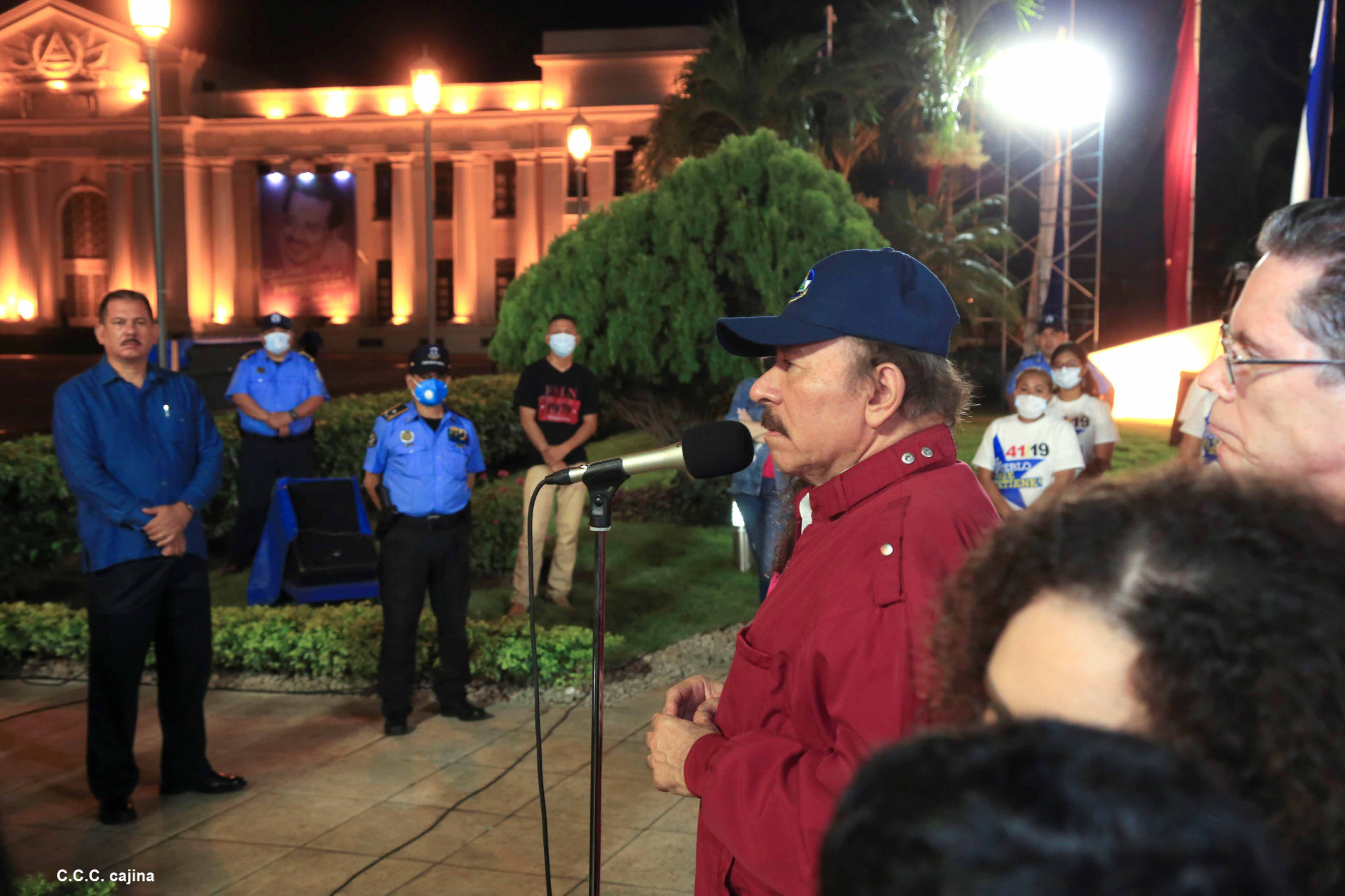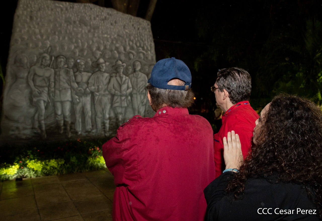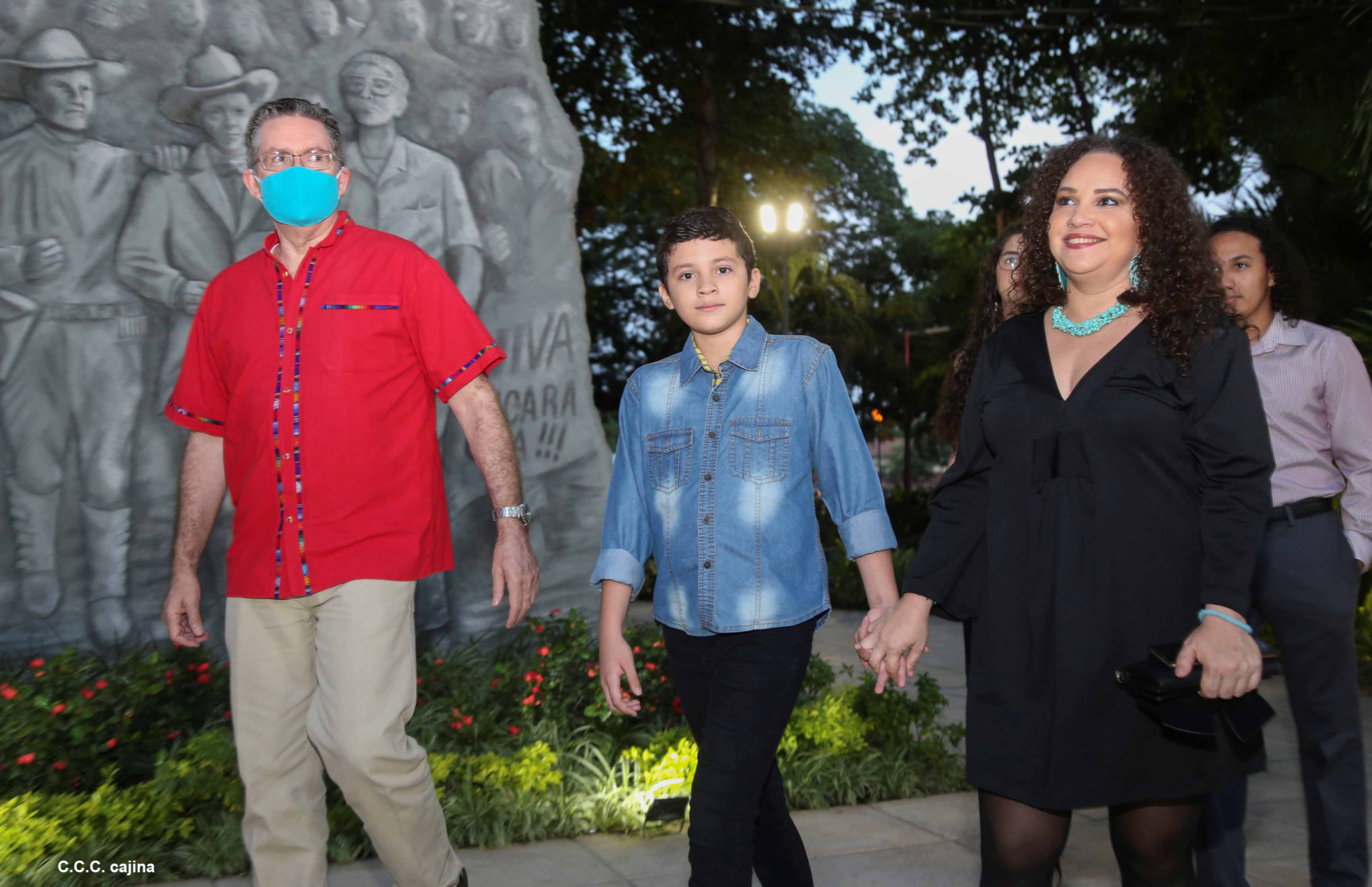 El Presidente de Nicaragua, Comandante Daniel Ortega y la compañera Rosario Murillo presiden el acto de conmemoración del 44 aniversario del paso a la inmortalidad del Comandante Carlos Fonseca Amador, desde el mausoleo en la plaza de la Revolución en Managua.