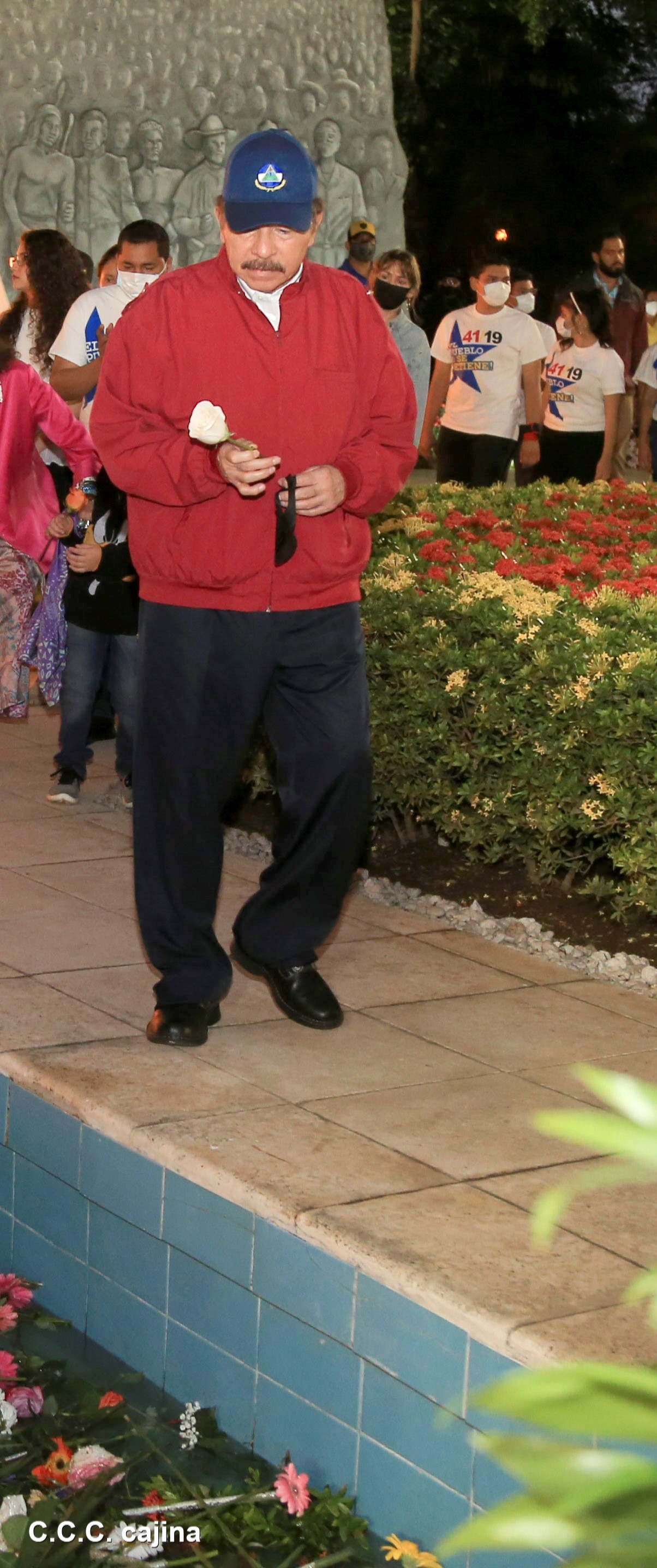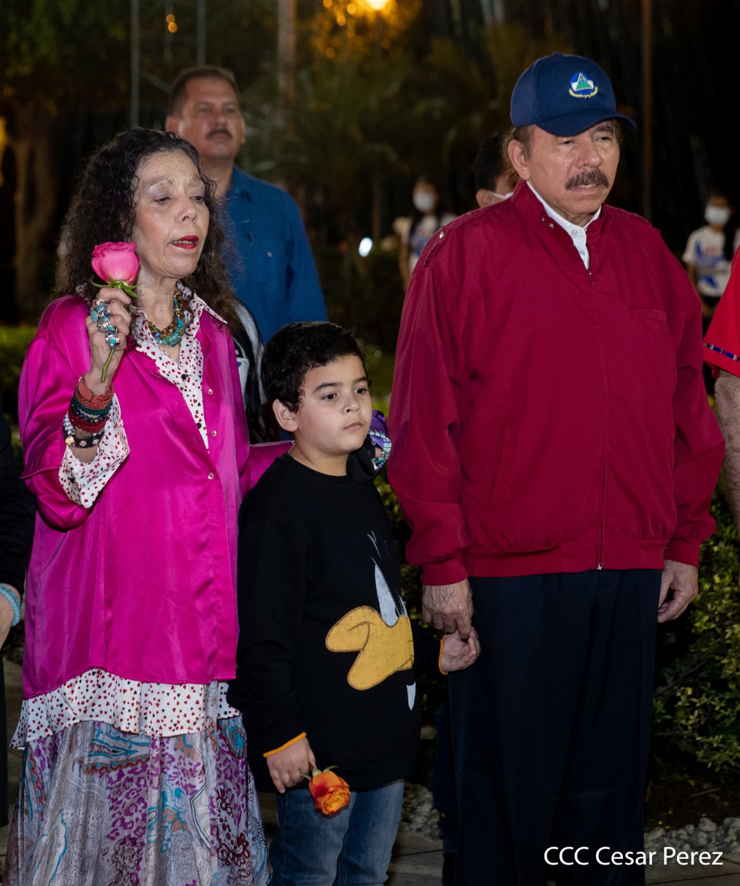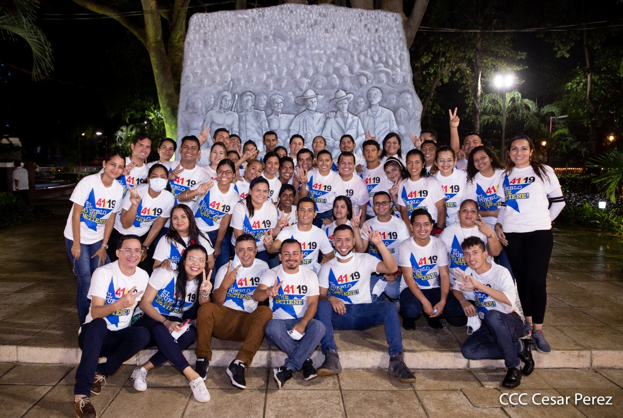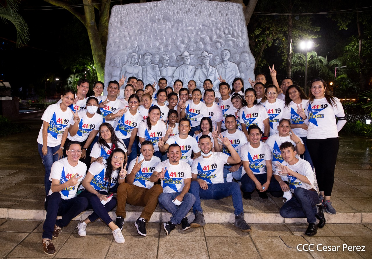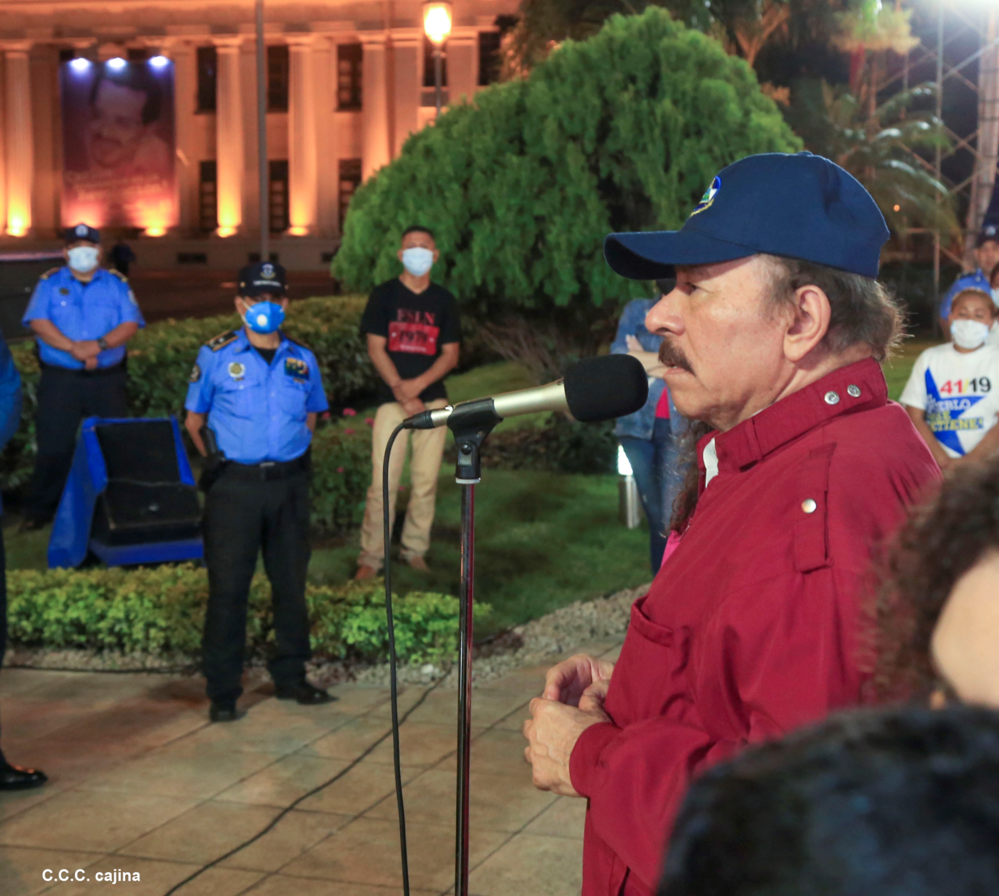 El Presidente de Nicaragua, Comandante Daniel Ortega y la compañera Rosario Murillo presiden el acto de conmemoración del 44 aniversario del paso a la inmortalidad del Comandante Carlos Fonseca Amador, desde el mausoleo en la plaza de la Revolución en Managua.