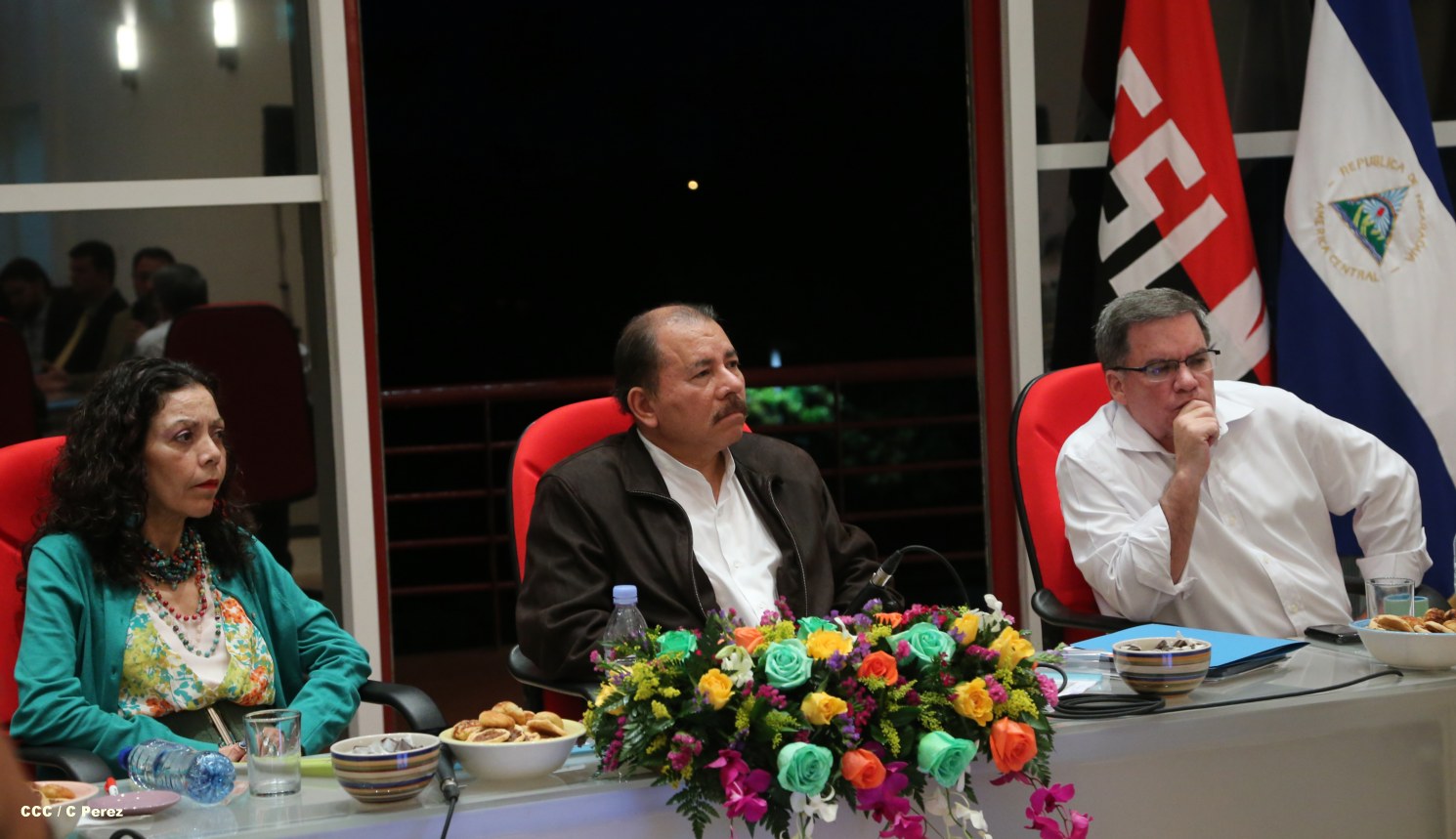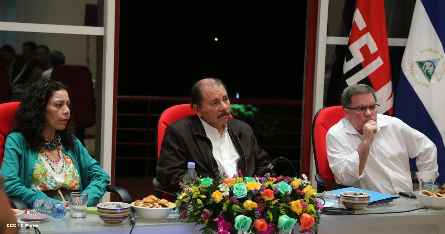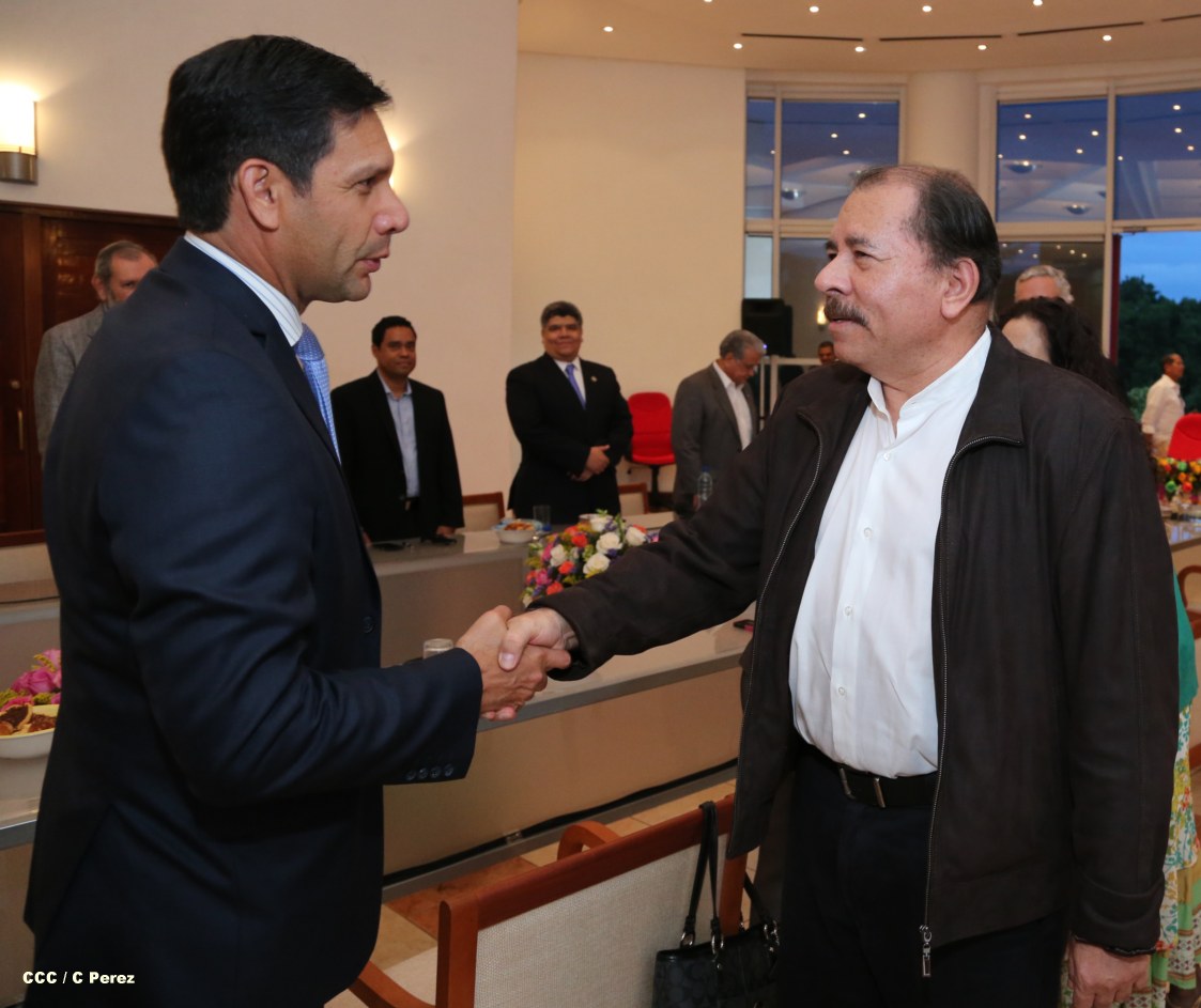 El Presidente de la República, Comandante Daniel Ortega Saavedra, sostuvo la tarde de este viernes un encuentro con miembros de la junta directiva de la Cámara de Comercio Americana Nicaragüense (AMCHAM).