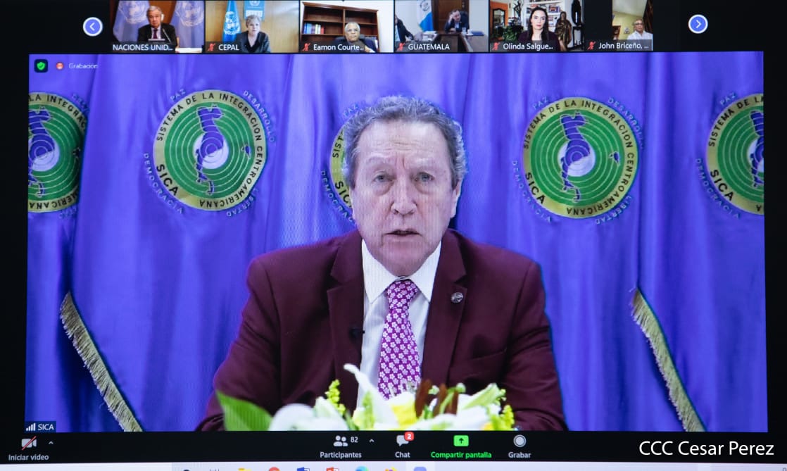 En la reunión además del Presidente de Nicaragua, Comandante Daniel Ortega y la Vicepresidenta Compañera Rosario Murillo, también participaron el Presidente de Costa Rica, Carlos Alvarado; el Presidente de Guatemala, Alejandro Giammattei; el Presidente de Honduras, Juan Orlando Hernández; el Primer Ministro de Belice, John Briceño; el Presidente de República Dominicana, Luis Abinader; el Vicepresidente de El Salvador, Félix Ulloa; el Secretario General del SICA, Vinicio Cerezo y el Secretario General de las Naciones Unidas, António Guterres.