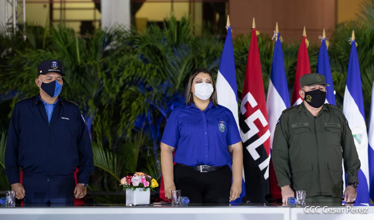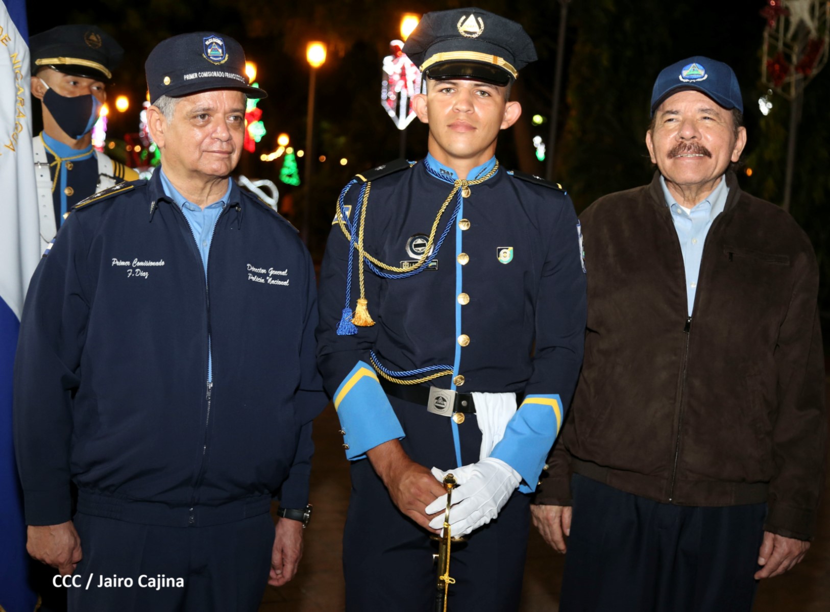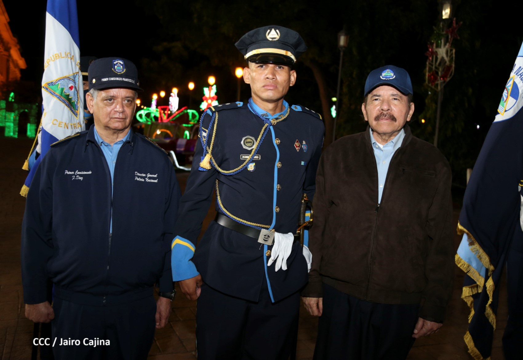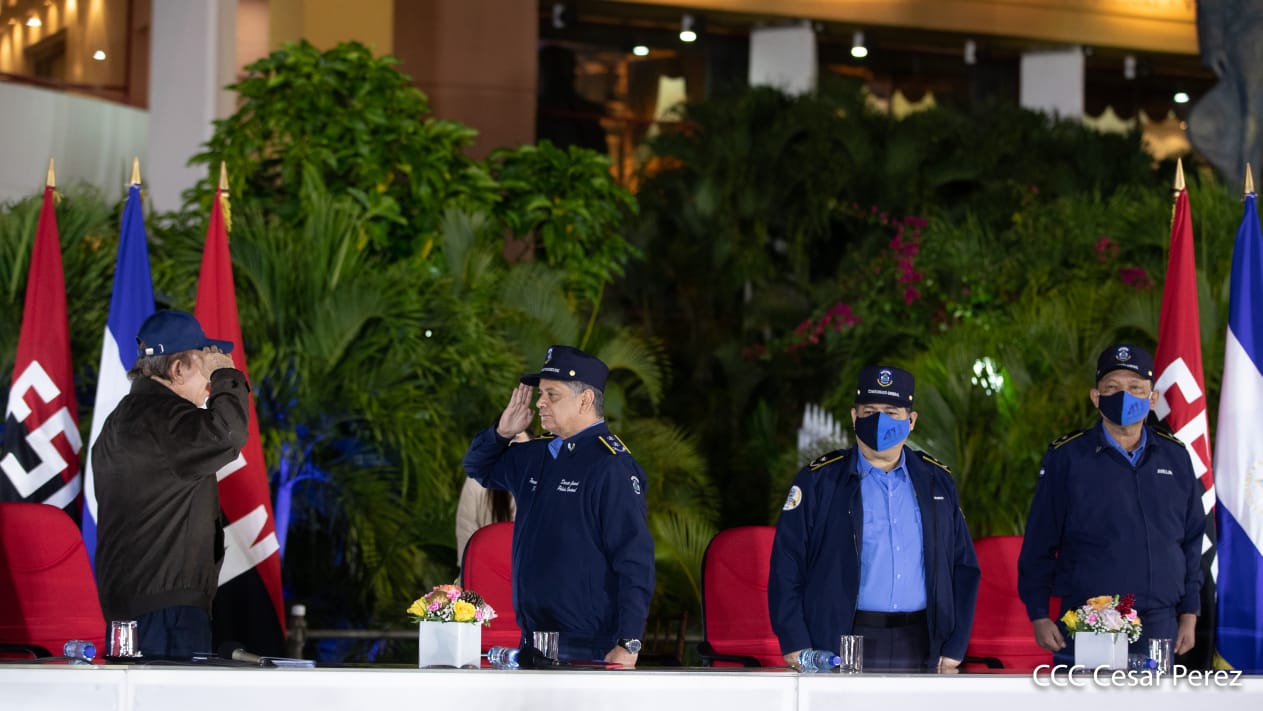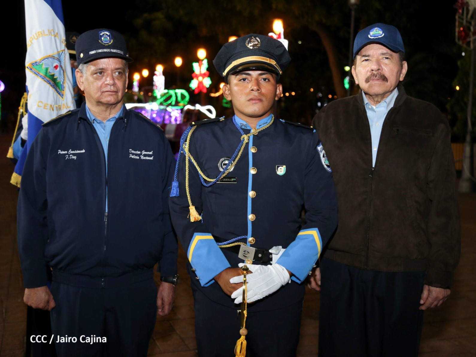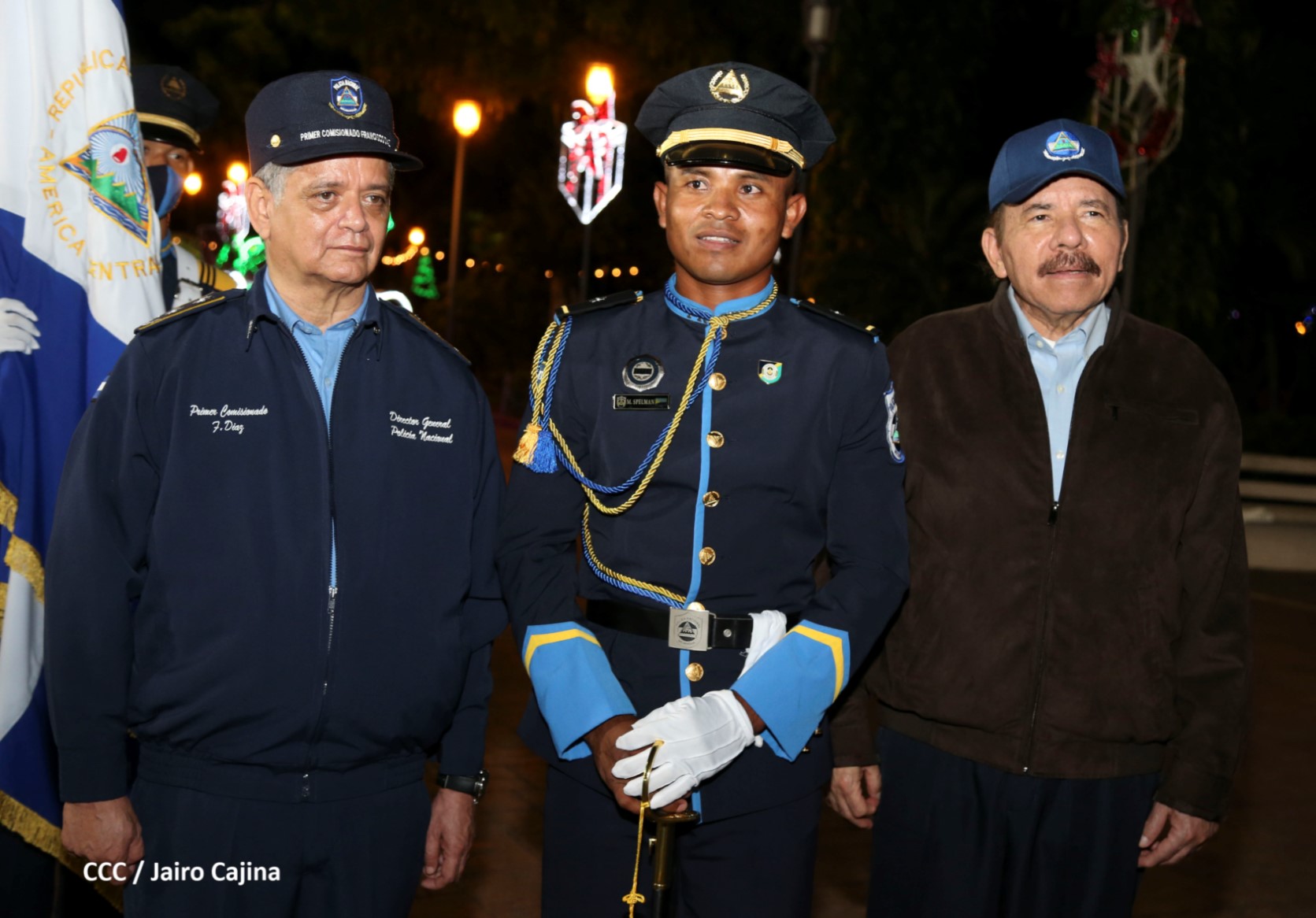 El Comandante Daniel Ortega, acompañado del Primer Comisionado Francisco Javier Díaz Madriz, entregaron títulos y reconocimientos a los tres pimeros expedientes