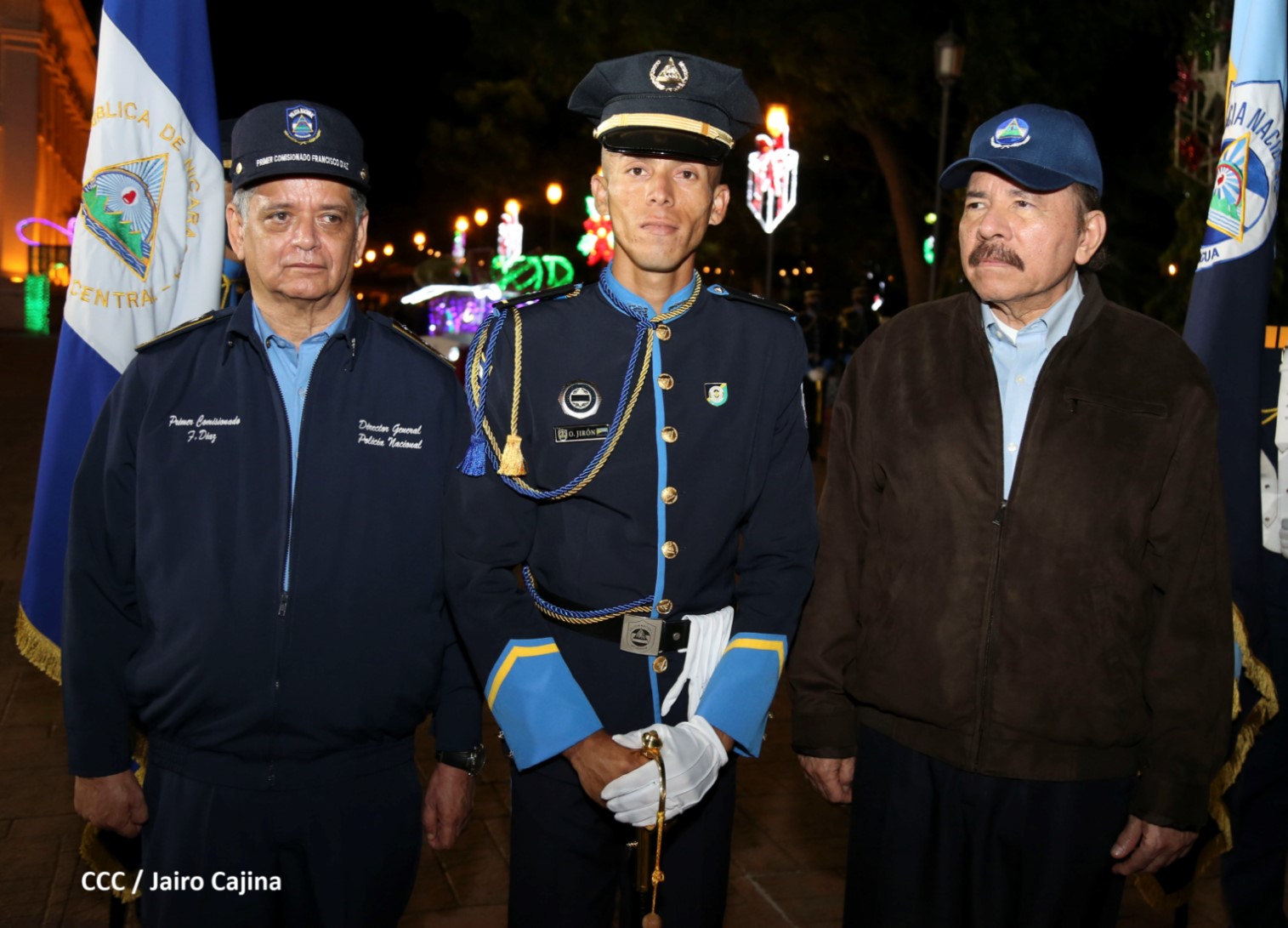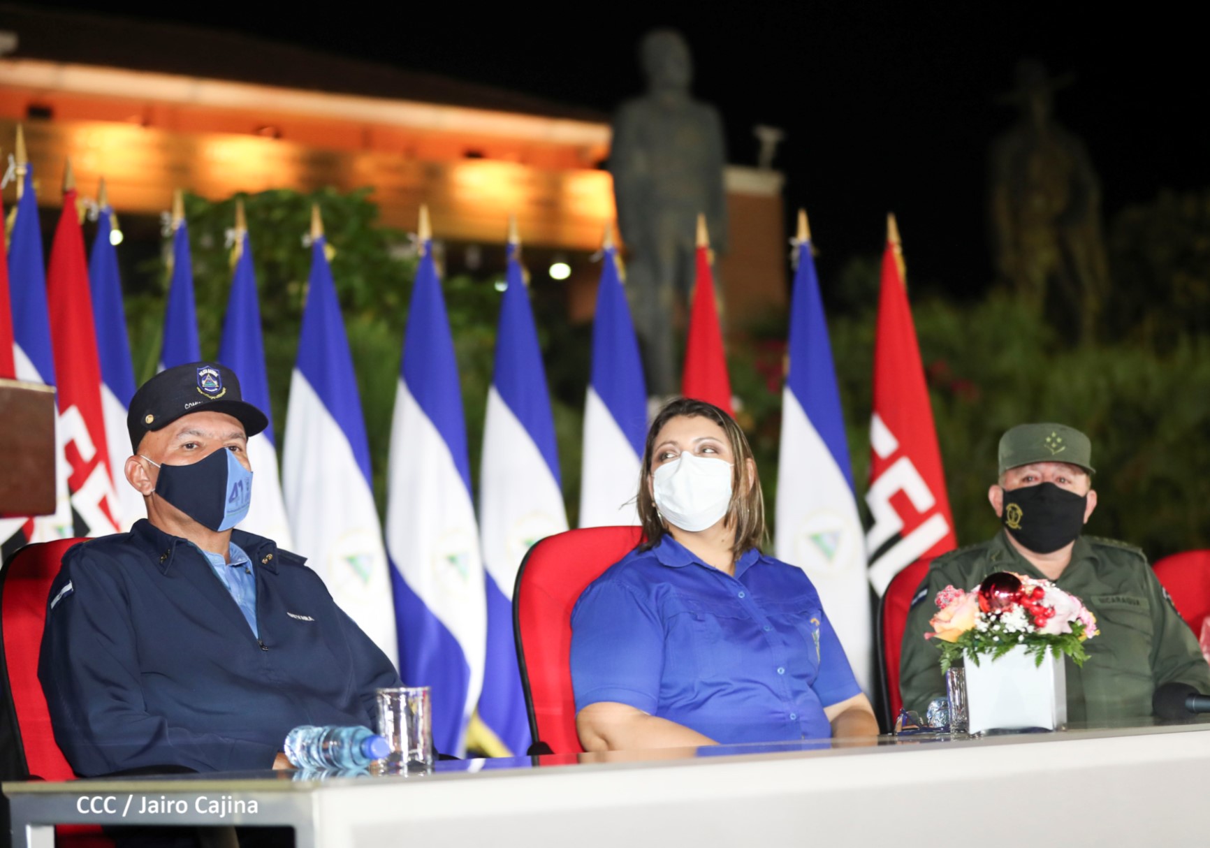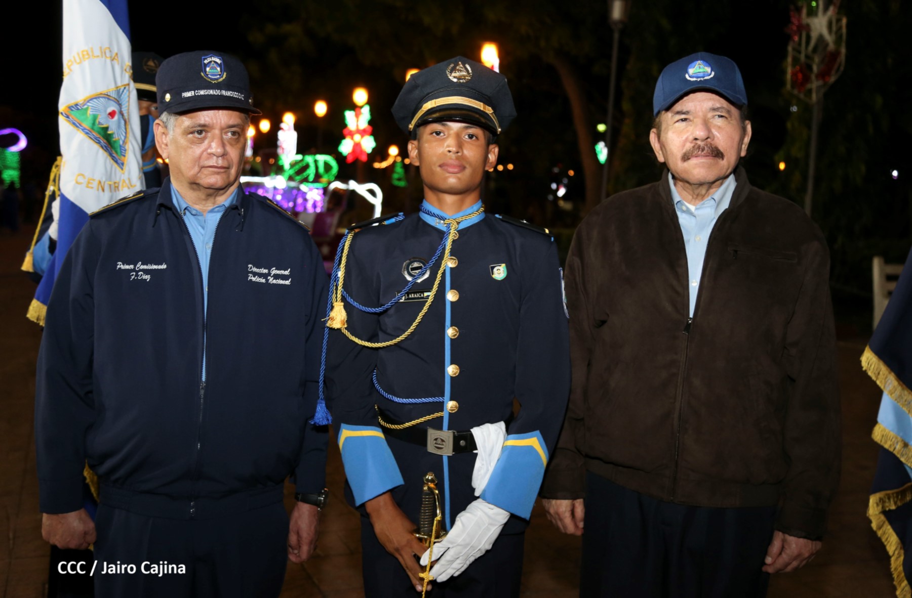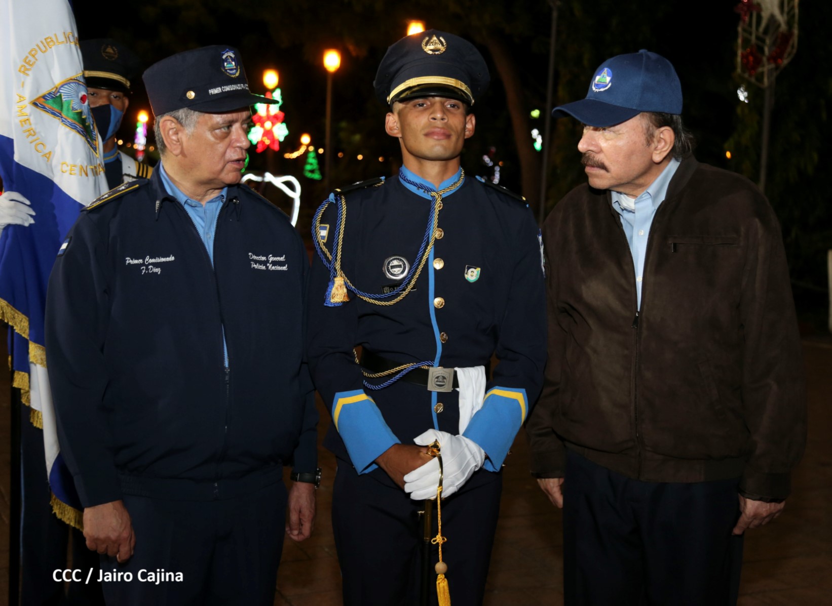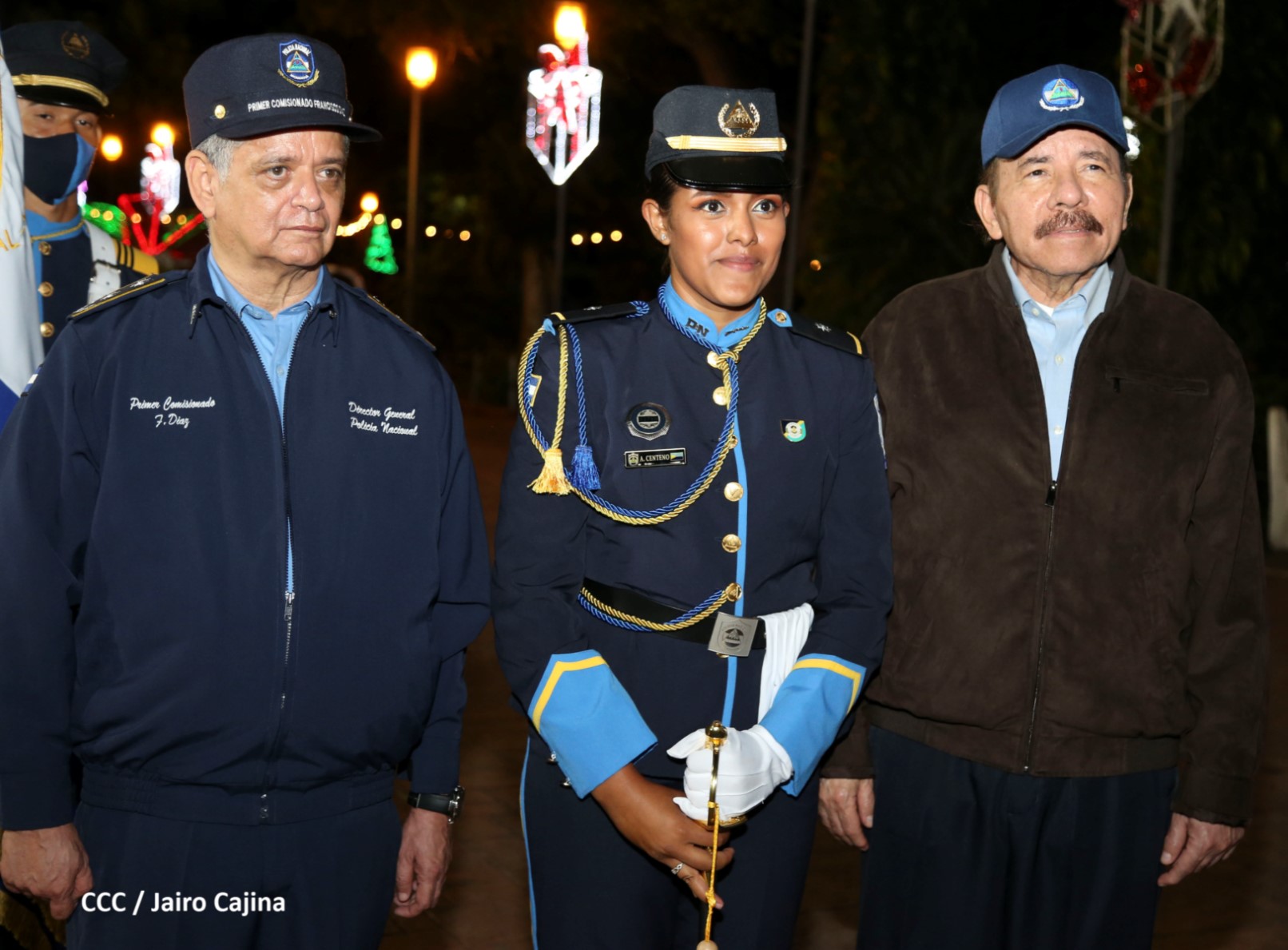 El Comandante Daniel Ortega, acompañado del Primer Comisionado Francisco Javier Díaz Madriz, entregaron títulos y reconocimientos a los tres pimeros expedientes