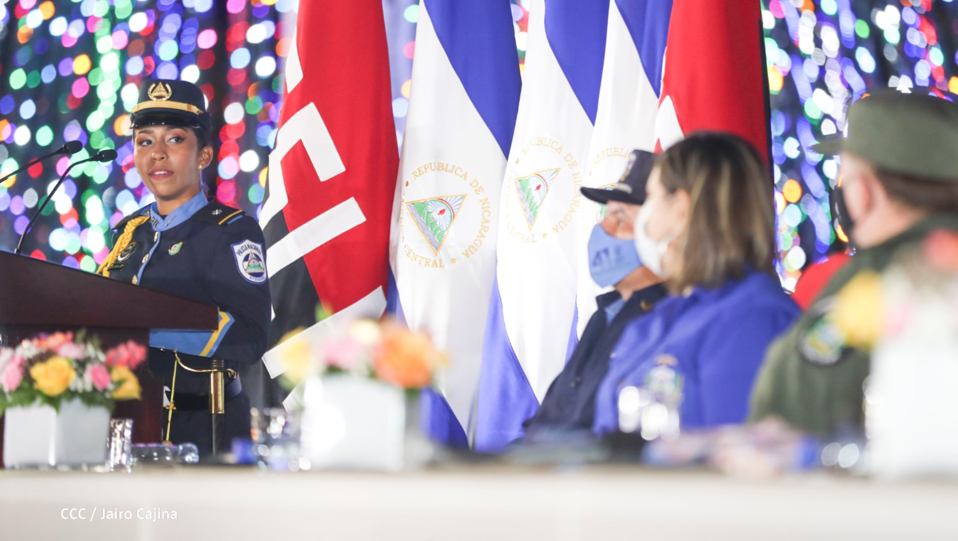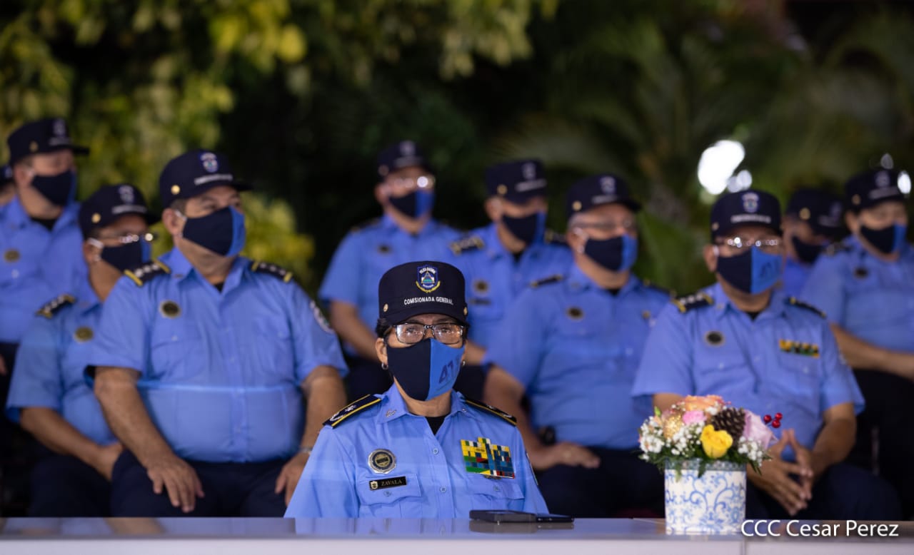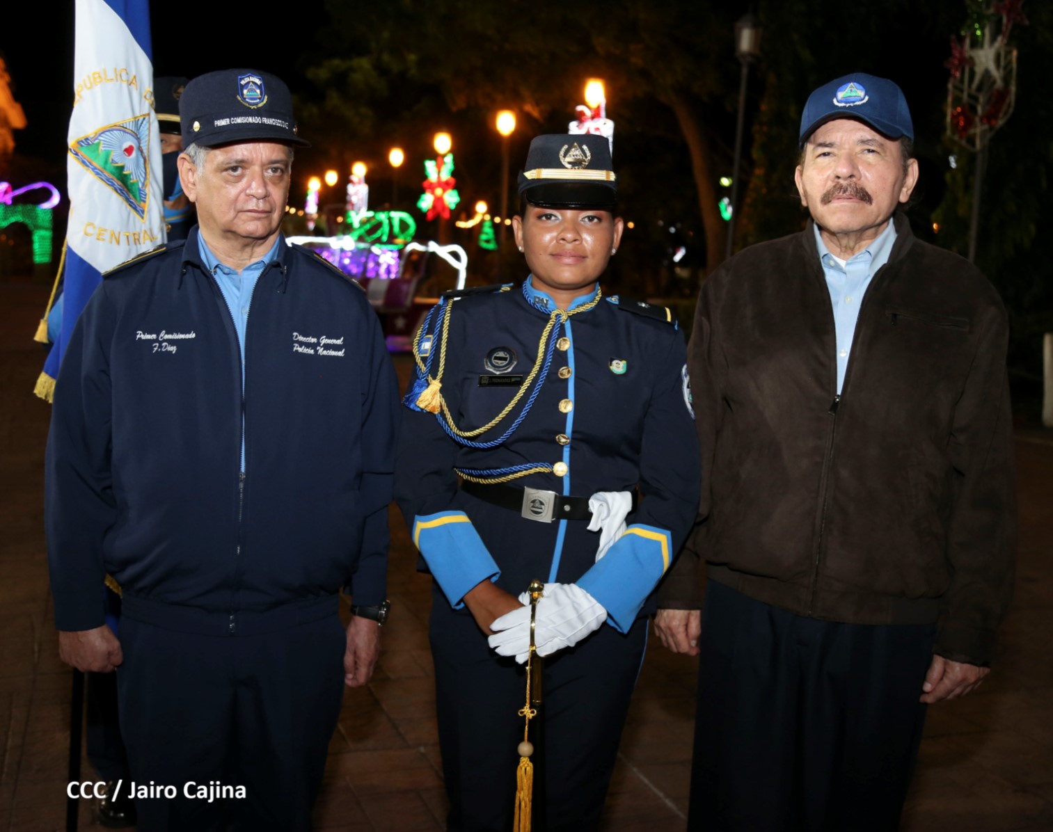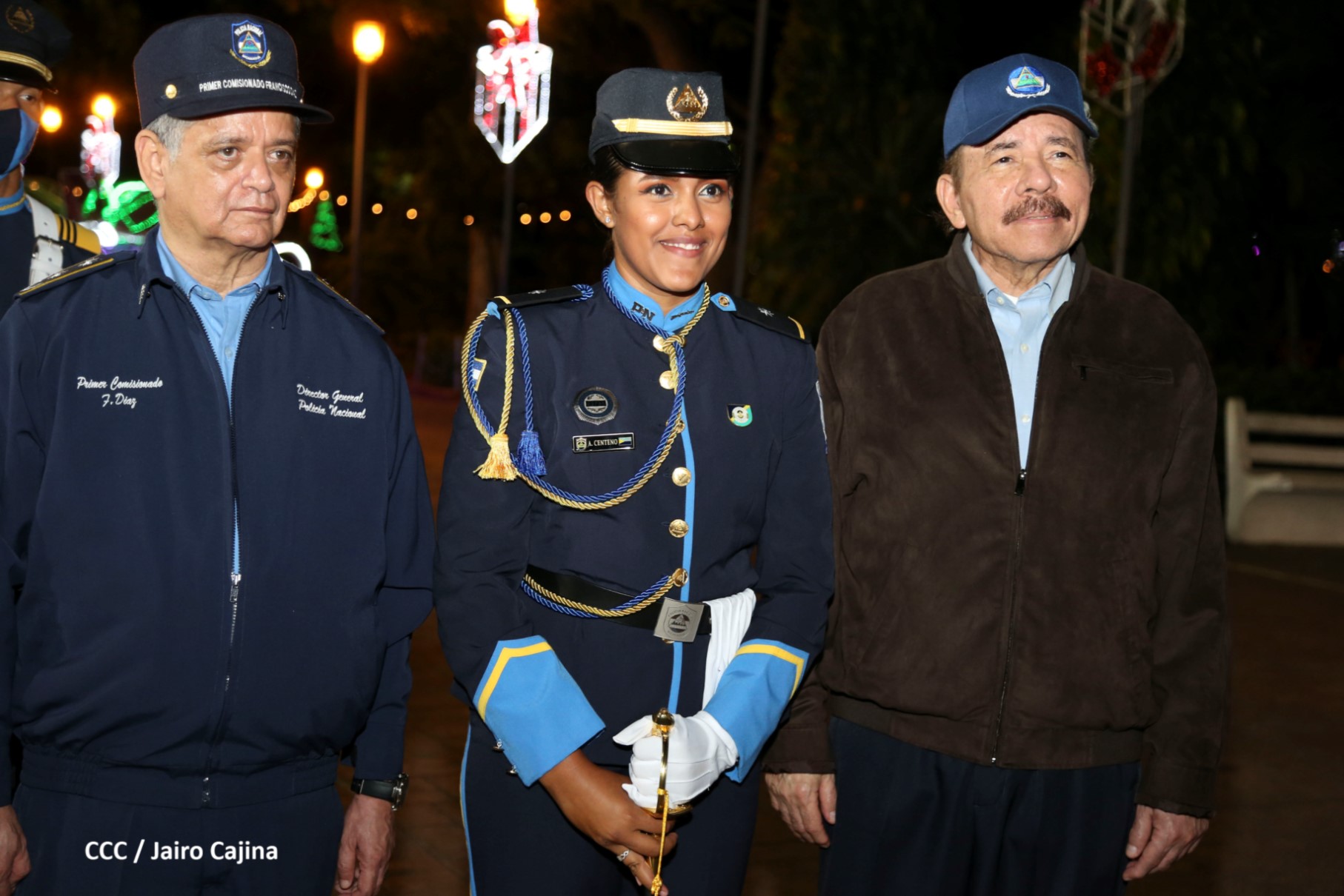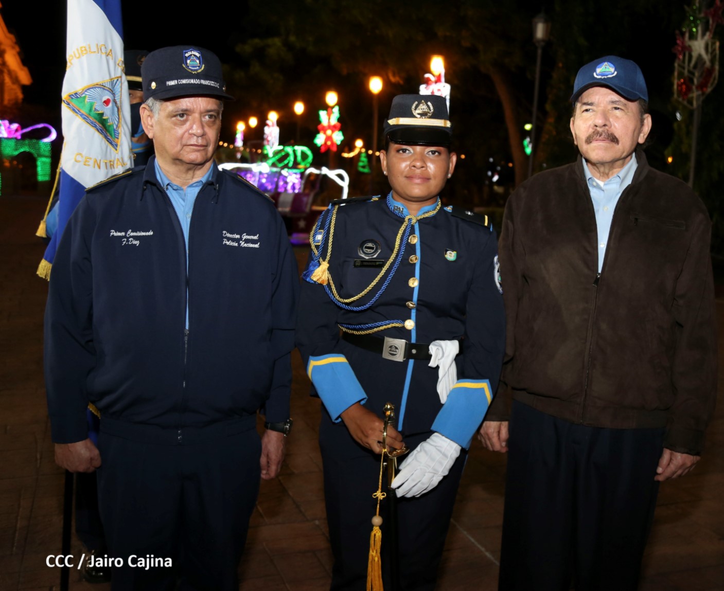 El Comandante Daniel Ortega, acompañado del Primer Comisionado Francisco Javier Díaz Madriz, entregaron títulos y reconocimientos a los tres pimeros expedientes