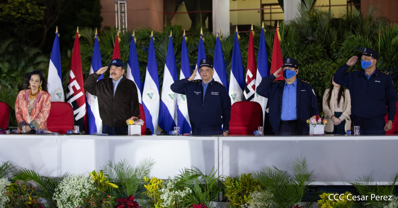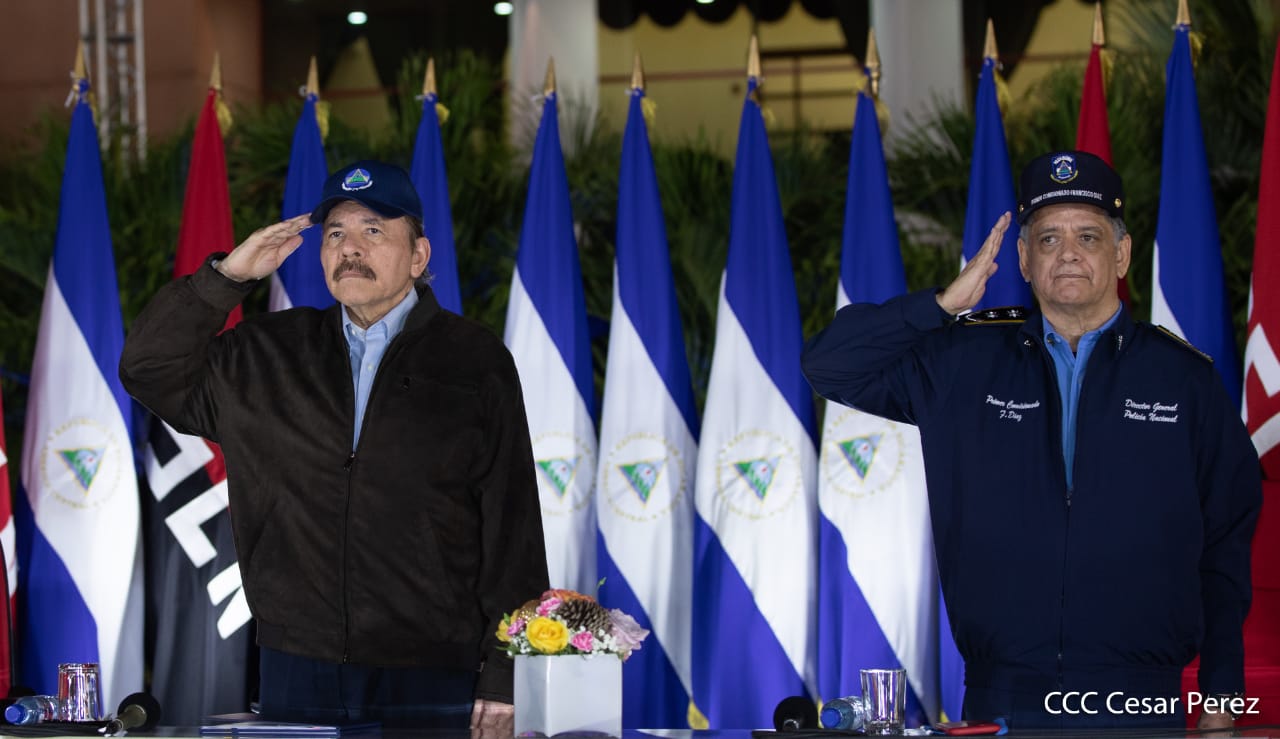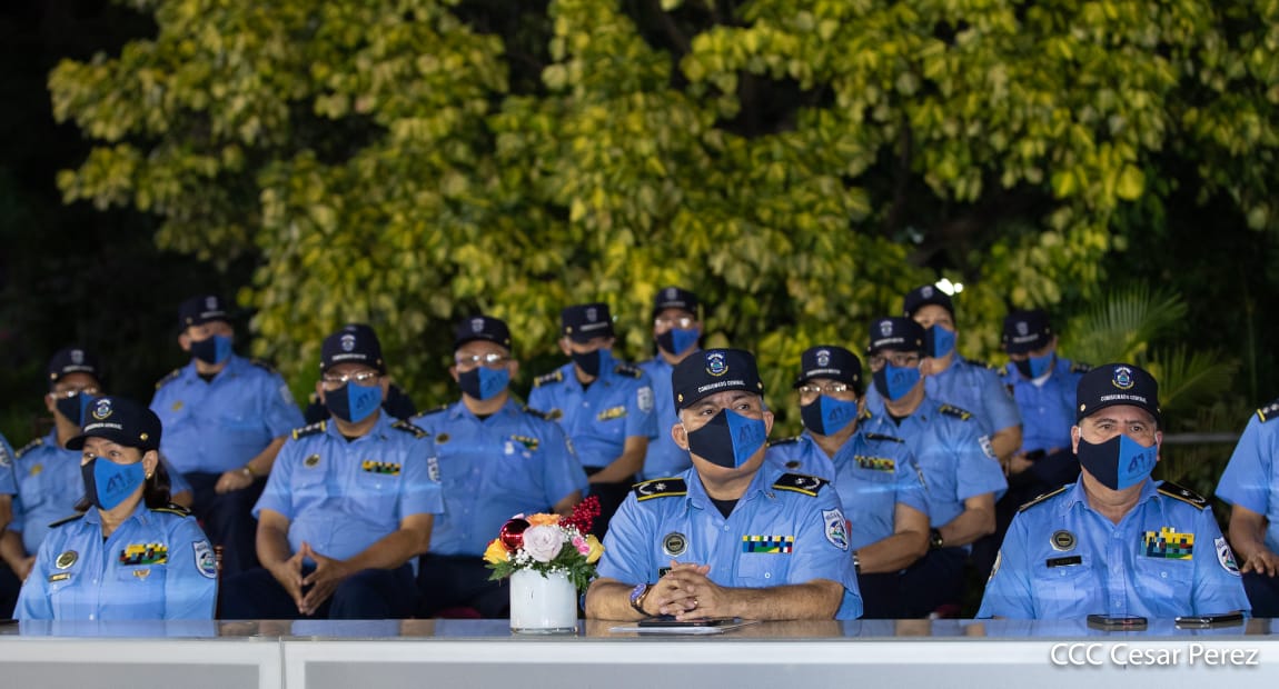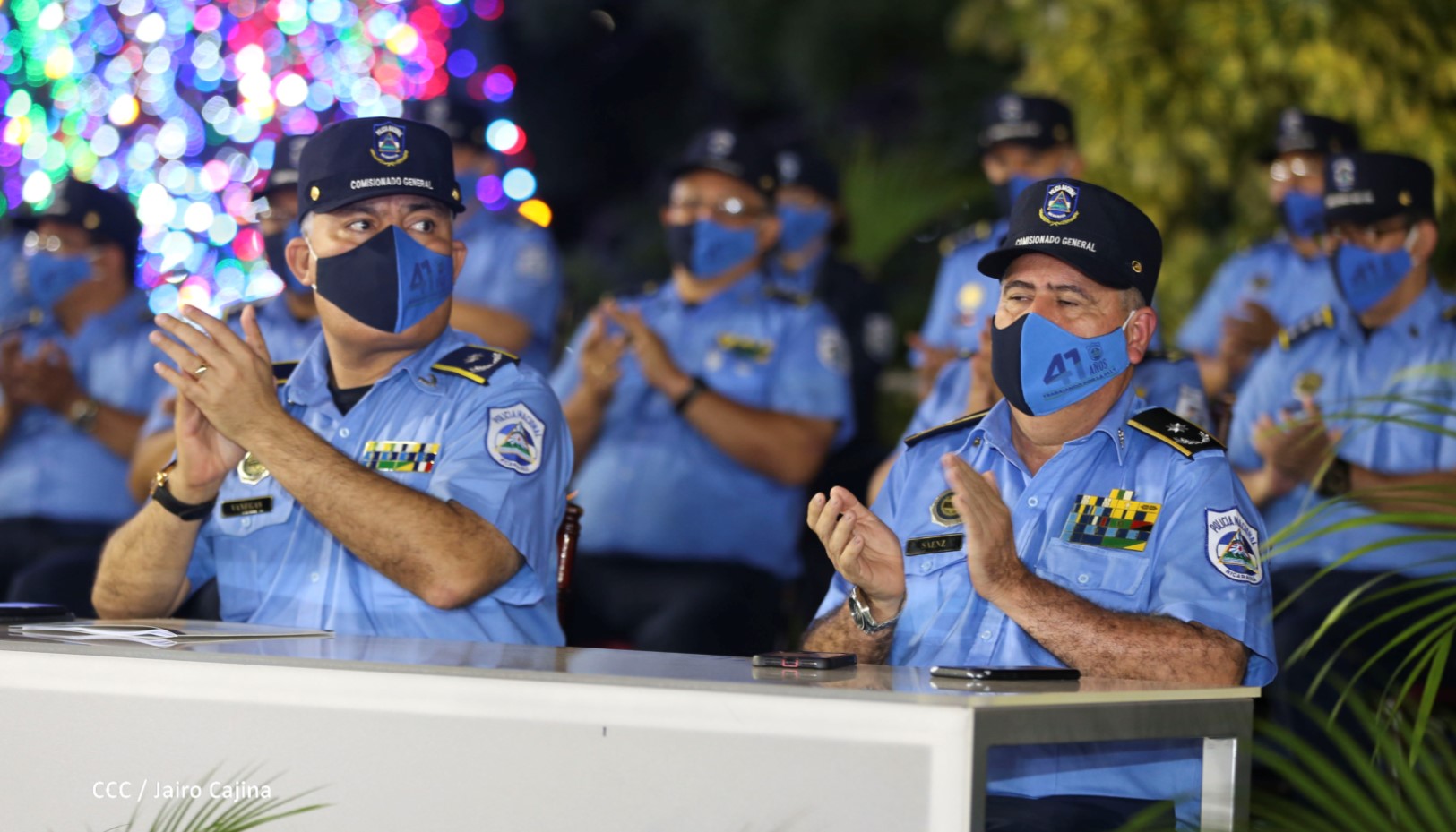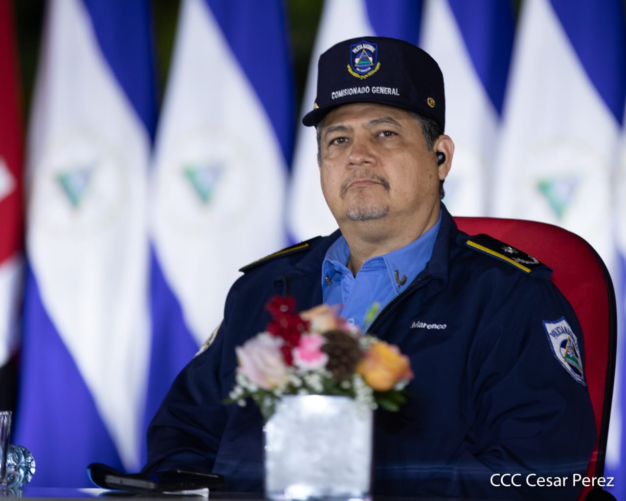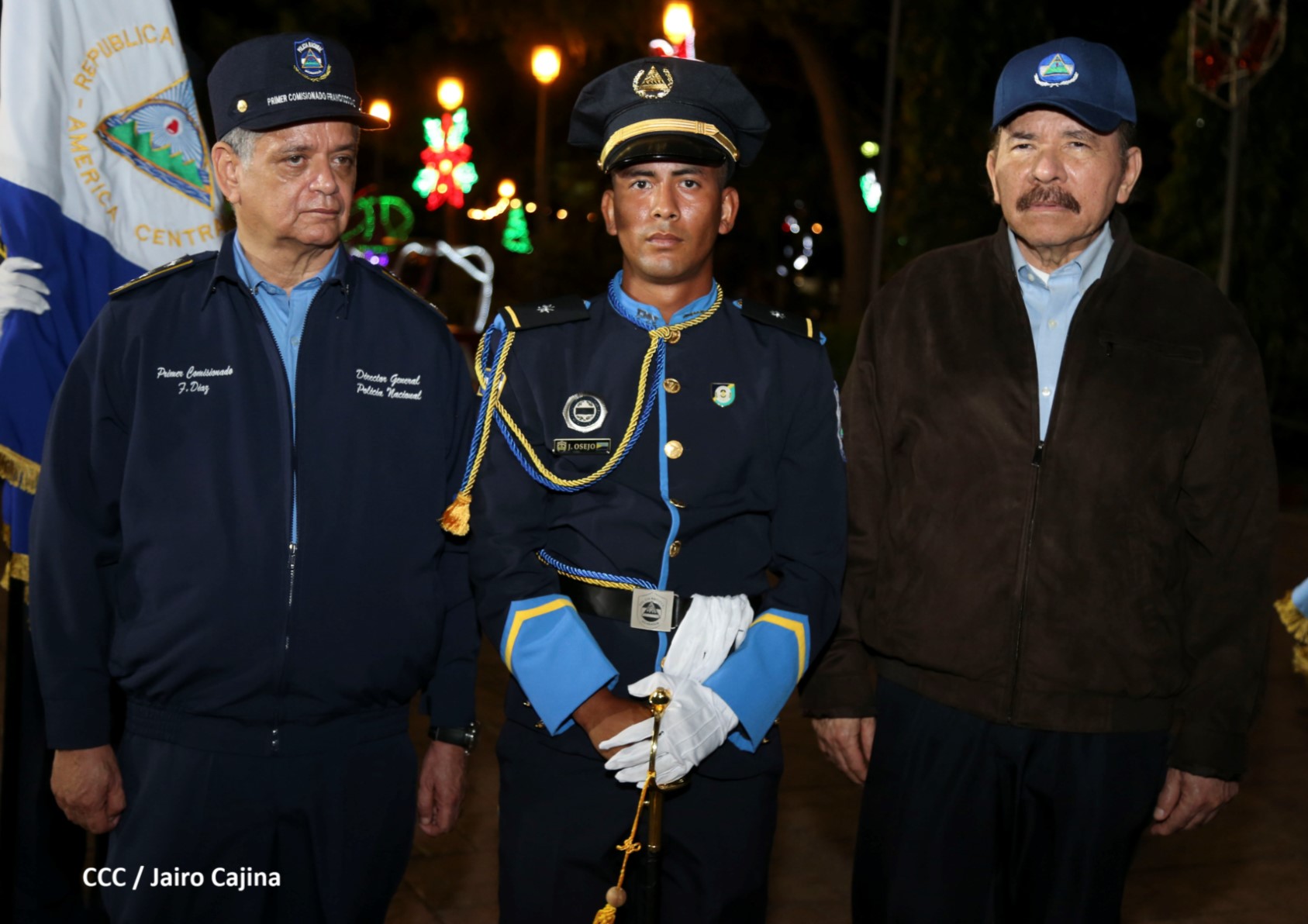 El Comandante Daniel Ortega, acompañado del Primer Comisionado Francisco Javier Díaz Madriz, entregaron títulos y reconocimientos a los tres pimeros expedientes