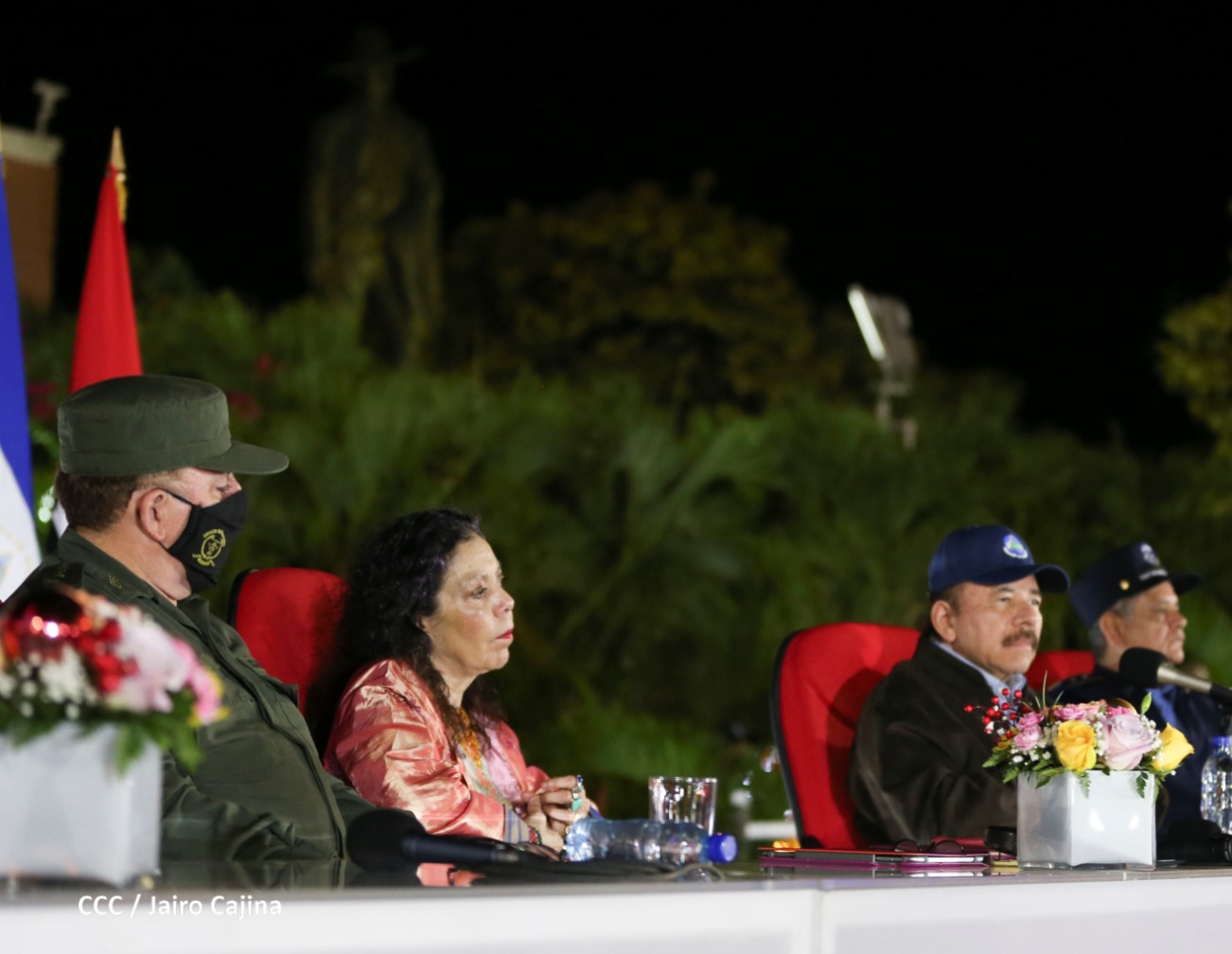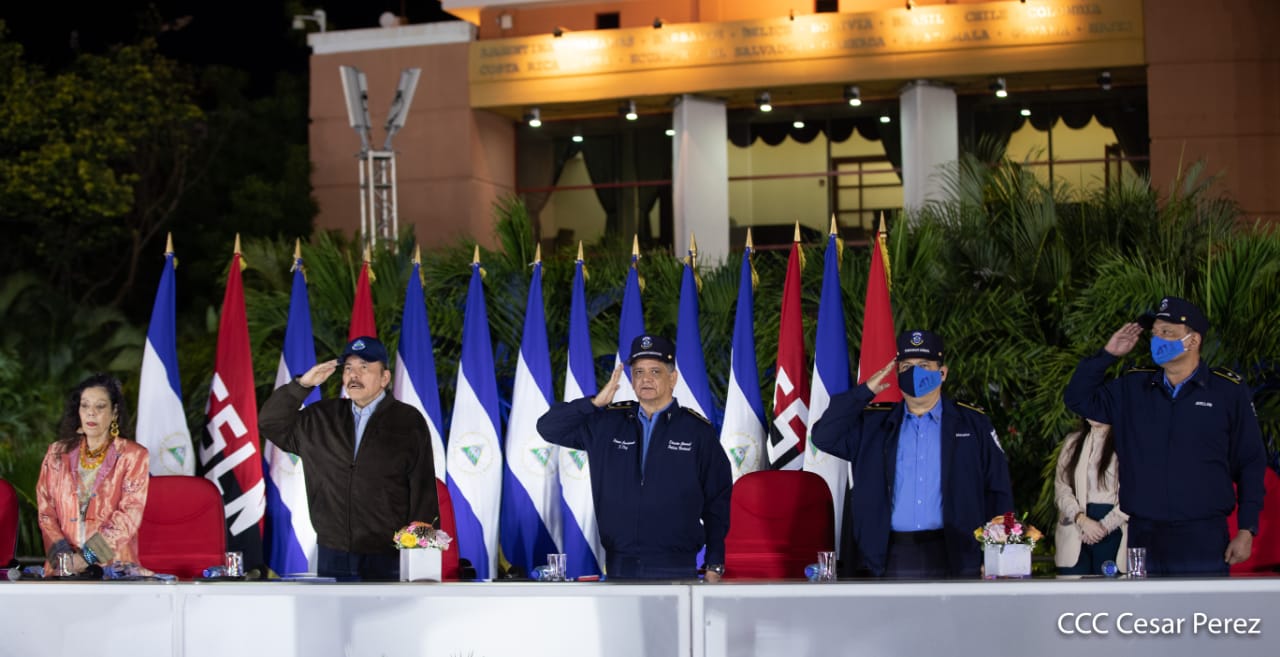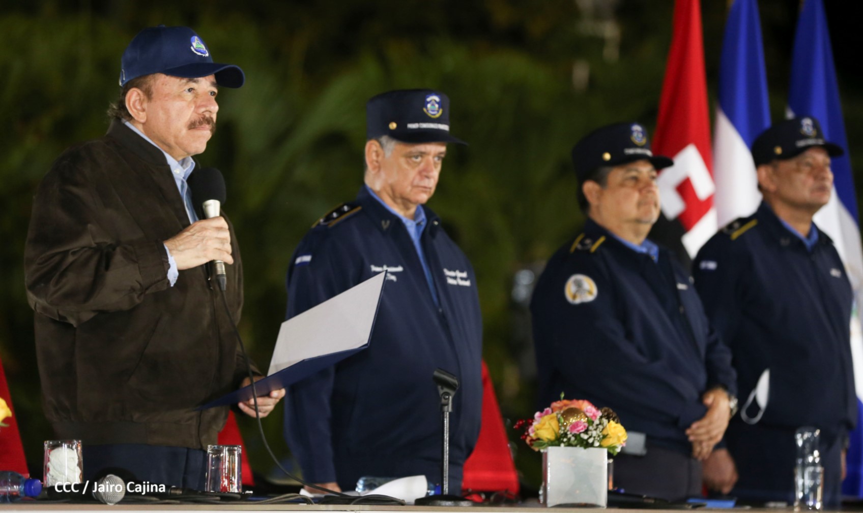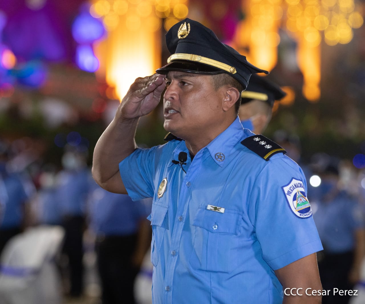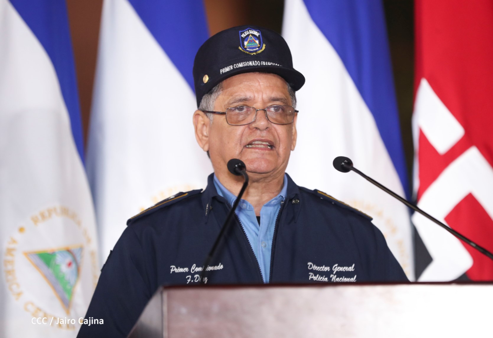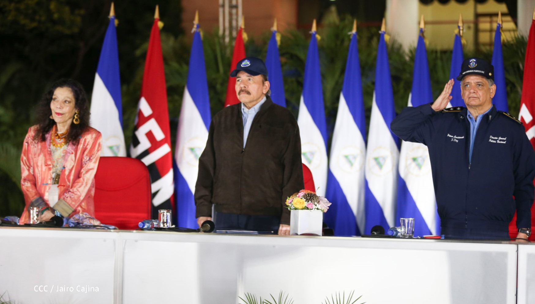El Comandante Daniel Ortega, acompañado del Primer Comisionado Francisco Javier Díaz Madriz, entregaron títulos y reconocimientos a los tres pimeros expedientes
