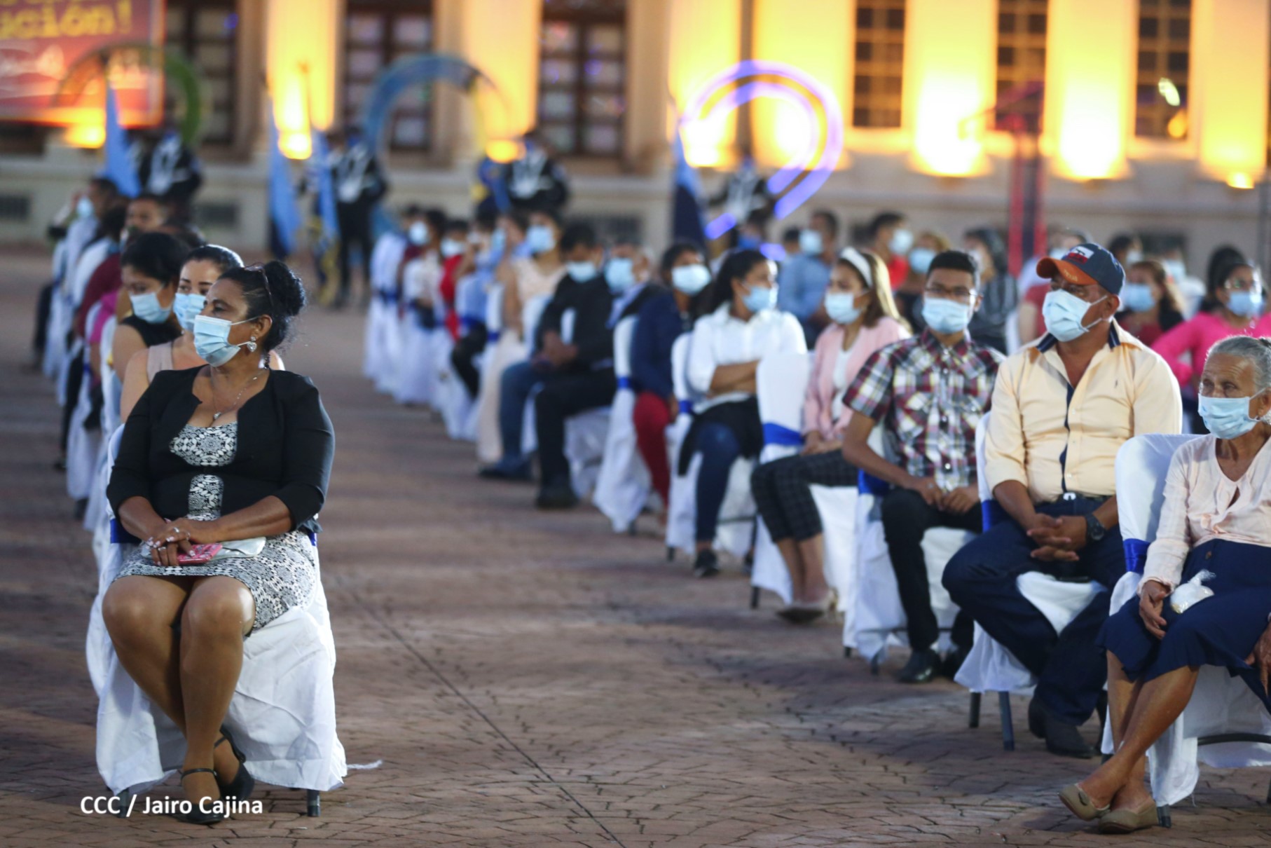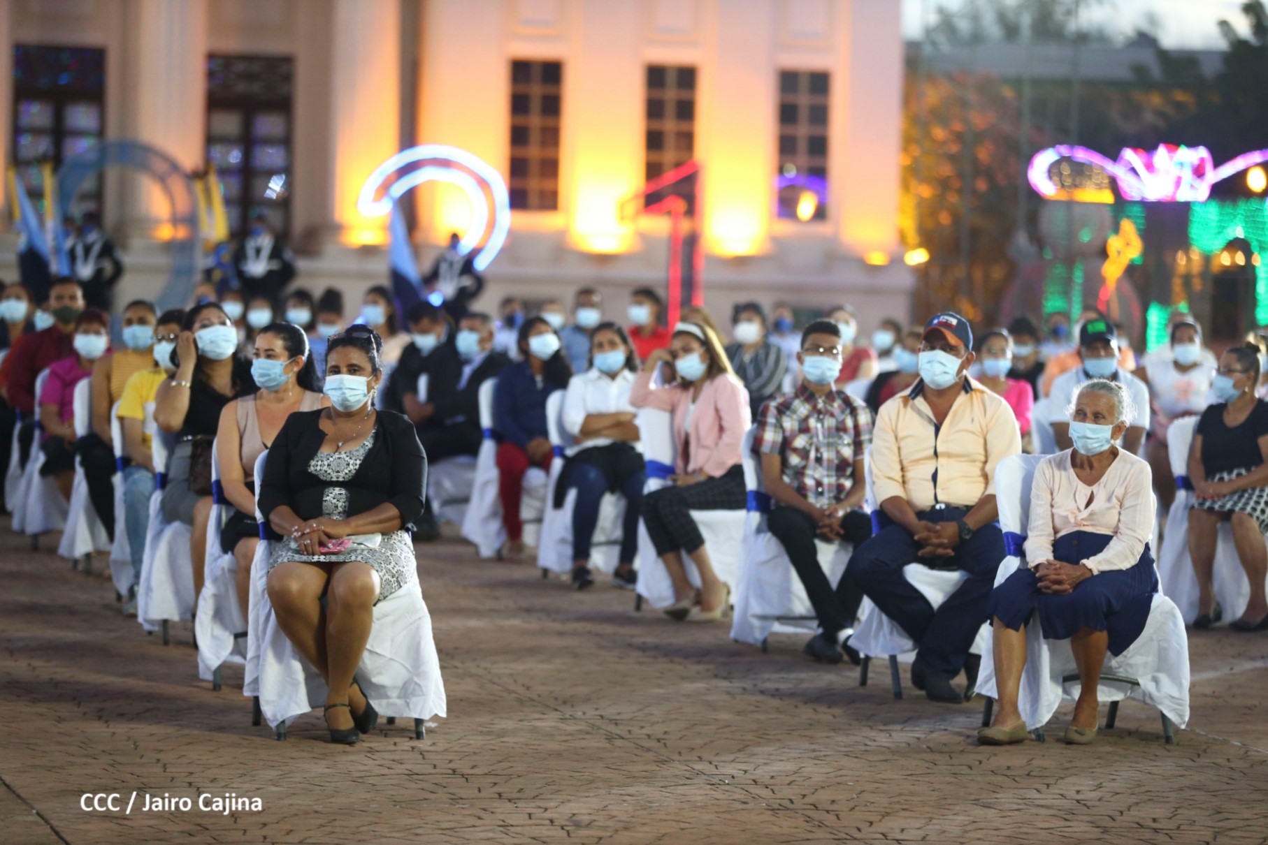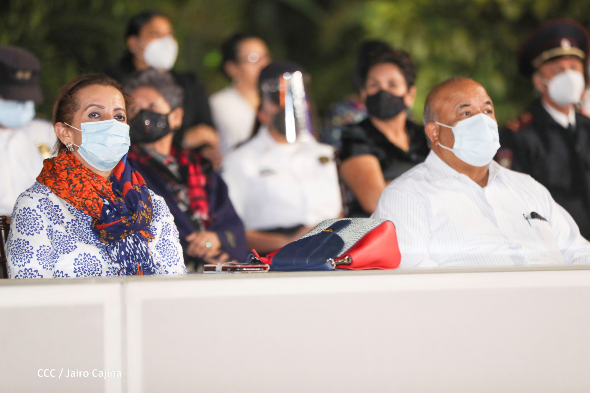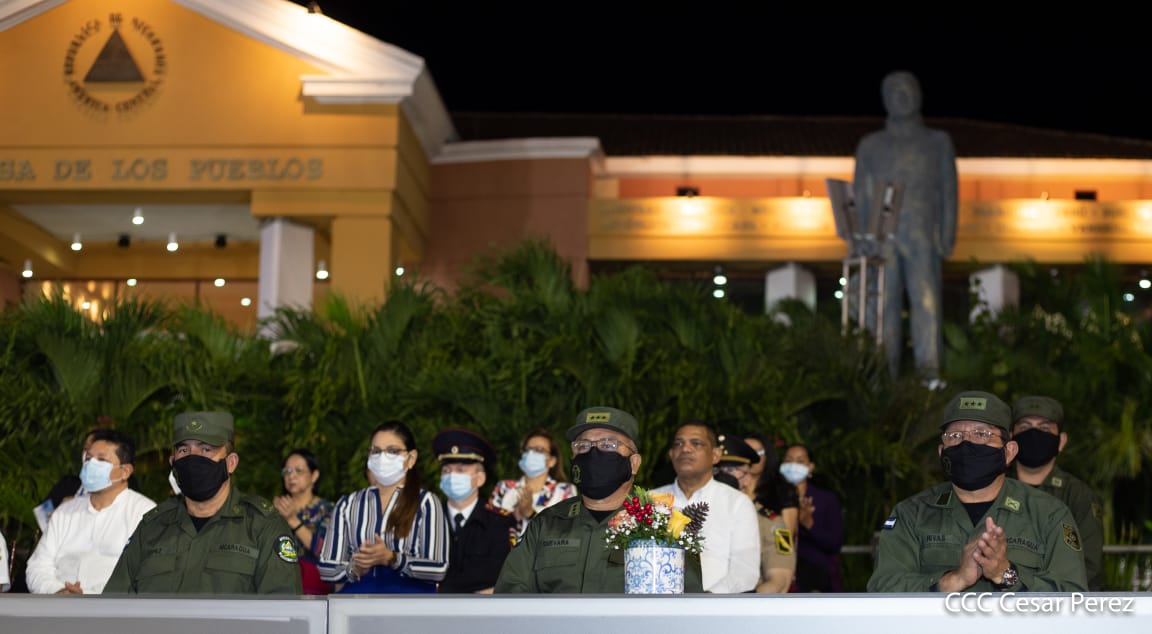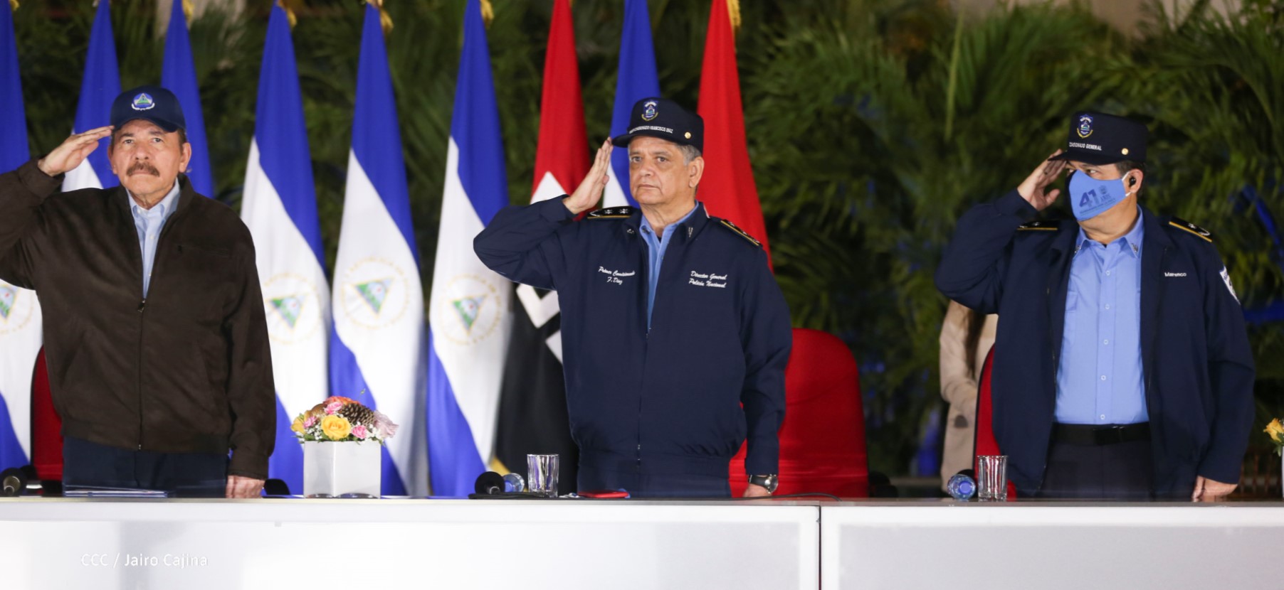 El Comandante Daniel Ortega, acompañado del Primer Comisionado Francisco Javier Díaz Madriz, entregaron títulos y reconocimientos a los tres pimeros expedientes
