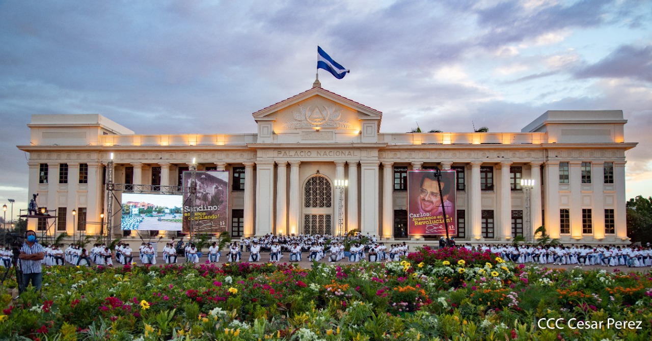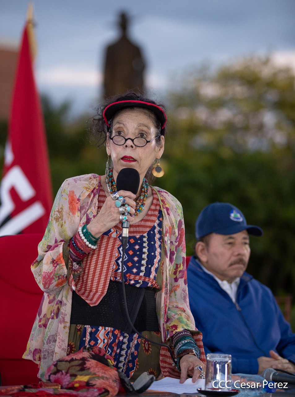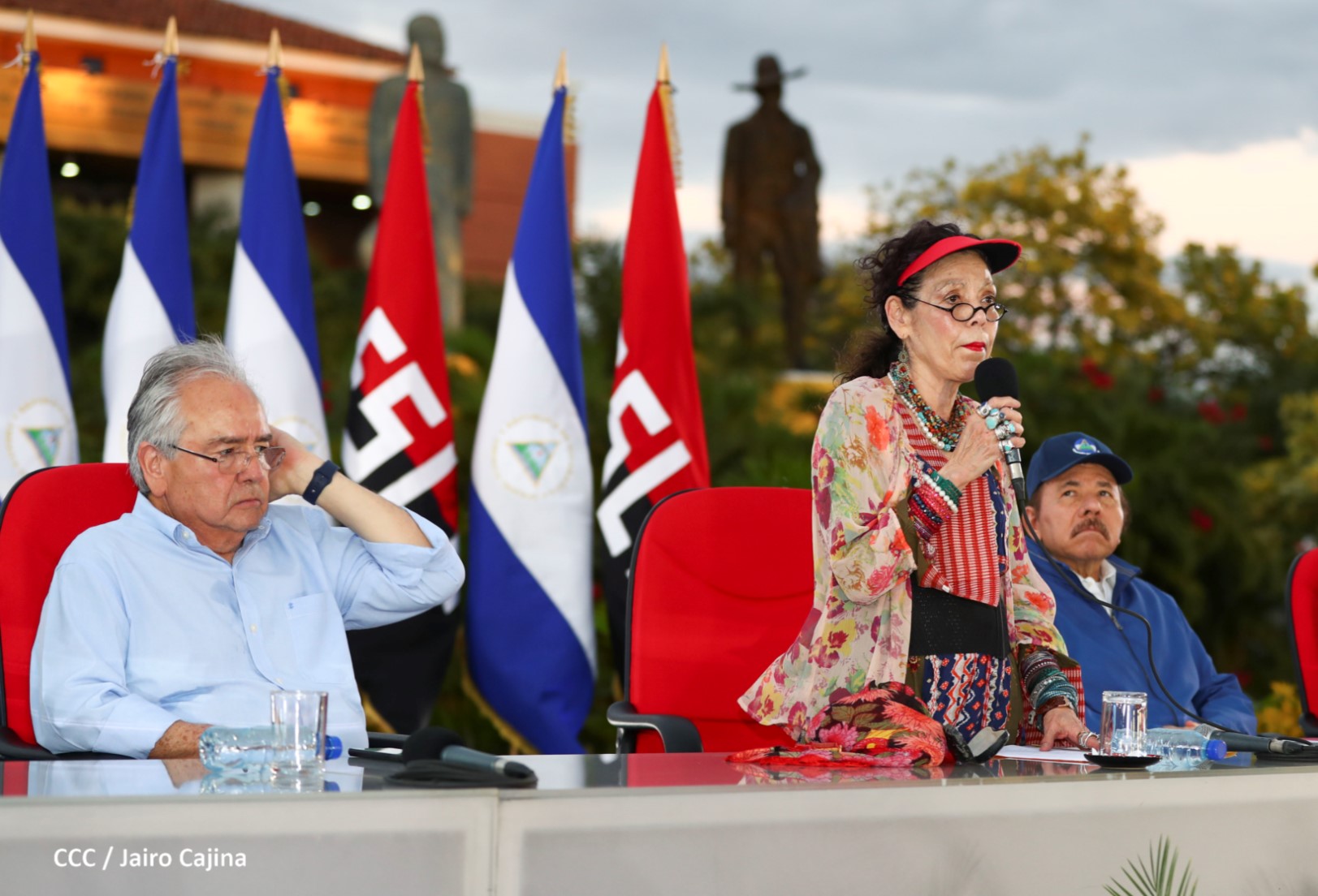El Presidente de Nicaragua, Comandante Daniel Ortega, junto a la Vicepresidenta Compañera Rosario Murillo encabezaron el acto de conmemoración del 87 aniversario del paso a la inmortalidad del General Augusto C. Sandino.