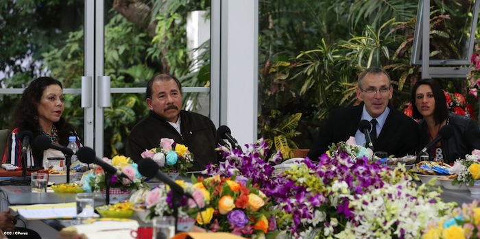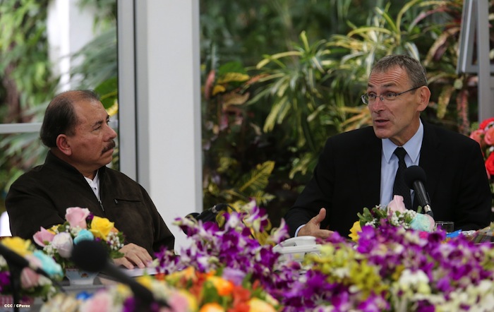 El Presidente Daniel Ortega y la Compañera Rosario Murillo se reúnen con Comisario de la Unión Europea (UE) , Andris Piebalgs.