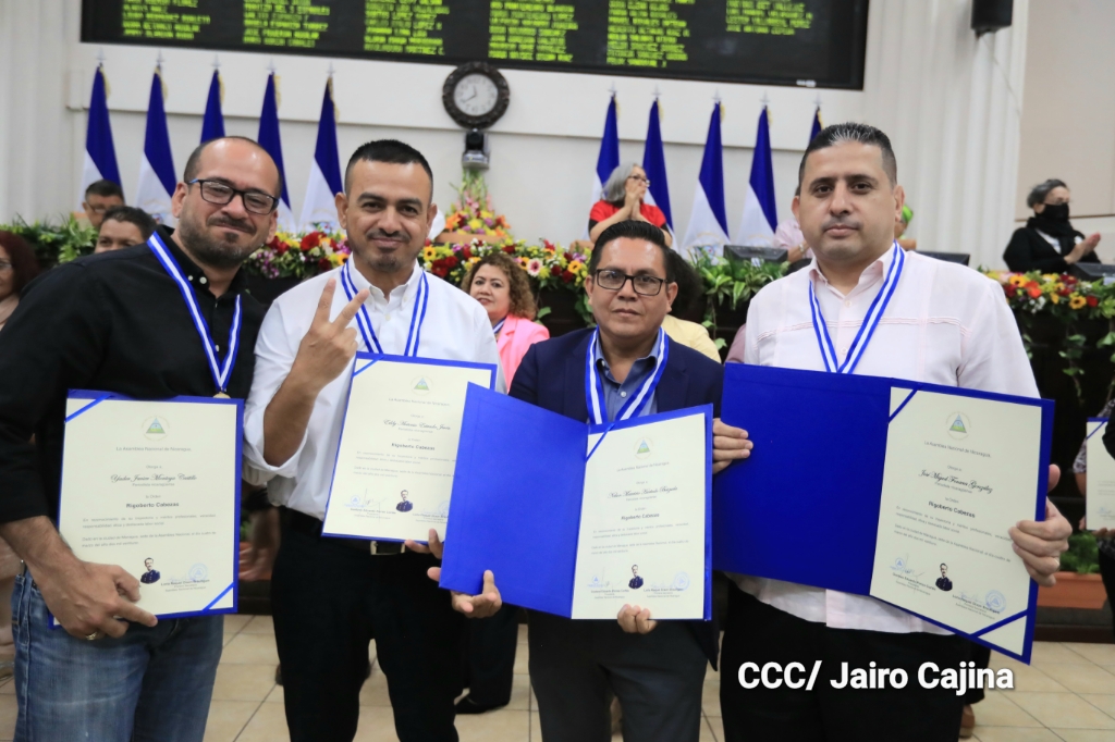 La Asamblea Nacional en sesión especial otorgó la Orden Rigoberto Cabezas a 19 periodistas en el marco de la conmemoración del Día Nacional del Periodista. Los periodistas que recibieron la Orden son: Arlen Hernández (Tu Nueva RadioYa), Edgard Curtis (Canal 2), Nelson Hurtado (Canal 4), Edwin Sánchez (El 19 Digital), Oliver Bodán (Carta Bodán), Martha Rosales (Divulgación INSS), José Miguel Fonseca (Canal 4), Juanita Telica (Divulgación Minsa), Martha Oporta (Cofundadora de UPN) e Irma Franco (Divulgación Ministerio de Defensa).