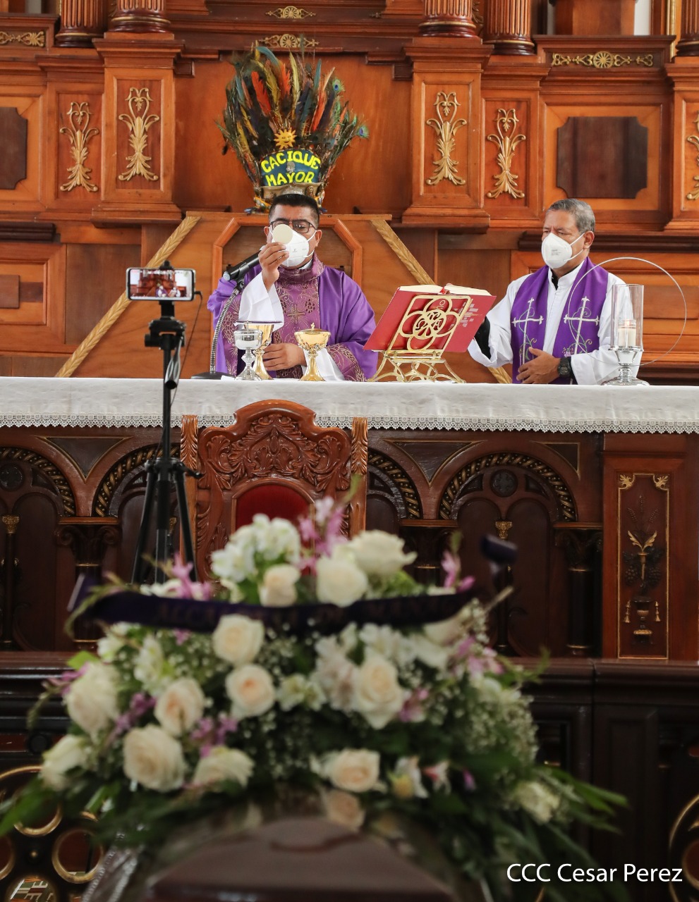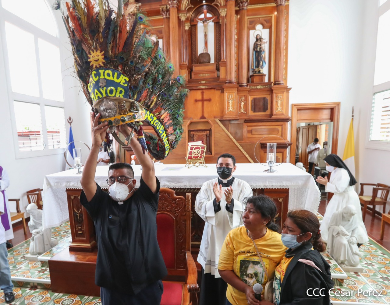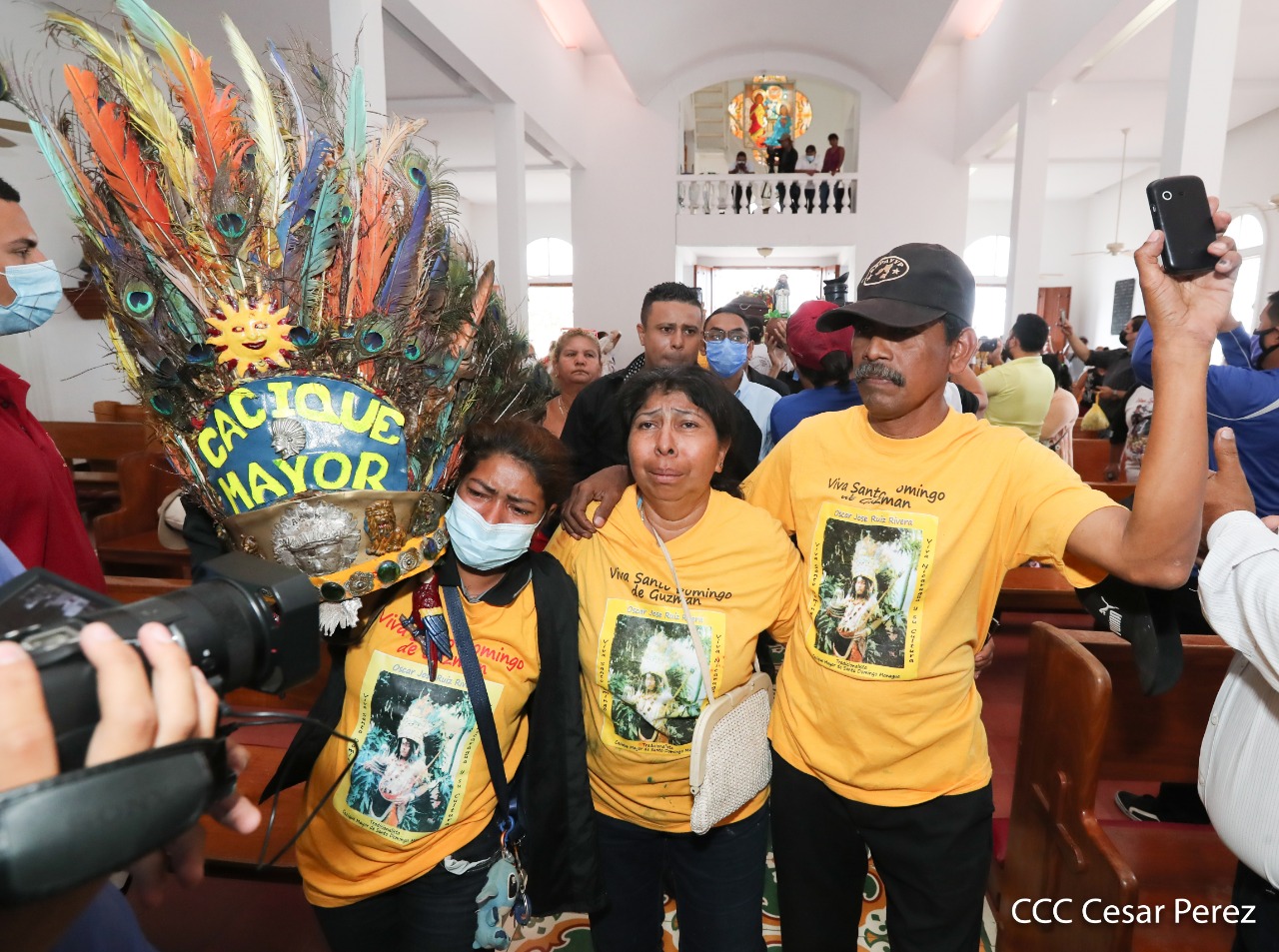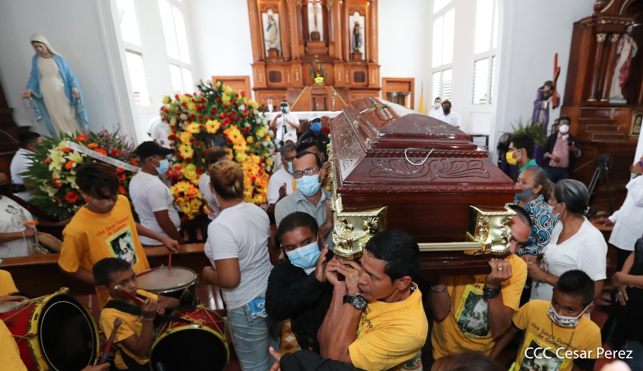 La música de los filarmónicos, así como la réplica de la imagen de Minguito y algunas personas luciendo atuendos de caciques, fueron notorios en el último adiós a un gran promotor cultural, Óscar José Ruiz, conocido popularmente como el Cacique Mayor en las festividades a Santo Domingo, quien pasó a formar parte de la historia de los tradicionalistas del país.