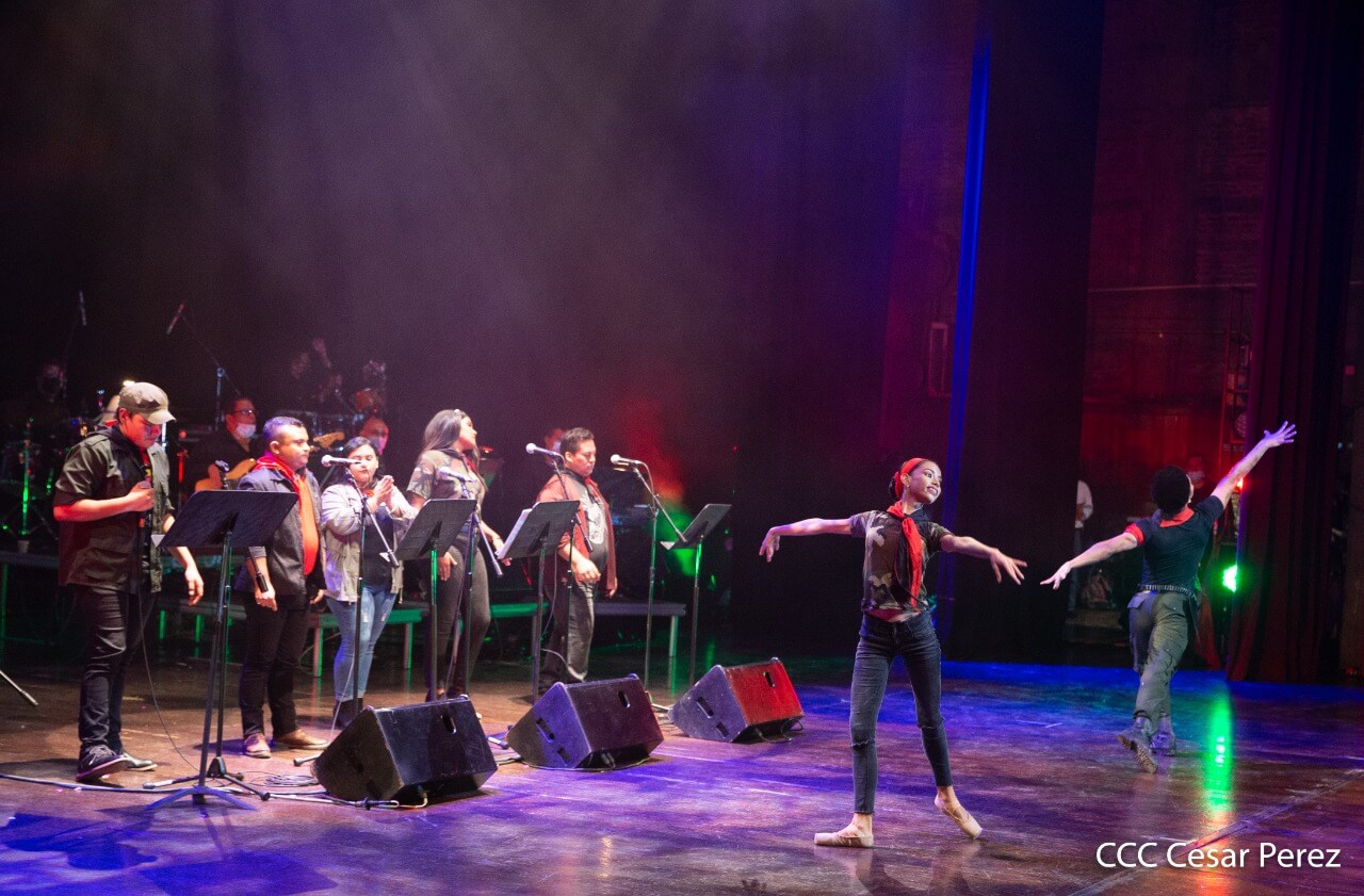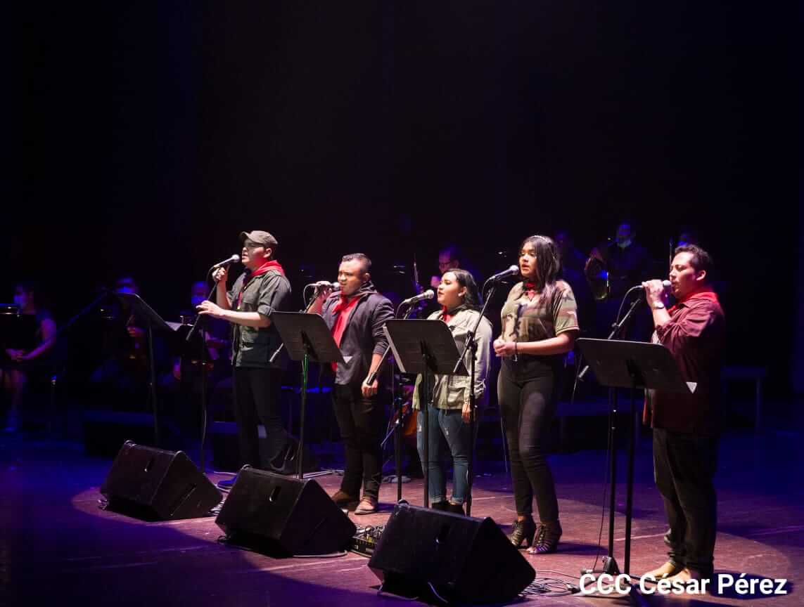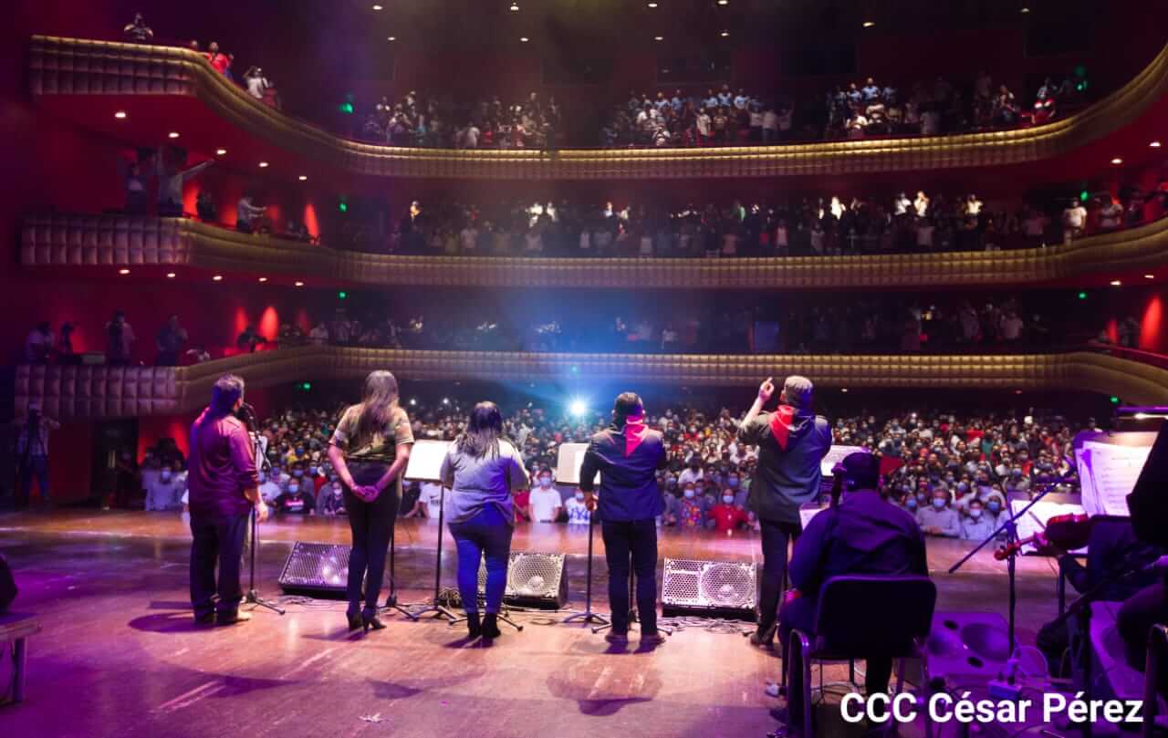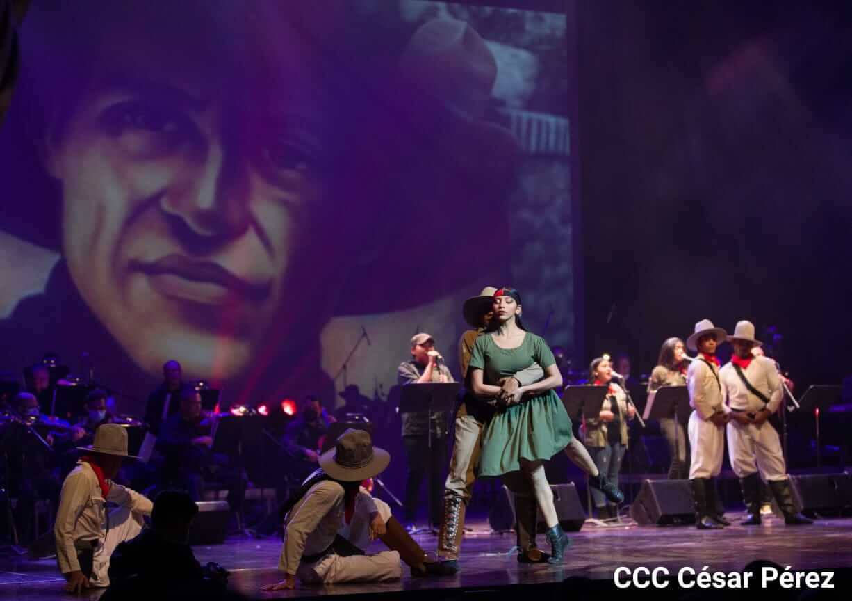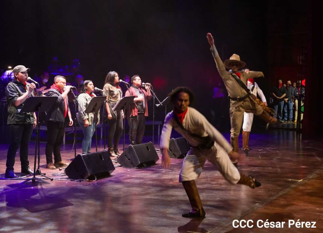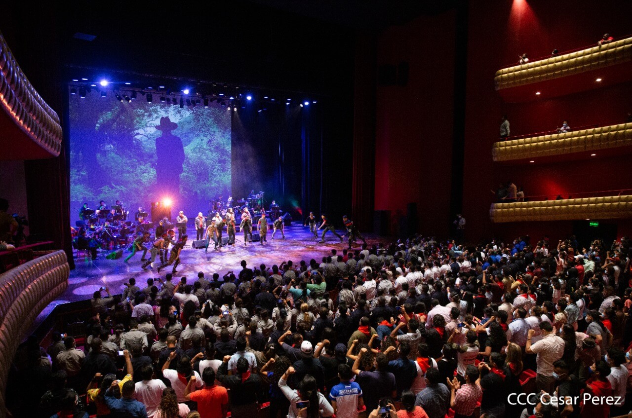 El Teatro Nacional Rubén Darío y el Movimiento Cultural Leonel Rugama se vistieron de gala con la cantata en homenaje al Padre de la Revolución denominada ¡Nicaragua libre y luminosa!