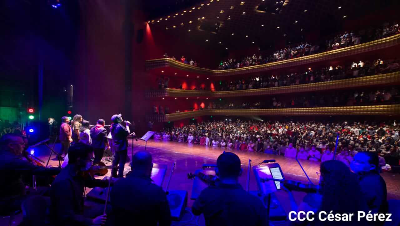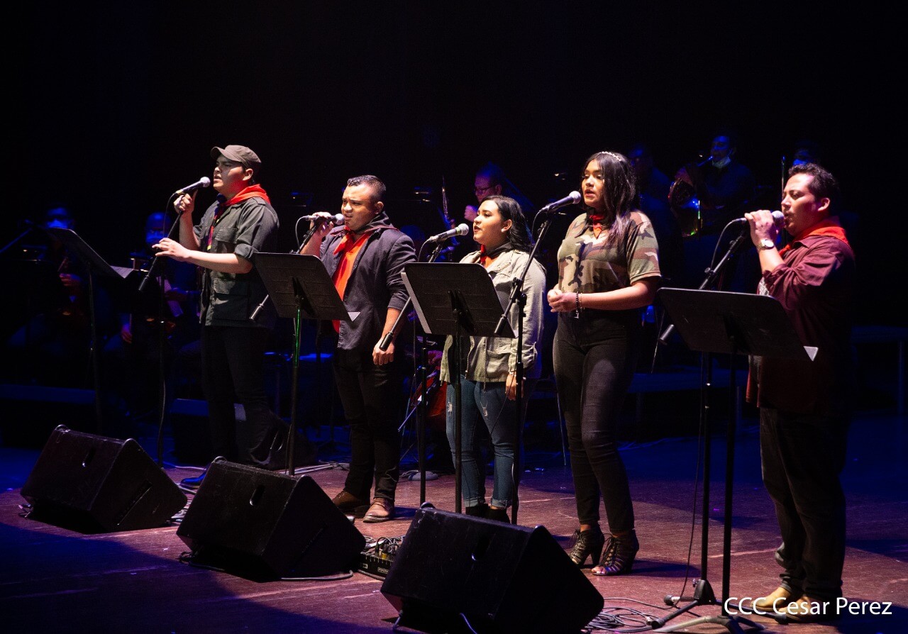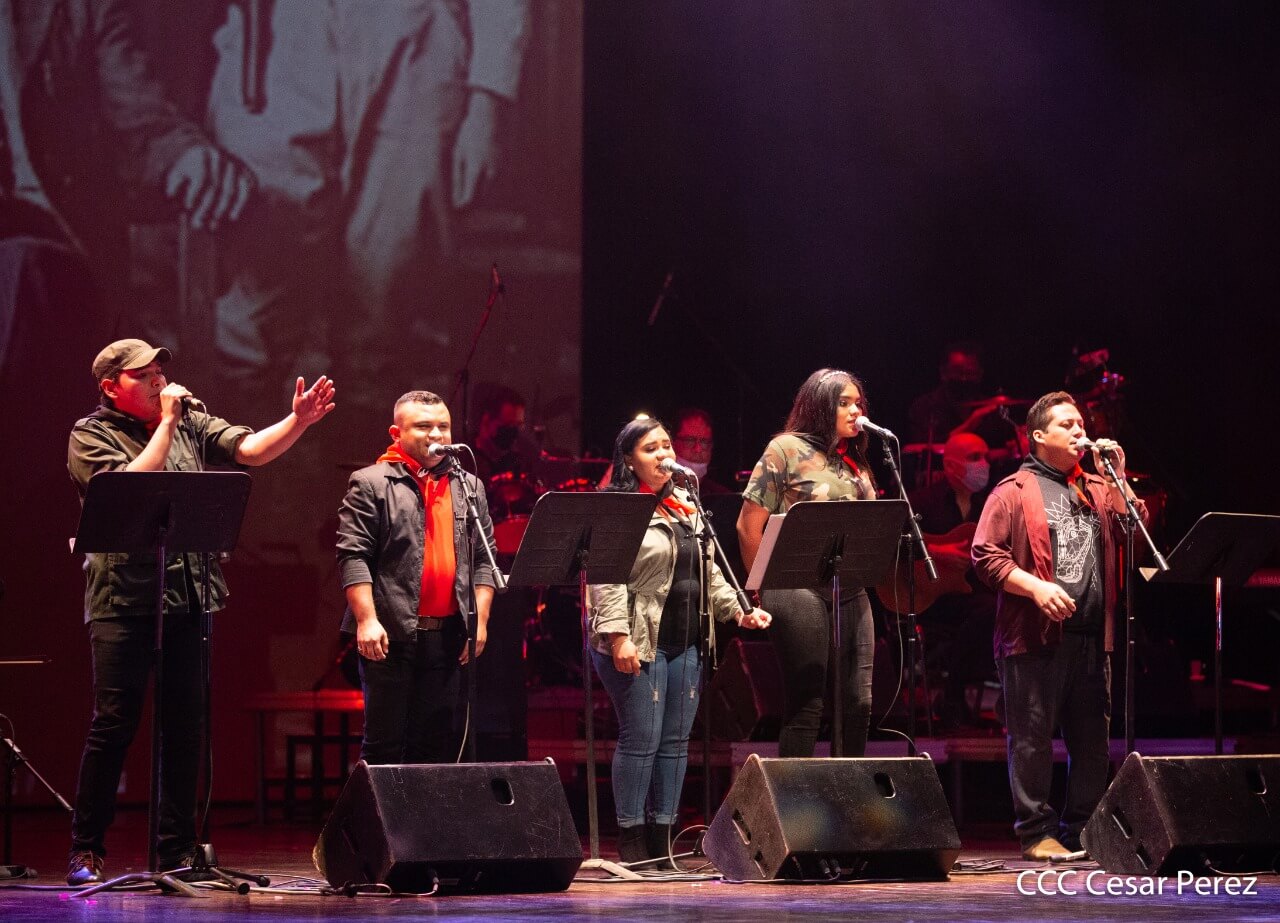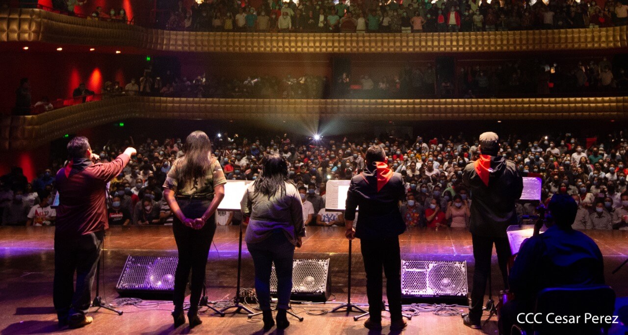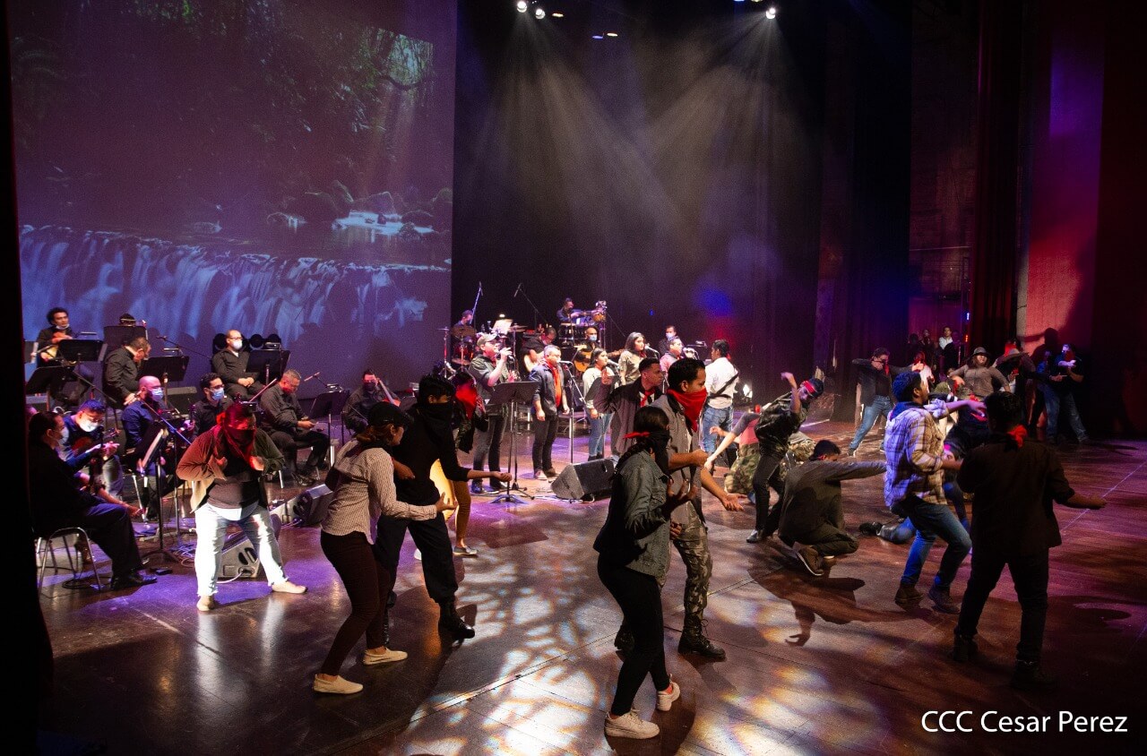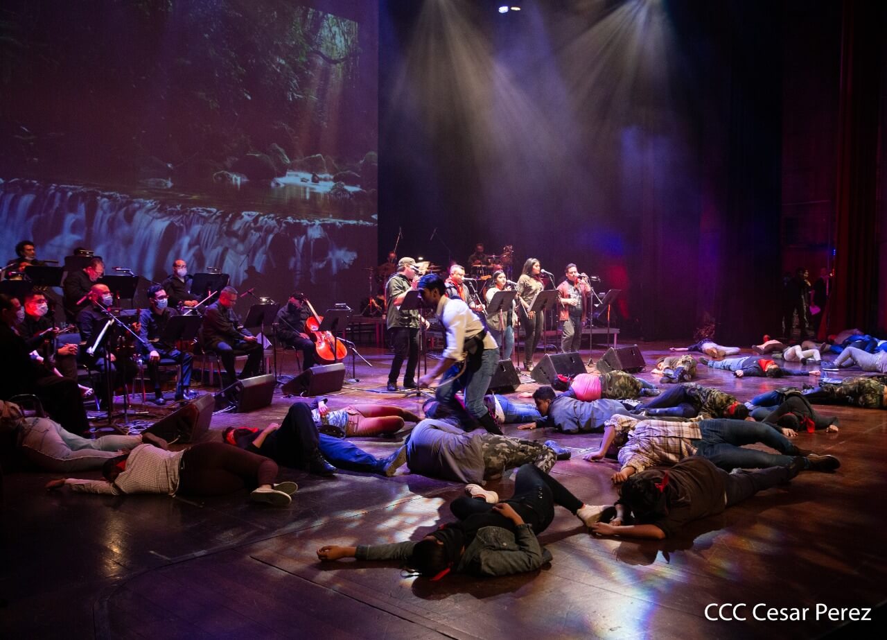 El Teatro Nacional Rubén Darío y el Movimiento Cultural Leonel Rugama se vistieron de gala con la cantata en homenaje al Padre de la Revolución denominada ¡Nicaragua libre y luminosa!