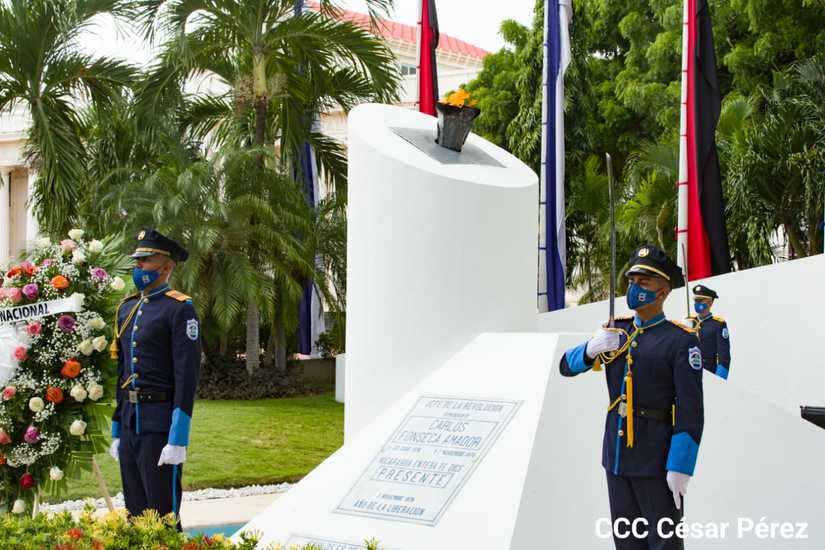 A 85 años del aniversario natal del Comandante en Jefe de la Revolución Popular Sandinista, Carlos Fonseca Amador, representaciones las instituciones y pueblo de Nicaragua depositaron ofrendas florales haciendo honores a su legado inmortal.