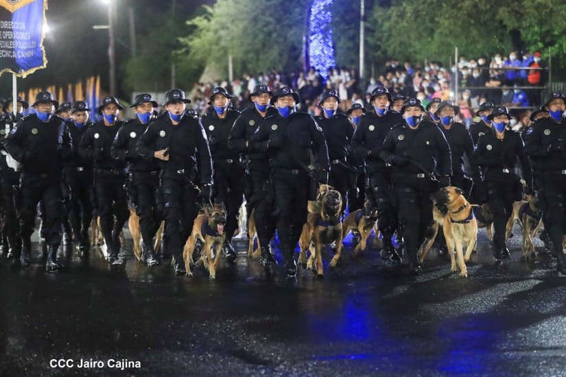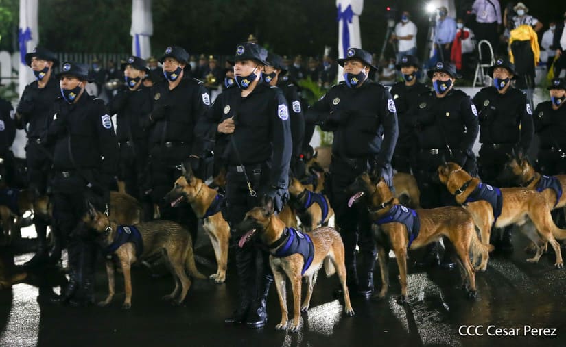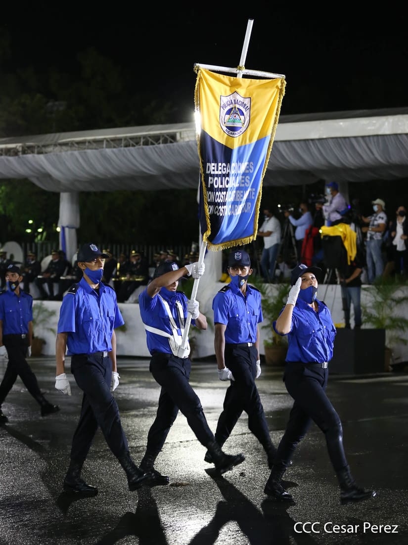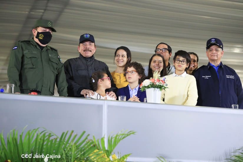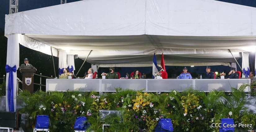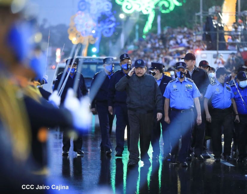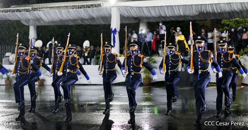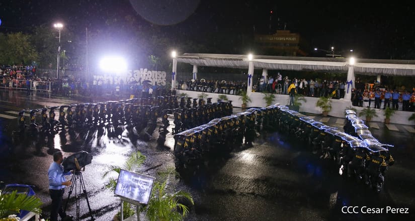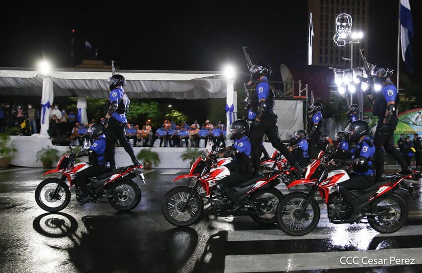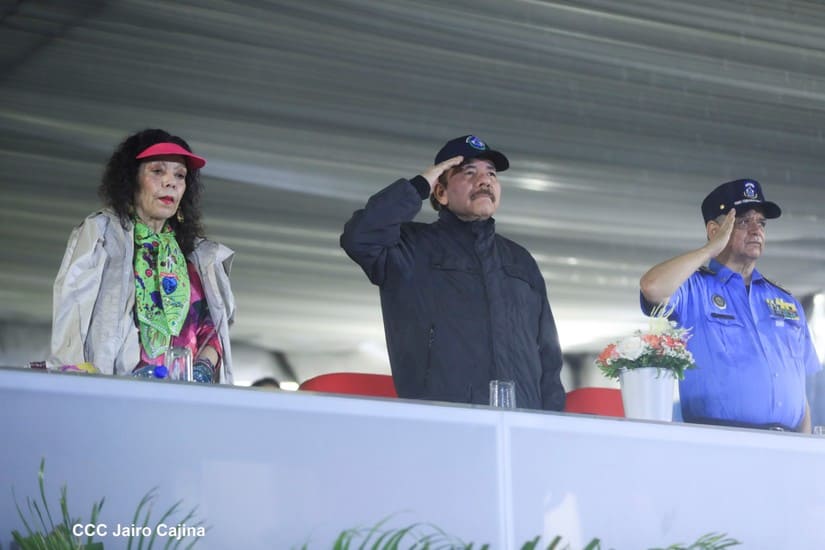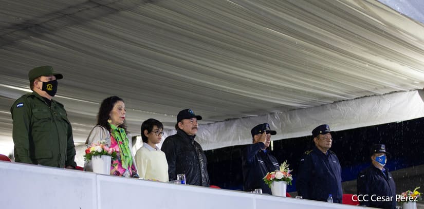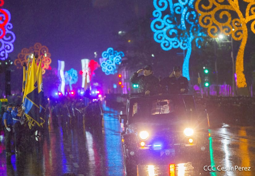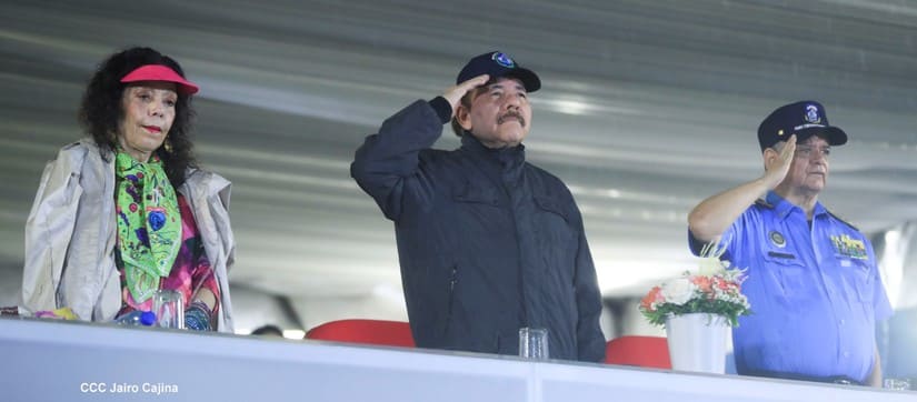 El Presidente de Nicaragua, Comandante Daniel Ortega, y la vicepresidenta, compañera Rosario Murillo, participan en el desfile policial "Centinelas de La Paz" en saludo al 42 aniversario de fundación de la Policía Nacional, que se desarrolla en la Avenida de Bolívar a Chávez.