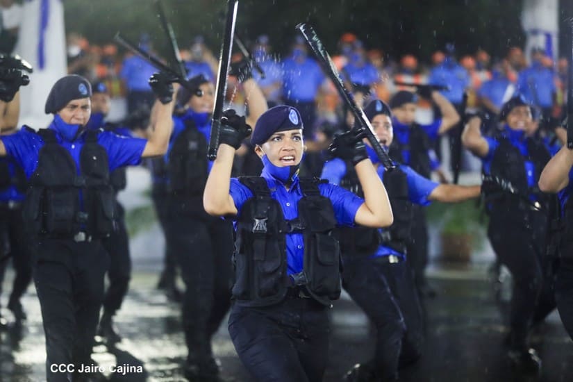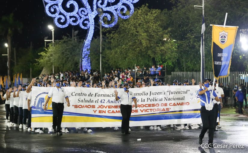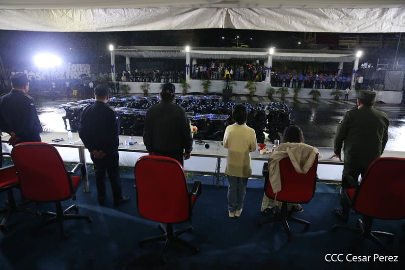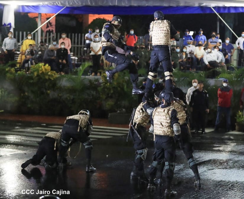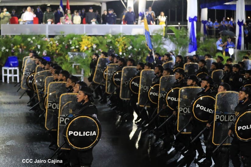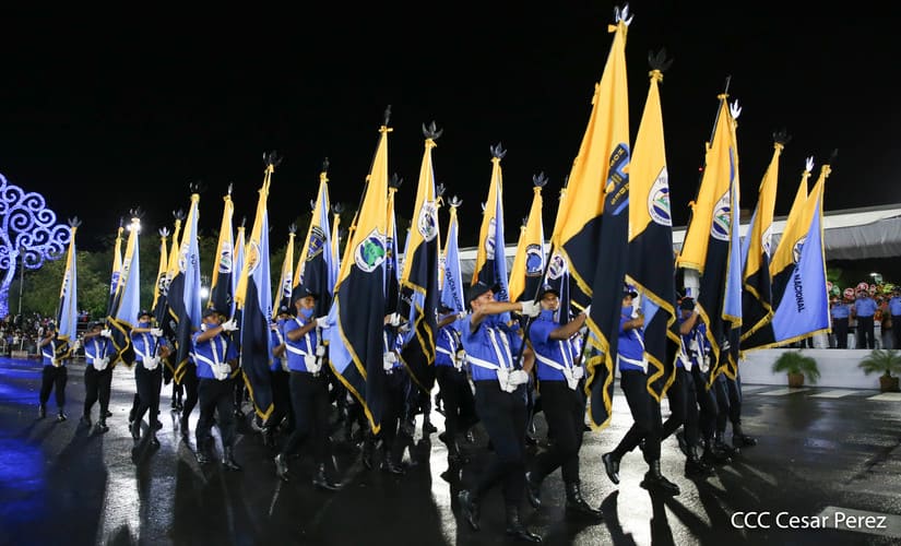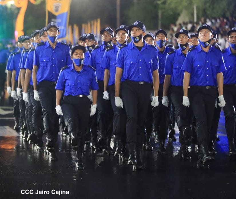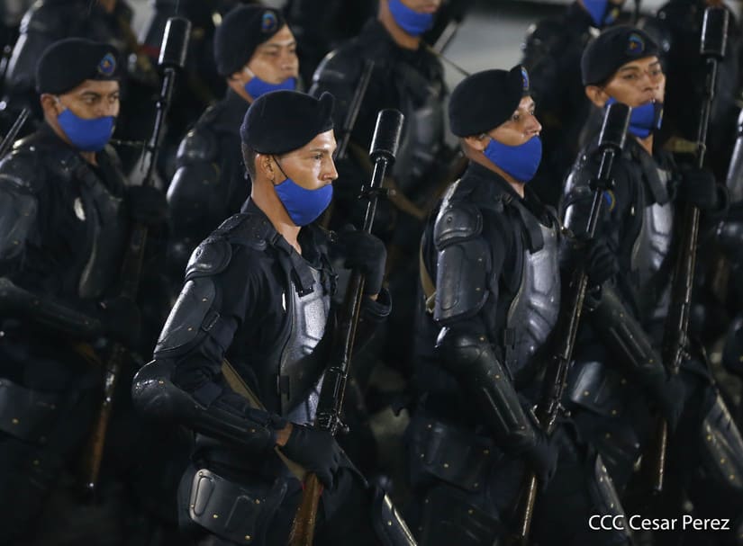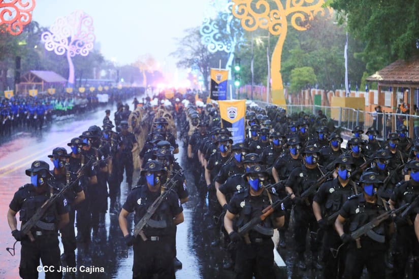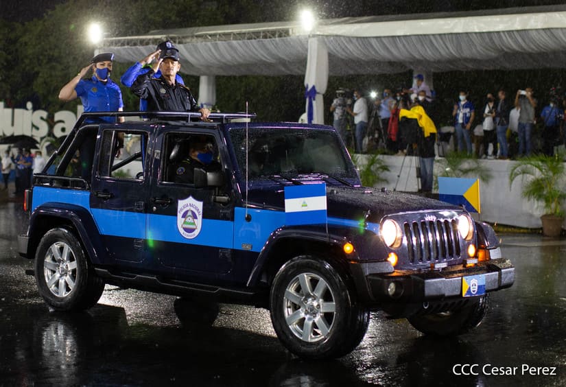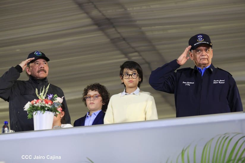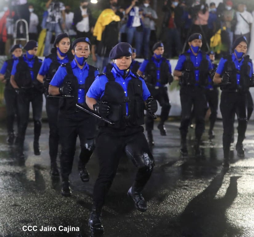 El Presidente de Nicaragua, Comandante Daniel Ortega, y la vicepresidenta, compañera Rosario Murillo, participan en el desfile policial "Centinelas de La Paz" en saludo al 42 aniversario de fundación de la Policía Nacional, que se desarrolla en la Avenida de Bolívar a Chávez.