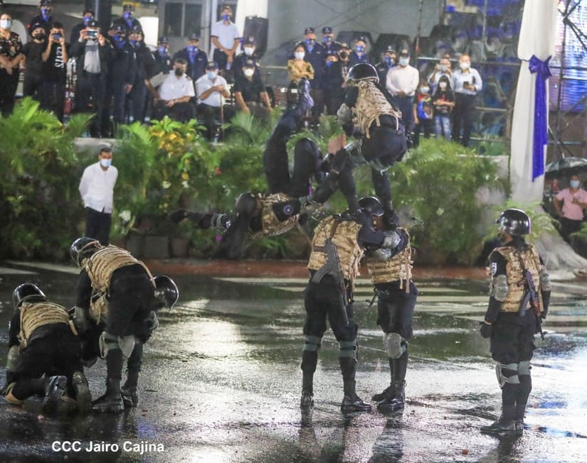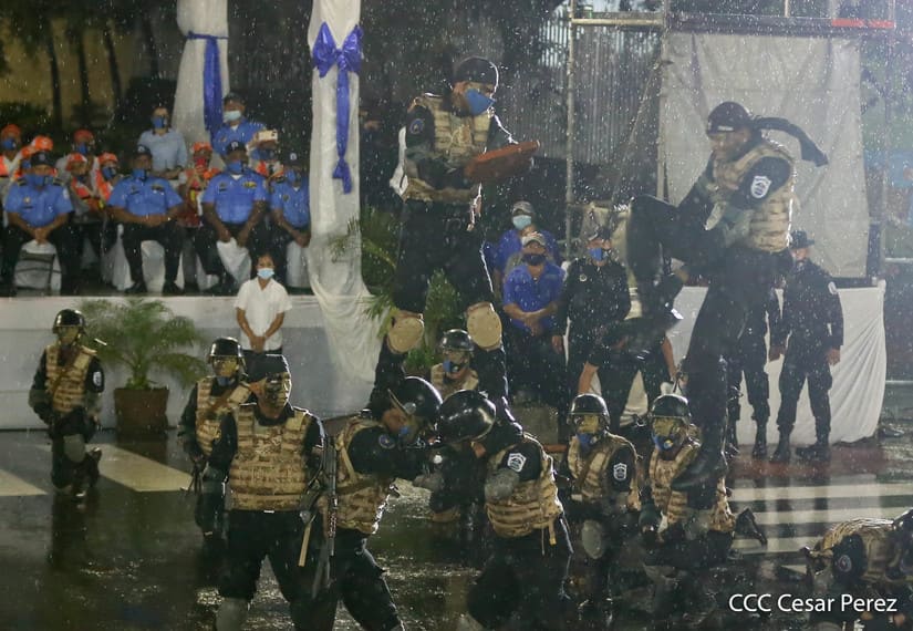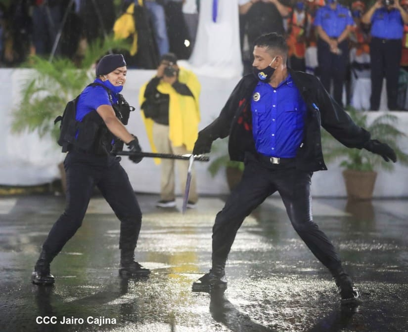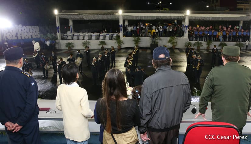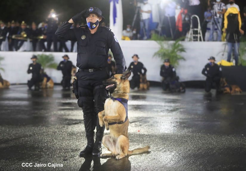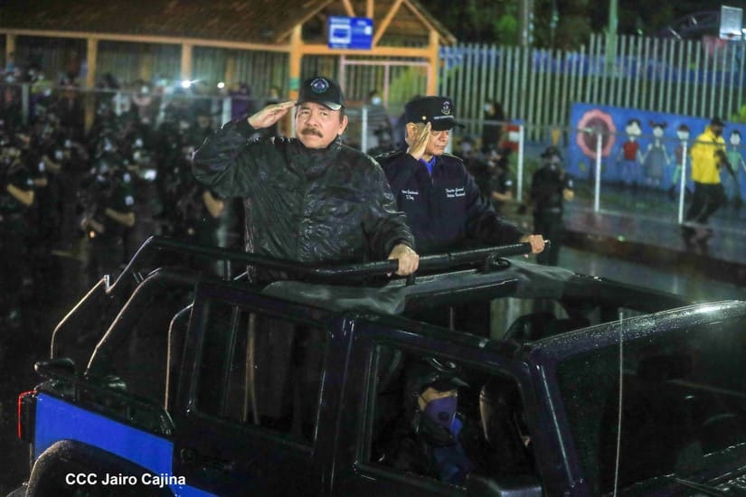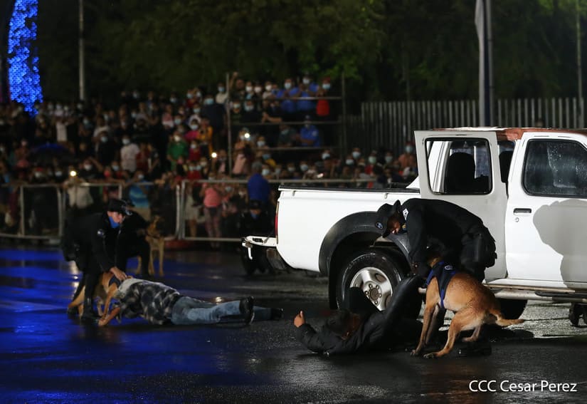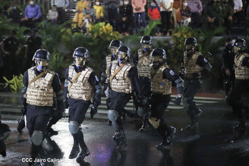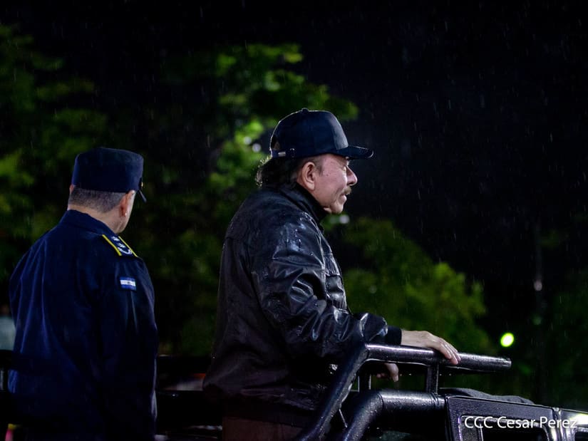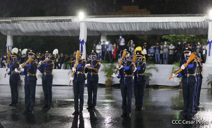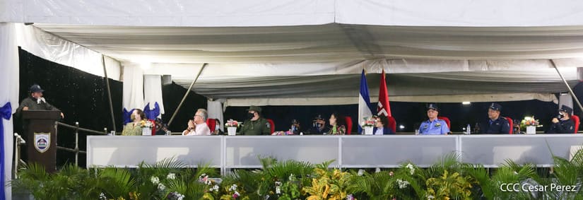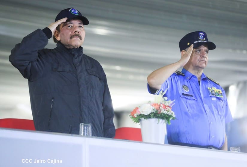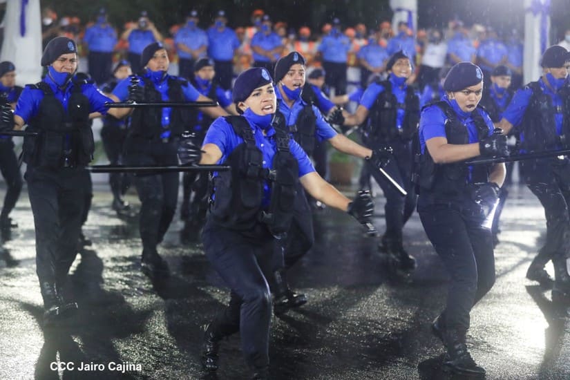 El Presidente de Nicaragua, Comandante Daniel Ortega, y la vicepresidenta, compañera Rosario Murillo, participan en el desfile policial "Centinelas de La Paz" en saludo al 42 aniversario de fundación de la Policía Nacional, que se desarrolla en la Avenida de Bolívar a Chávez.