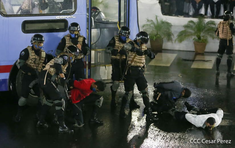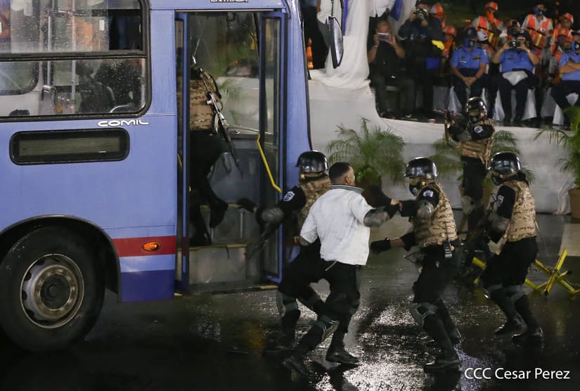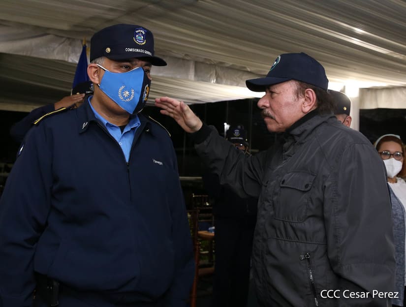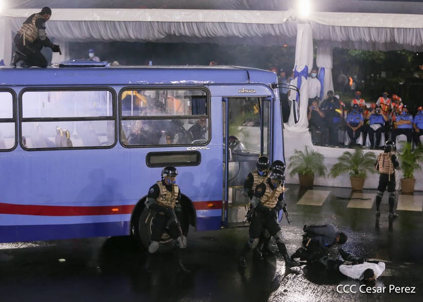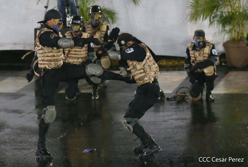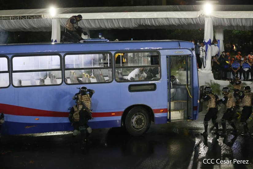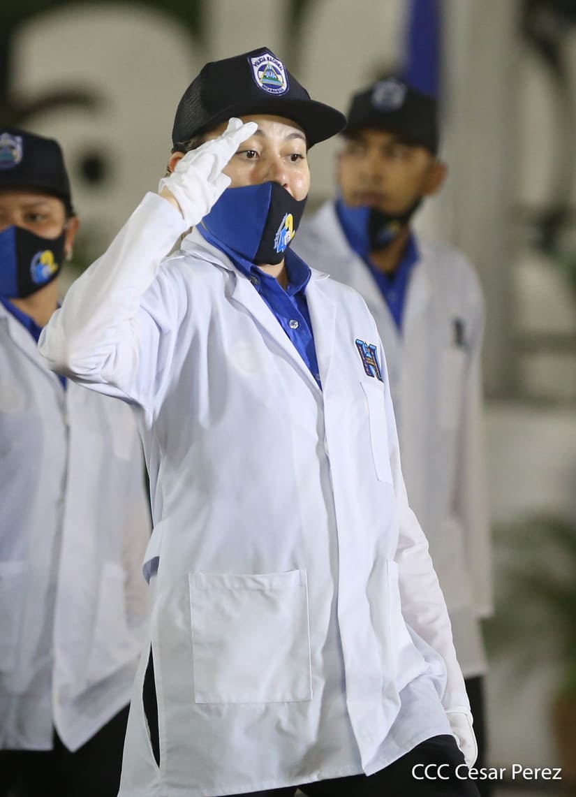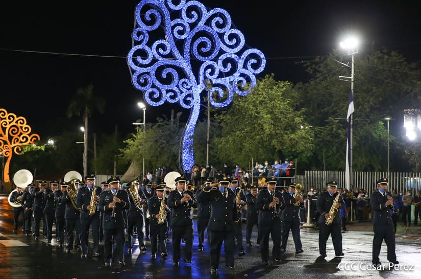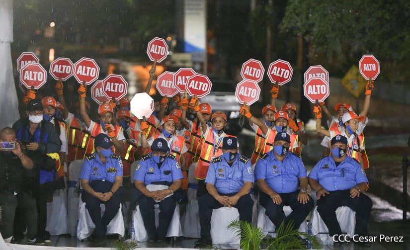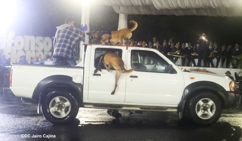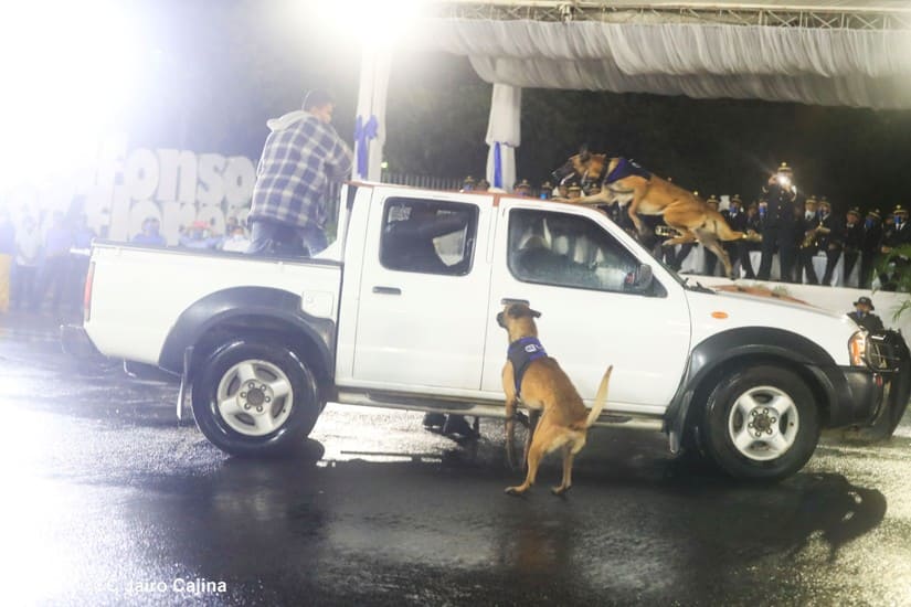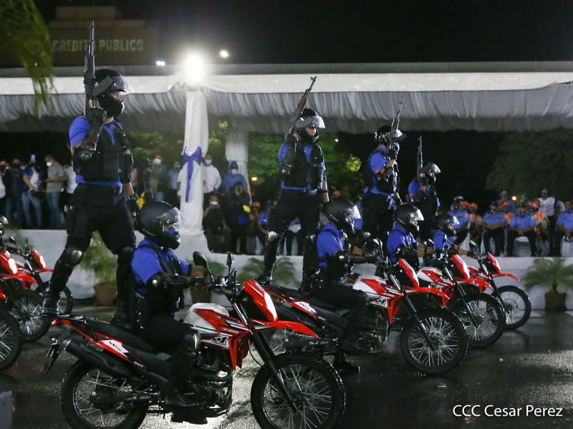 El Presidente de Nicaragua, Comandante Daniel Ortega, y la vicepresidenta, compañera Rosario Murillo, participan en el desfile policial "Centinelas de La Paz" en saludo al 42 aniversario de fundación de la Policía Nacional, que se desarrolla en la Avenida de Bolívar a Chávez.