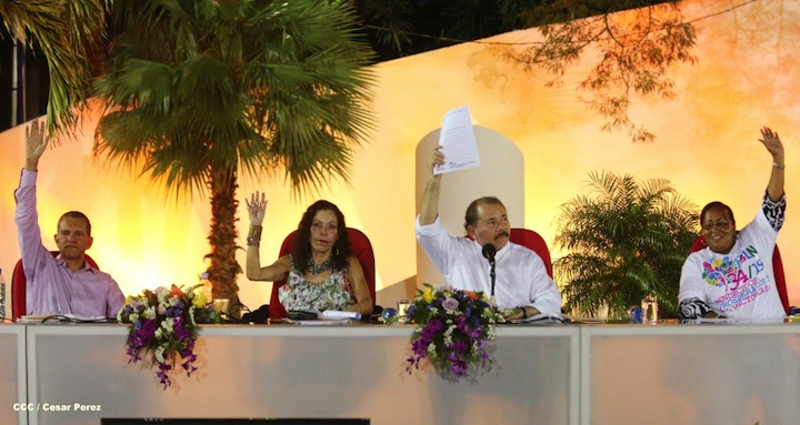 El Consejo Sandinista Nacional, presidido por el Secretario General del Frente Sandinista de Liberación Nacional, Comandante Daniel Ortega Saavedra, acompañado de la Coordinadora del Consejo de Comunicación, Compañera Rosario Murillo Zambrana, en sesión ampliada realizada en Managua, aprobó de manera unánime y con un quórum superior al 90%, dos resoluciones de cara a las elecciones regionales de la Costa Caribe de Nicaragua.