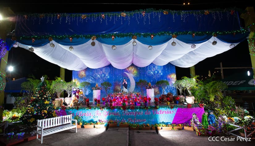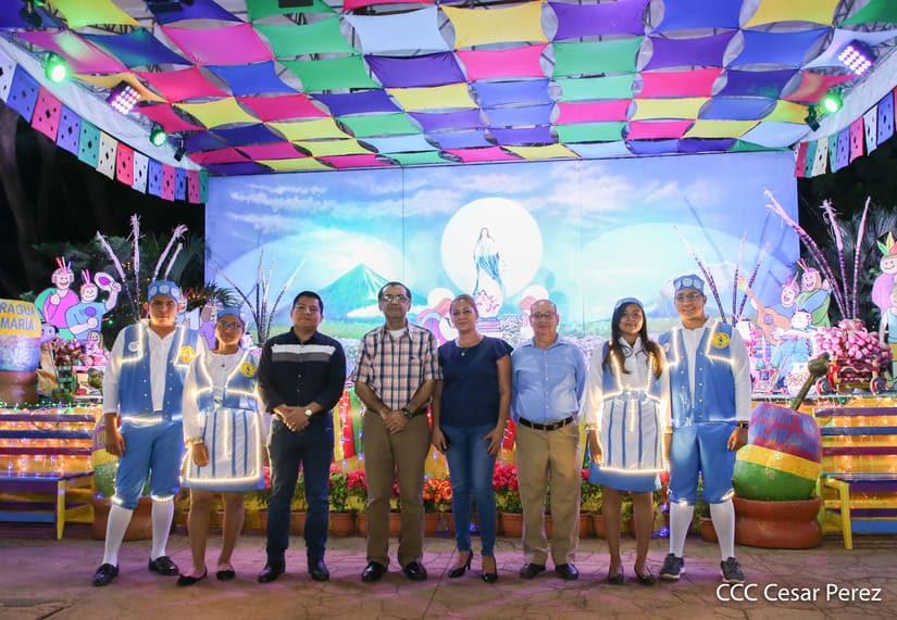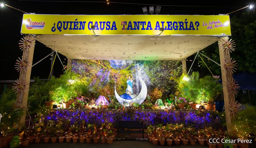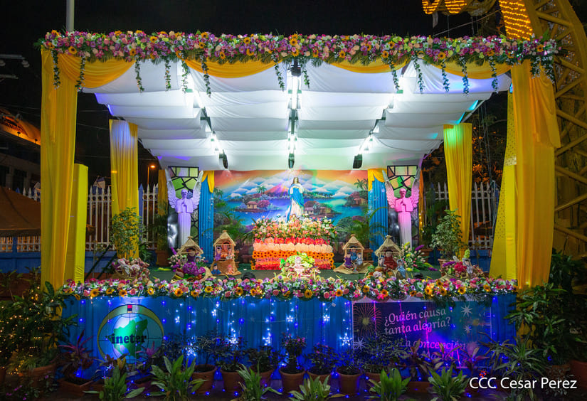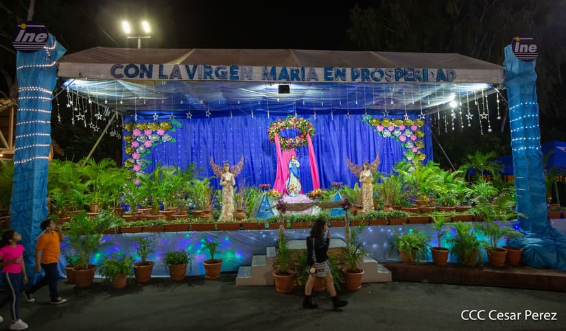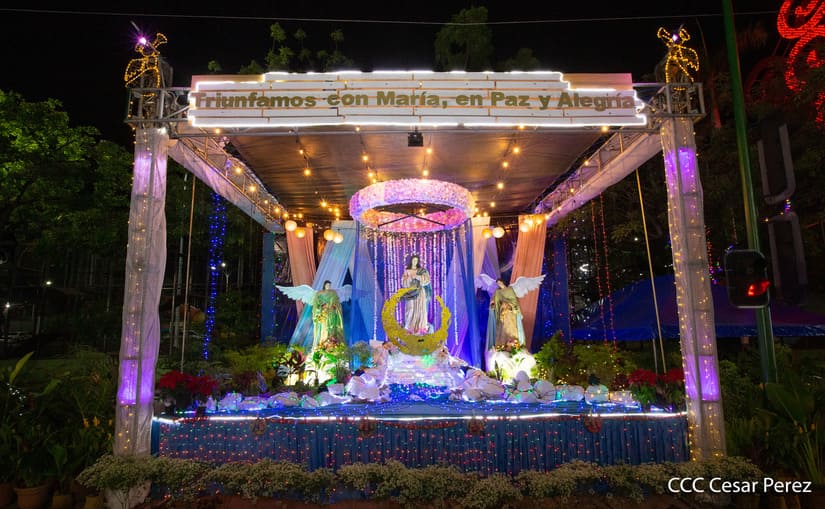 El amor a la Purísima Concepción de María se vivió con mucha devoción durante la ceremonia de inauguración de los altares que las instituciones del Gobierno Sandinista levantaron un año más para celebrar las festividades en honor a la Madre de Jesucristo. En la Plaza de la Revolución y en la Plaza San Juan Pablo II, las familias también disfrutaron del alegre ambiente navideño.