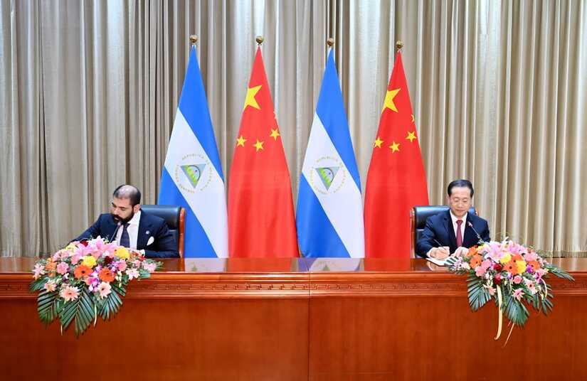 El día 10 de diciembre, China y Nicaragua firmaron en Tianjin el Comunicado Conjunto entre la República Popular China y la República de Nicaragua sobre el Restablecimiento de Relaciones Diplomáticas.