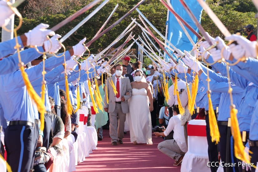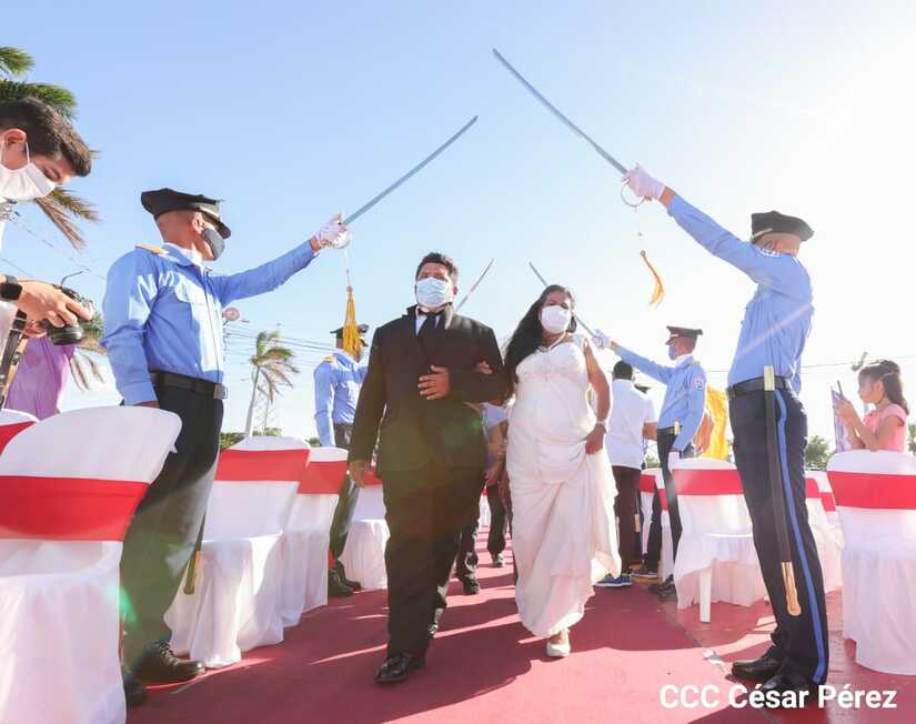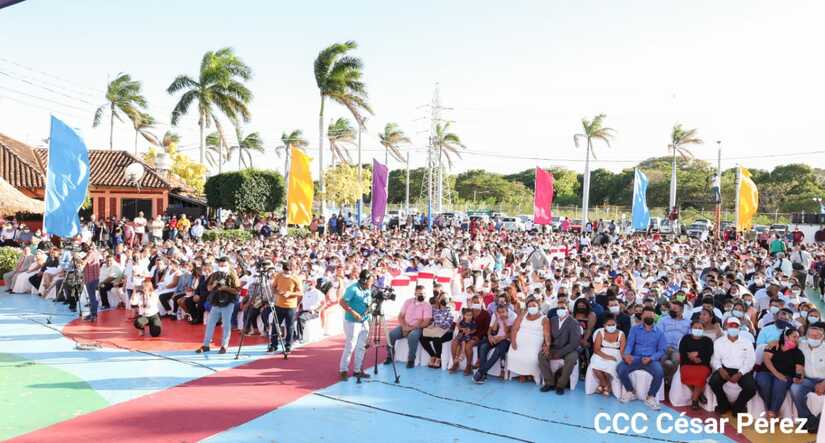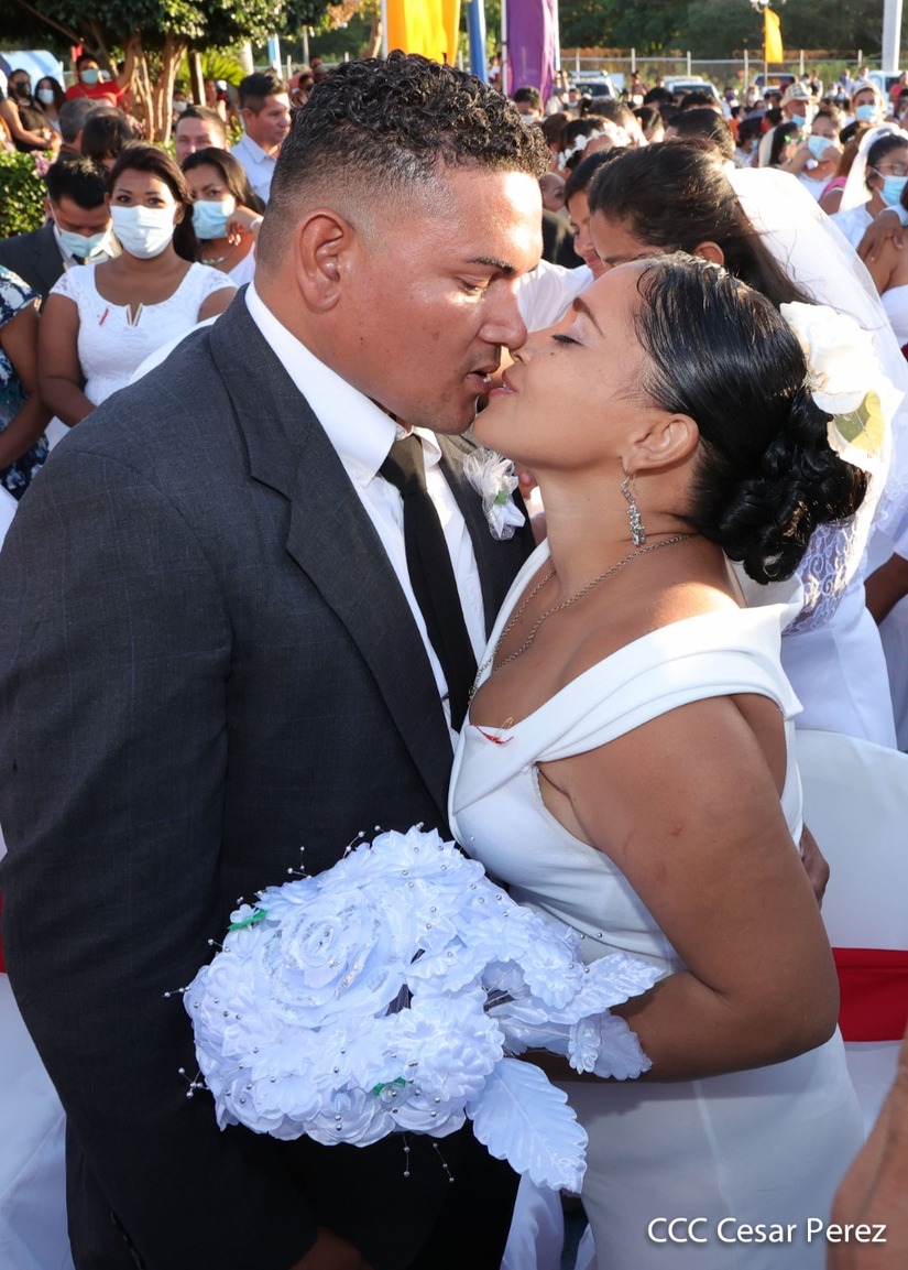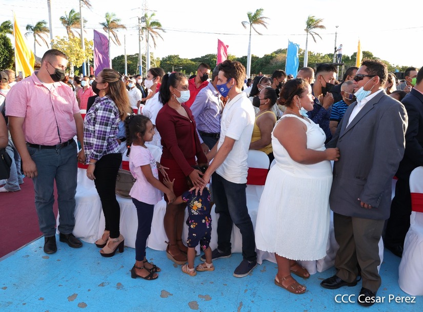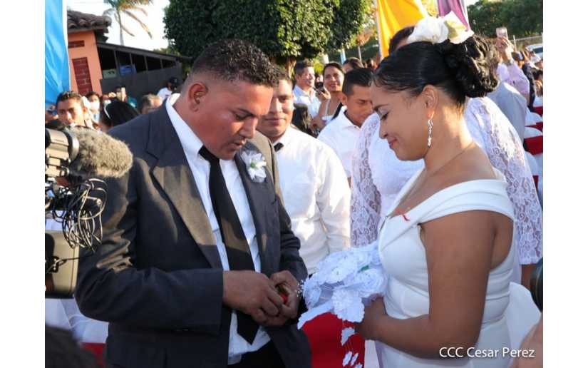 Cuatrocientas parejas se juraron amor eterno este 14 de febrero en el Puerto Salvador Allende de Managua, de manera simultánea.