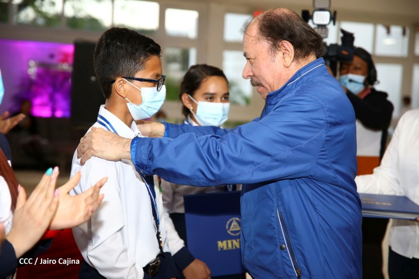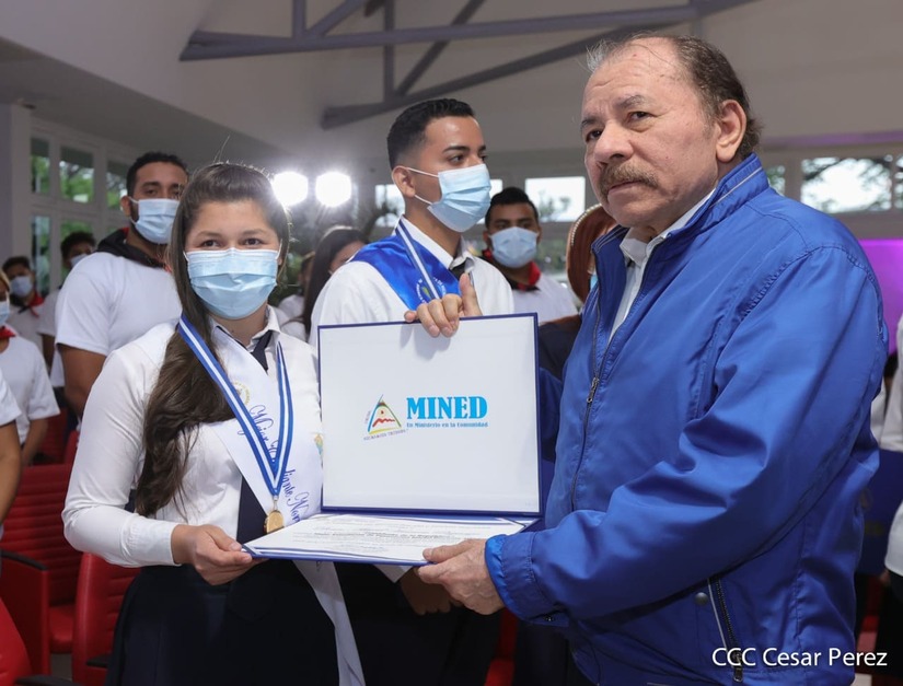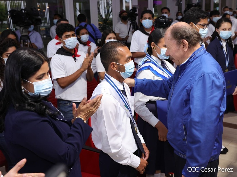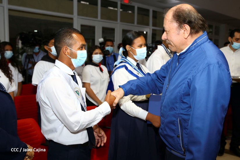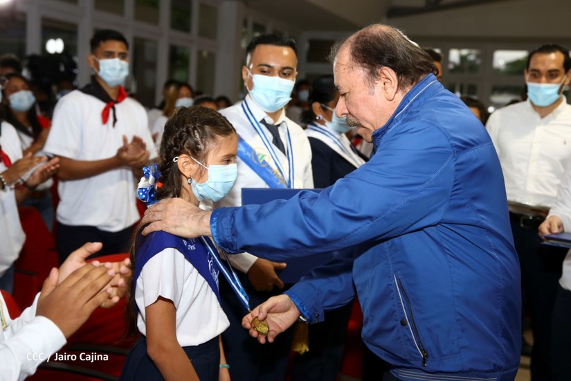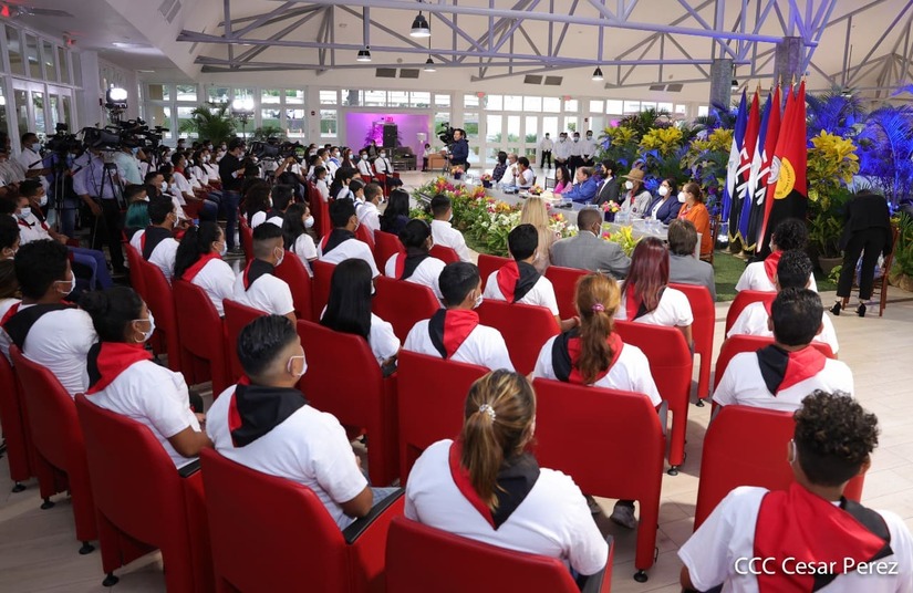 El Presidente de la República, Comandante Daniel Ortega Saavedra y la Vicepresidenta Compañera Rosario Murillo, presidieron el Acto central en conmemoración del 42 aniversario de la Gran Cruzada Nacional de Alfabetización.