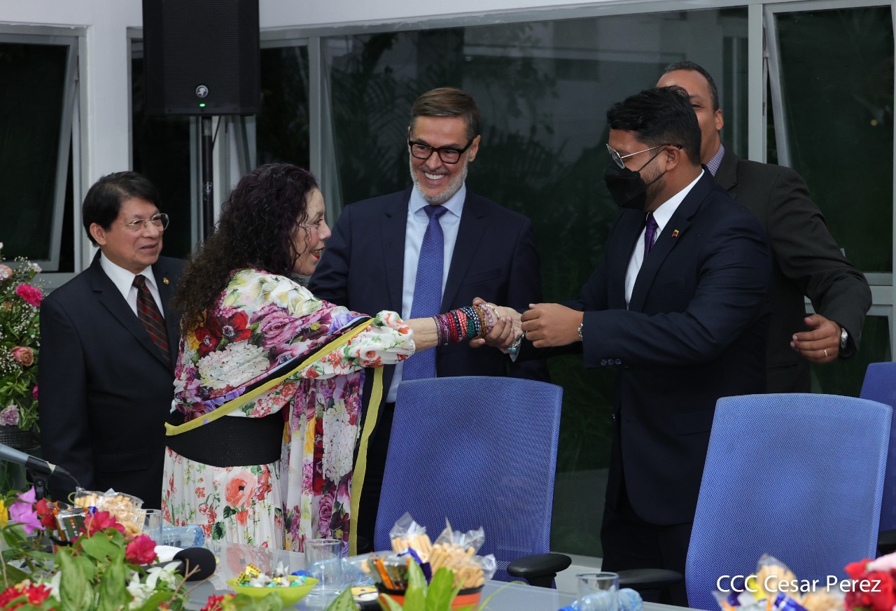 El compañero Félix Plasencia, Canciller de la República Bolivariana de Venezuela y una delegación de trabajo que lo acompañó en su visita a Nicaragua, sostuvo un encuentro con el Presidente de la República, Comandante Daniel Ortega y la Compañera Rosario Murillo, Vicepresidenta de Nicaragua.