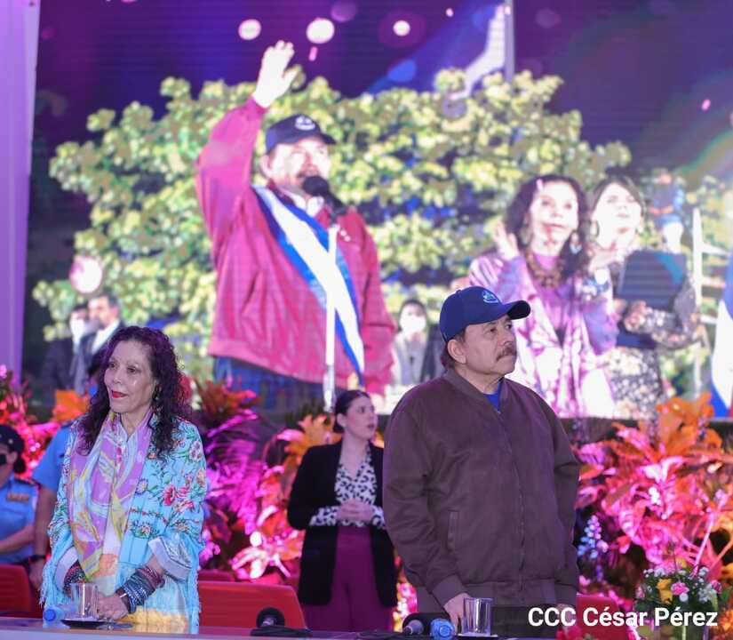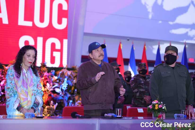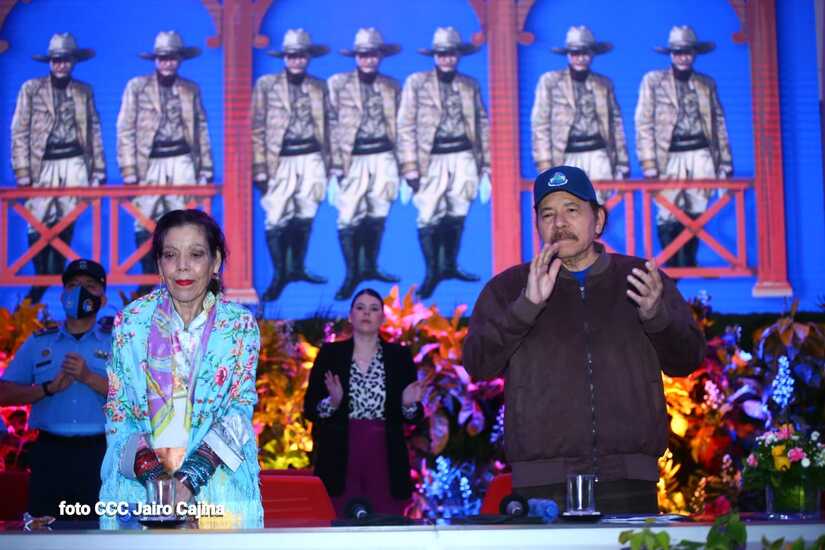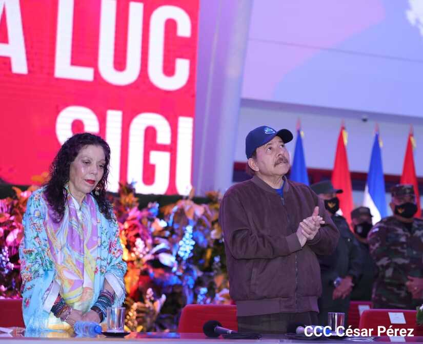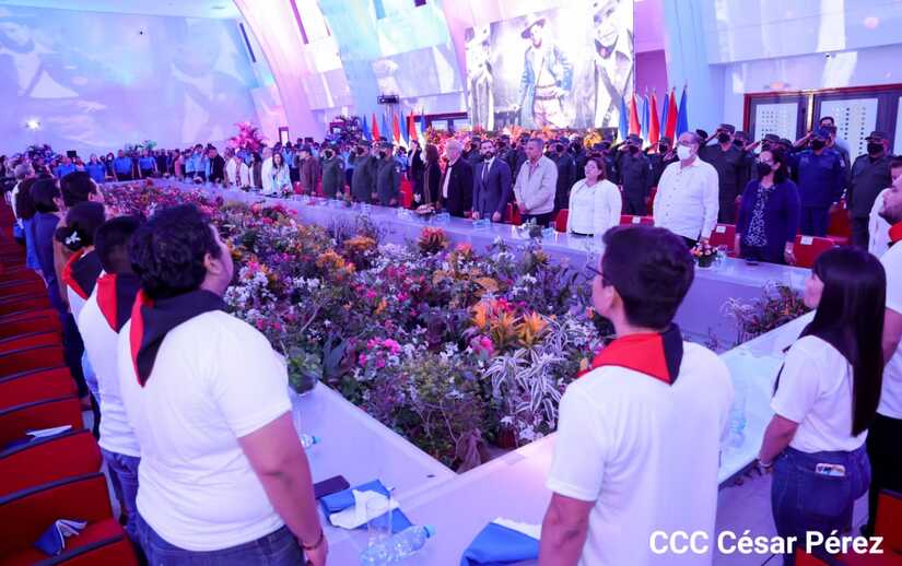 El Presidente Comandante Daniel Ortega y la Vicepresidenta Compañera Rosario Murillo, presiden el acto de conmemoración del Día de la Dignidad Nacional, fecha instituida en homenaje al General de Hombres y Mujeres Libres, Augusto C. Sandino, quien en 1927 se opuso al pacto de Espino Negro e impidió la intervención norteamericana.