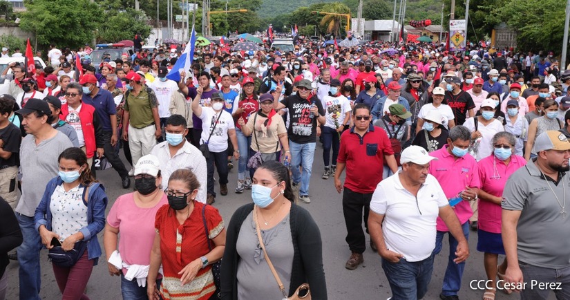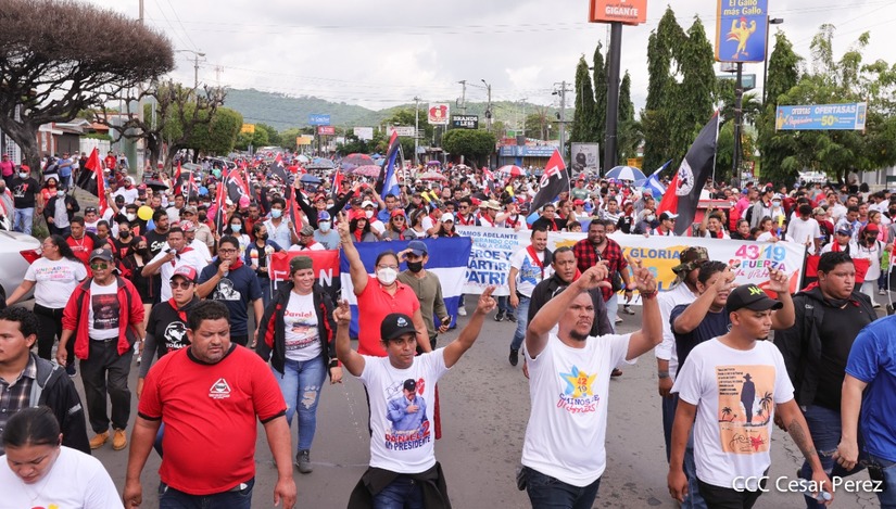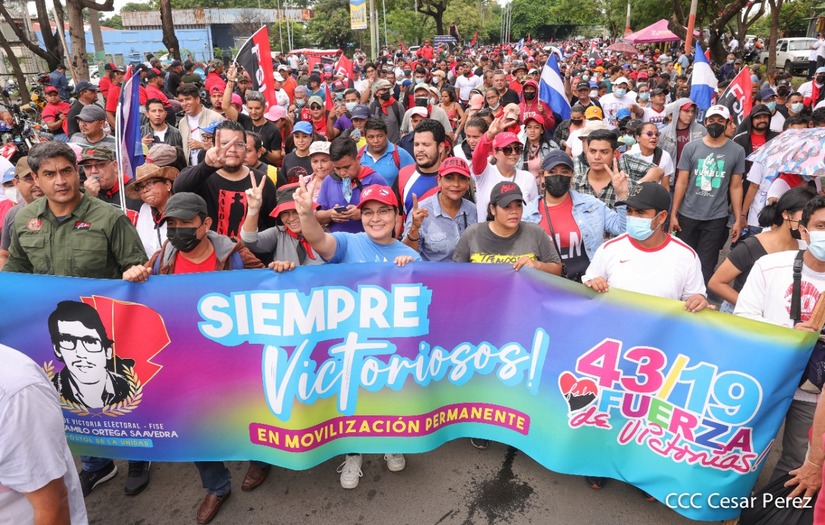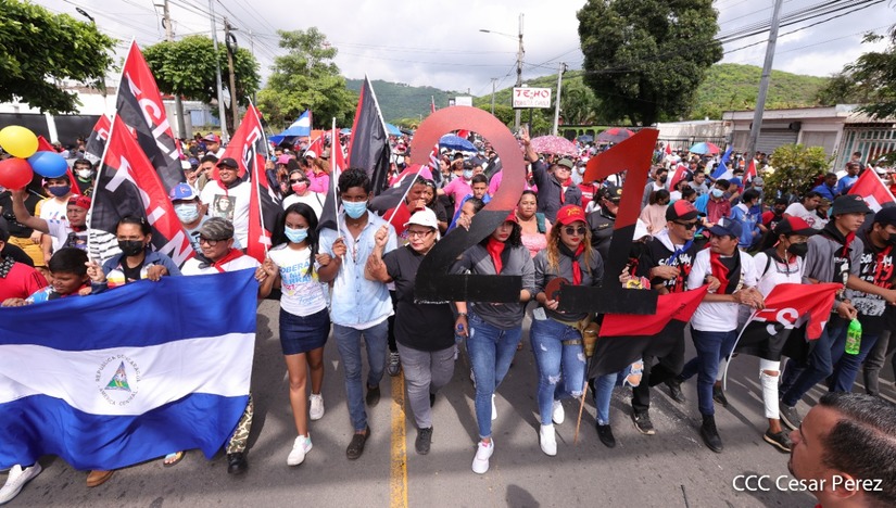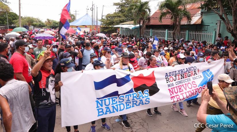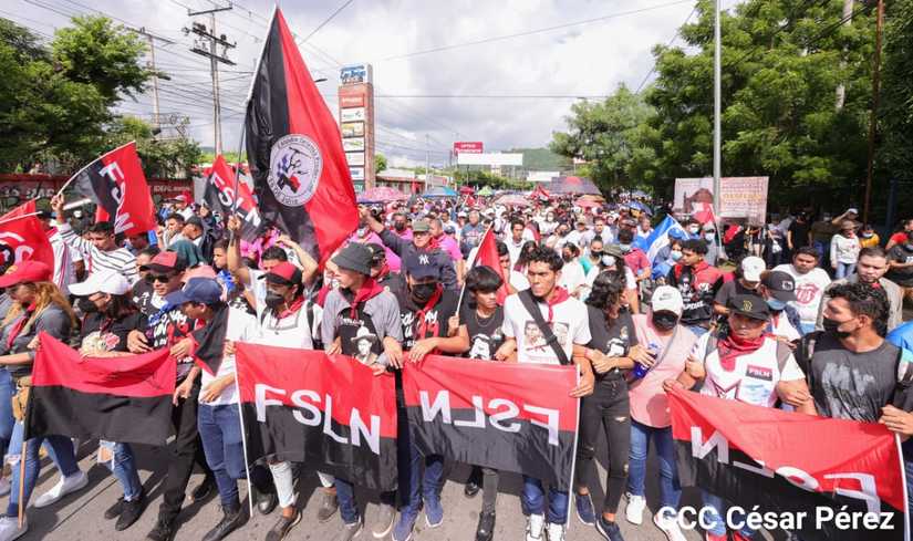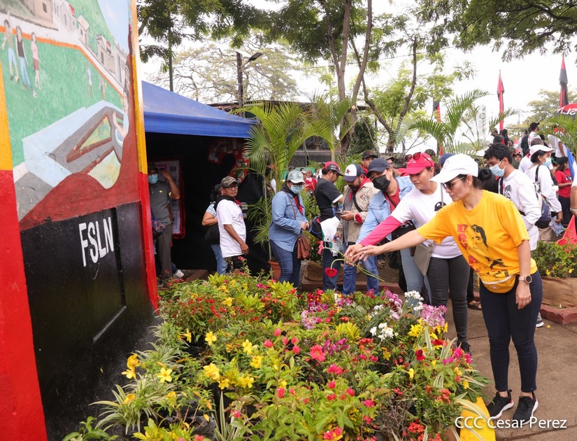 Cientos de nicaragüenses y militantes sandinistas salieron a las calles, este sábado 18 de junio, para realizar una caminata en homenaje al 43 aniversario de la Gesta Heróica de los Mártires de Batahola.