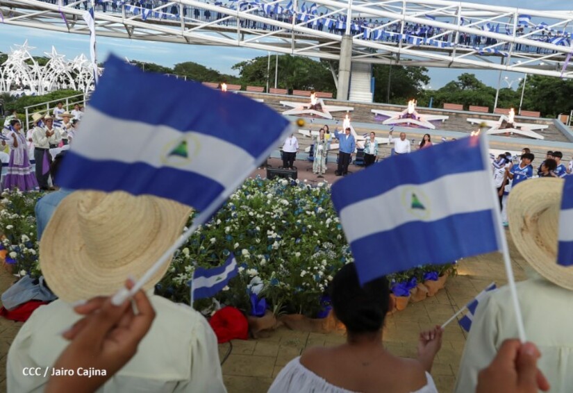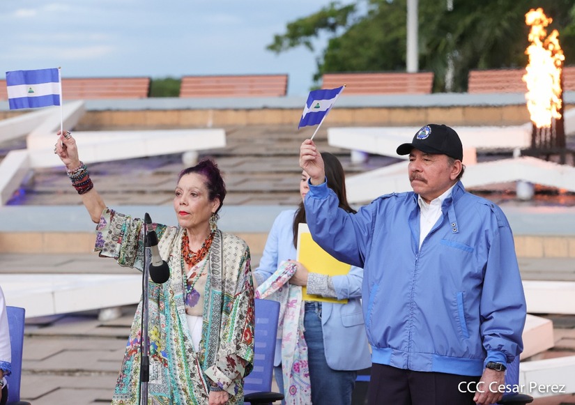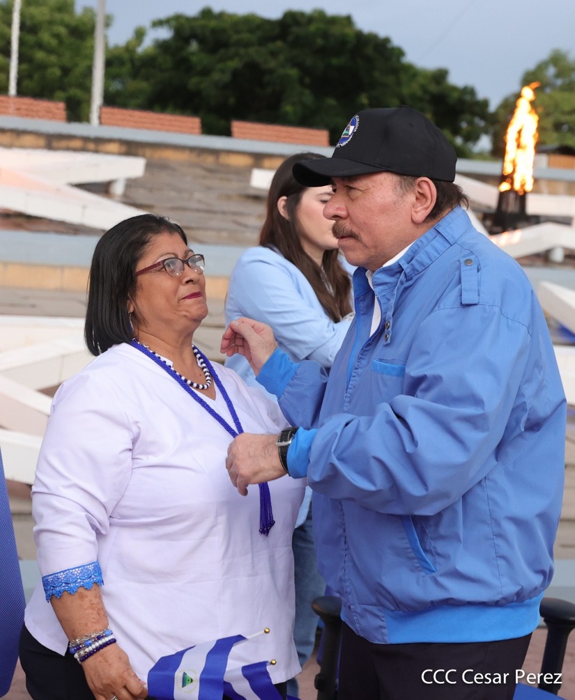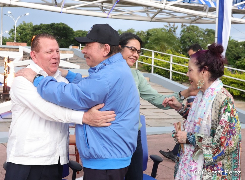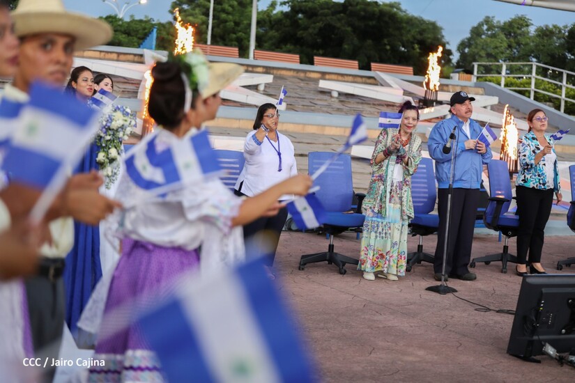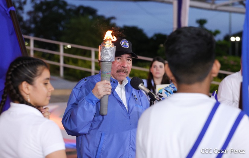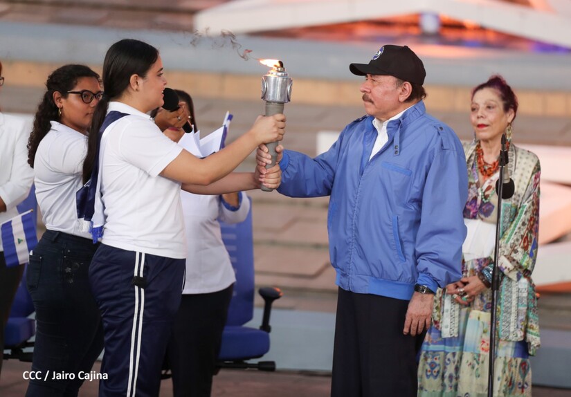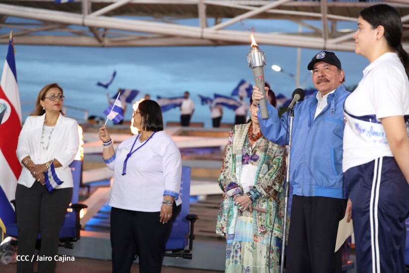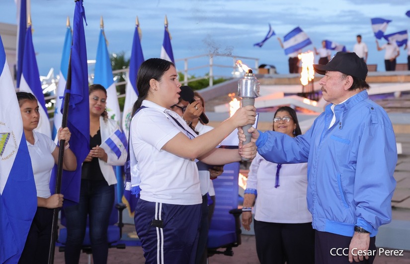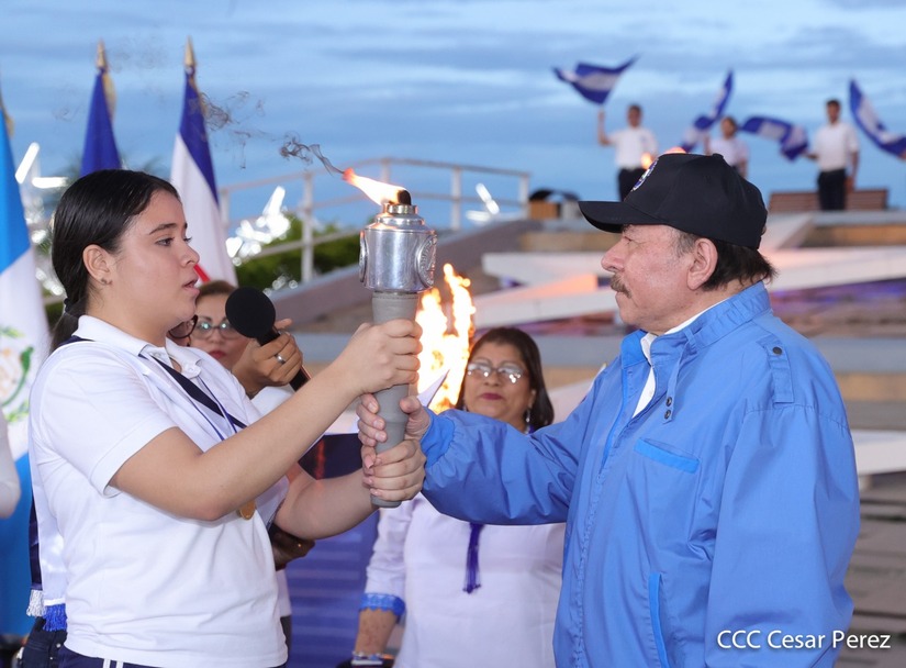 El Presidente Comandante Daniel Ortega y Compañera Vicepresidenta de Nicaragua, Rosario Murillo presidieron el acto de recibiento de la Antorcha Centroamericana de la Unión Fraternal.