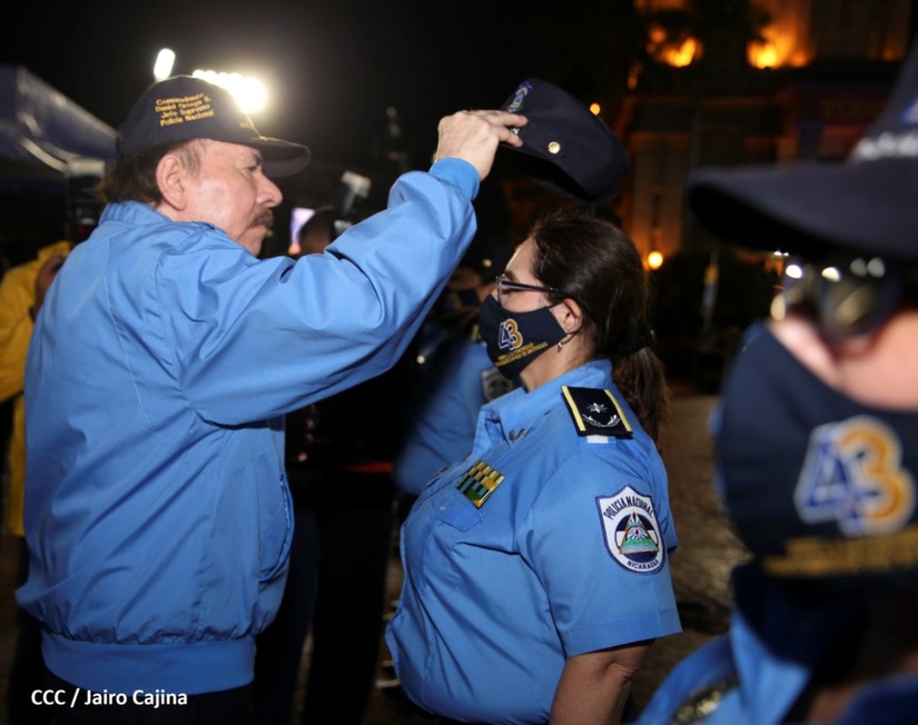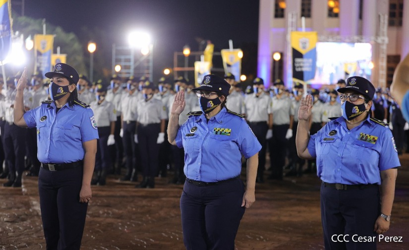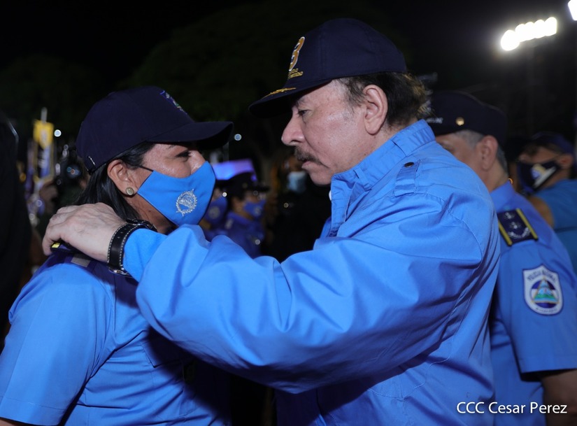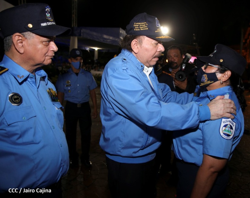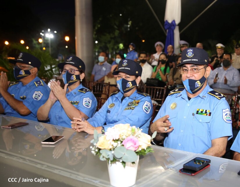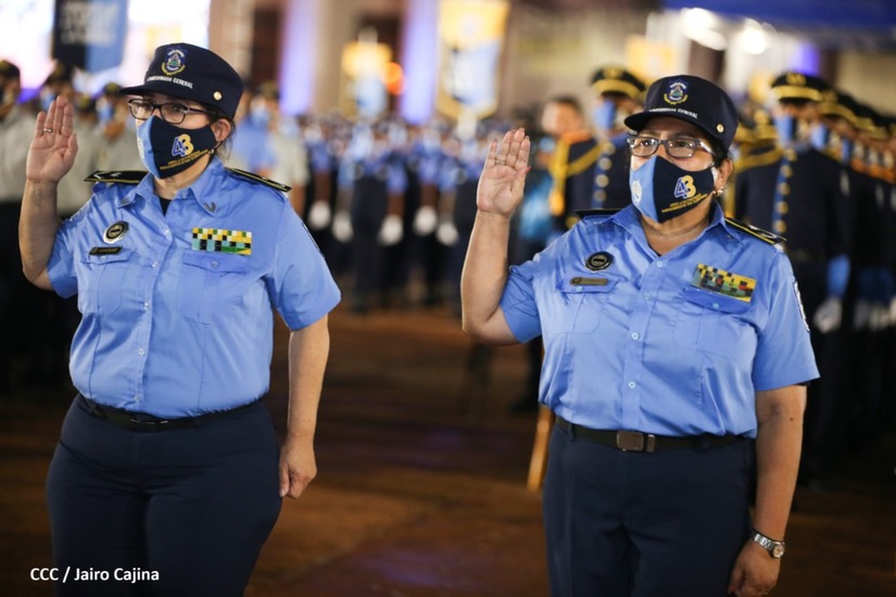 En el acto, el Comandante Daniel Ortega ascendió al grado de Comisionados Generales a 9 comisionados mayores de la Policía Nacional. Tres varones y 6 mujeres policiales.