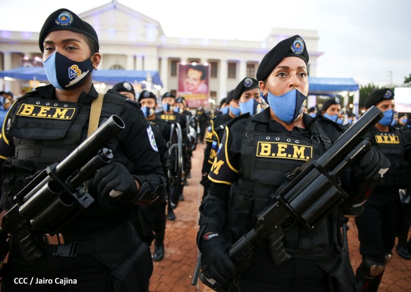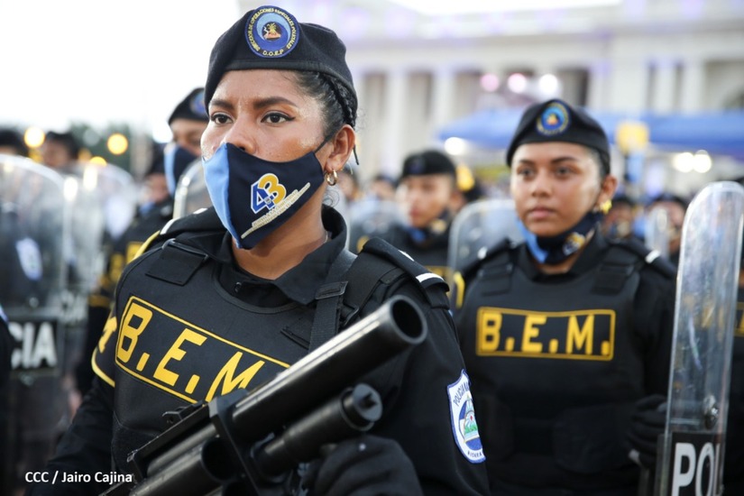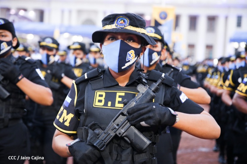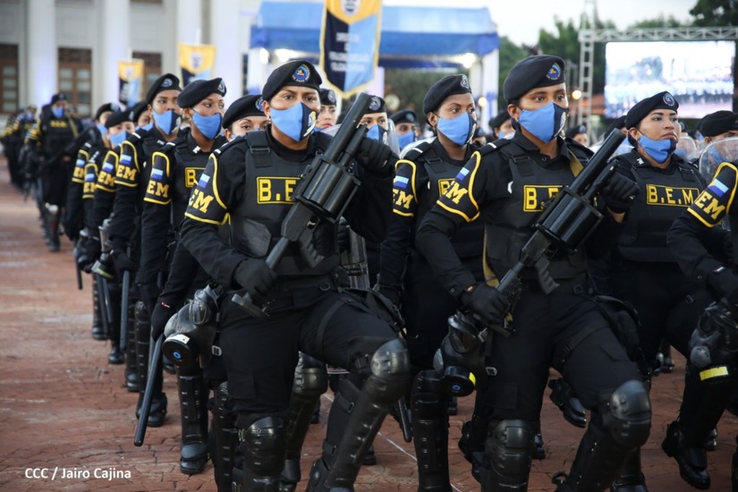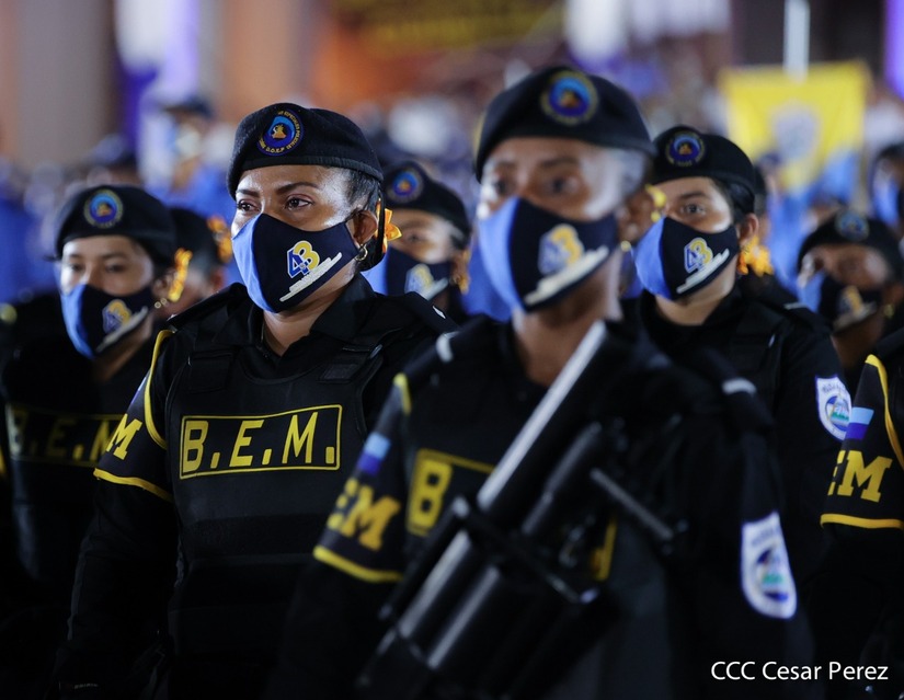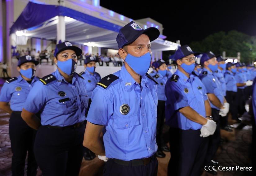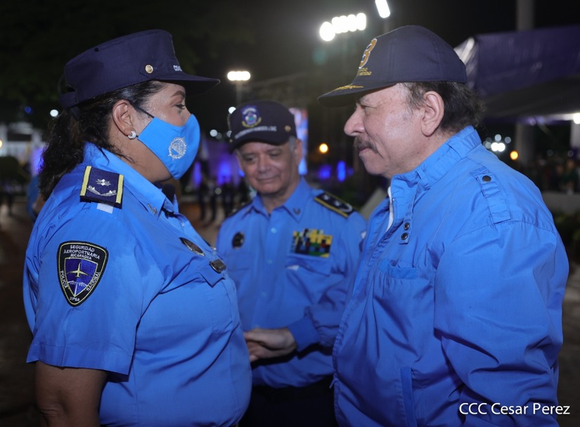 En el acto, el Comandante Daniel Ortega ascendió al grado de Comisionados Generales a 9 comisionados mayores de la Policía Nacional. Tres varones y 6 mujeres policiales.
