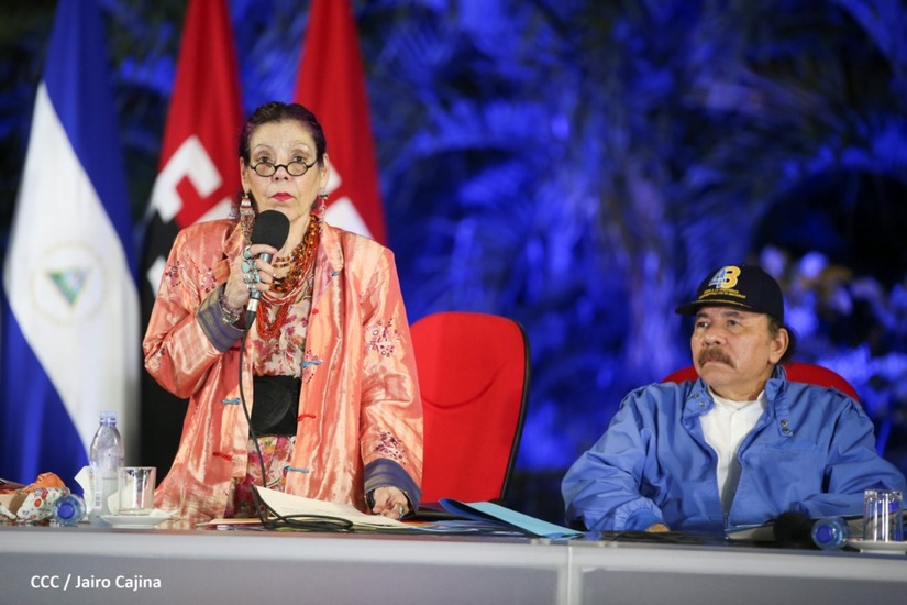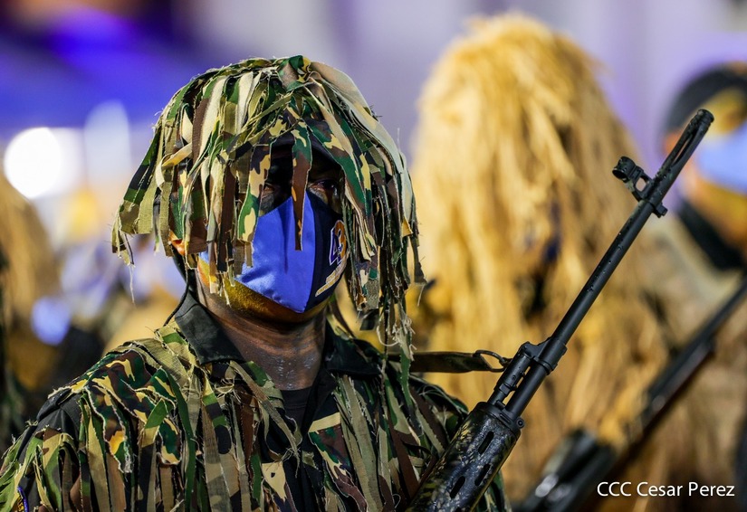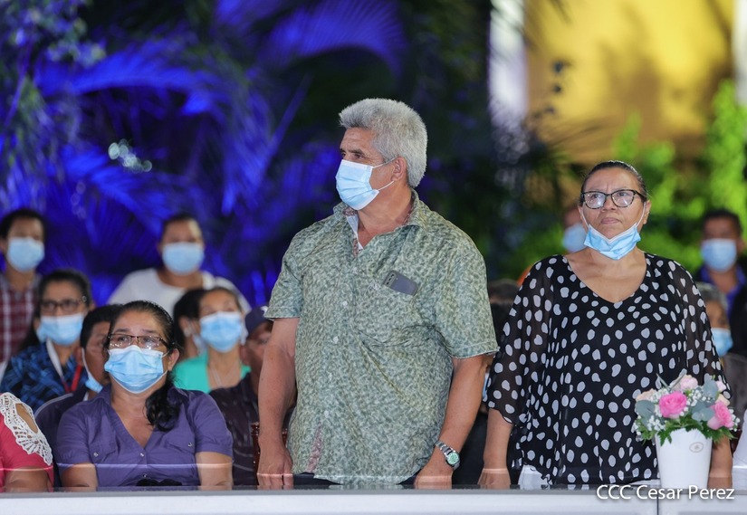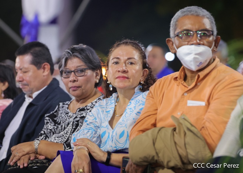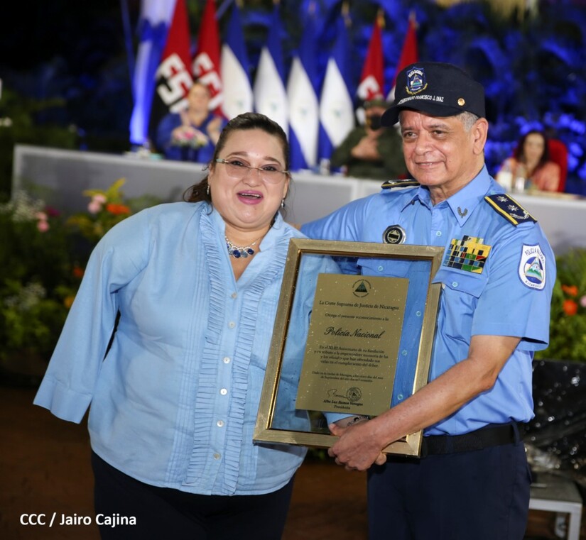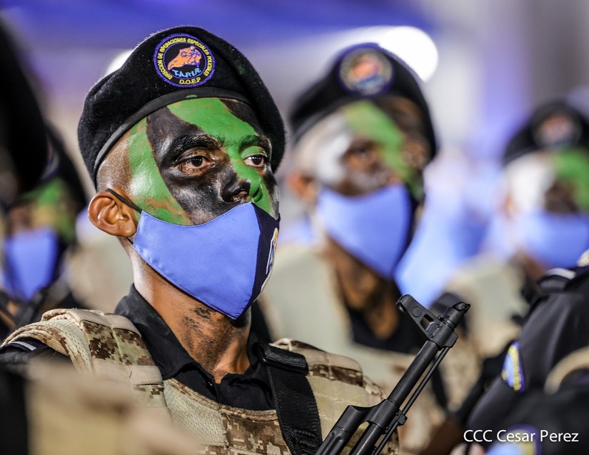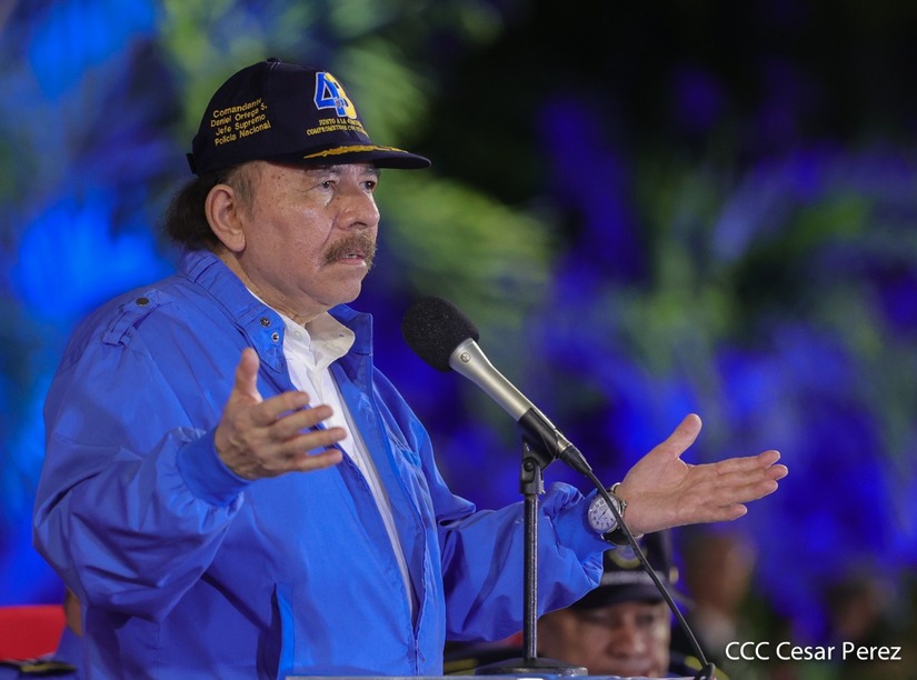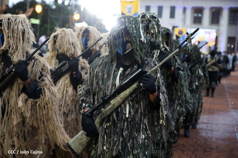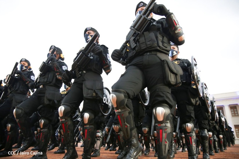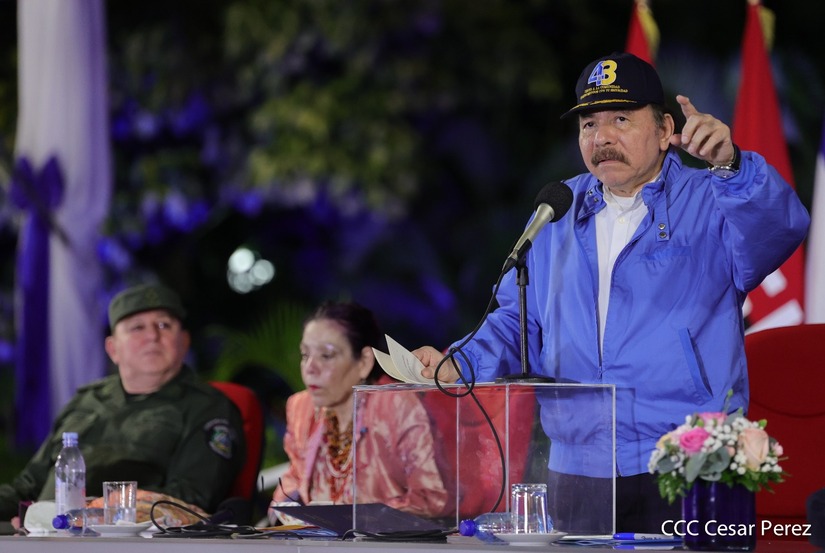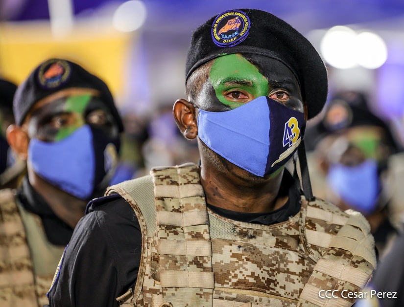 Desde la Plaza de la Revolución, el Presidente de la República, comandante Daniel Ortega Saavedra y la vicepresidenta compañera Rosario Murillo, presiden junto al primer comisionado general Francisco Díaz Director de la Policía Nacional, el acto en conmemoración del 43 aniversario de constitución de la Policía Nacional.