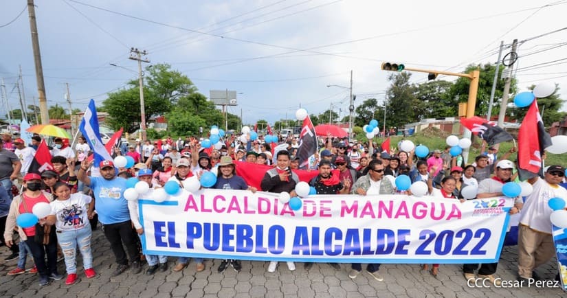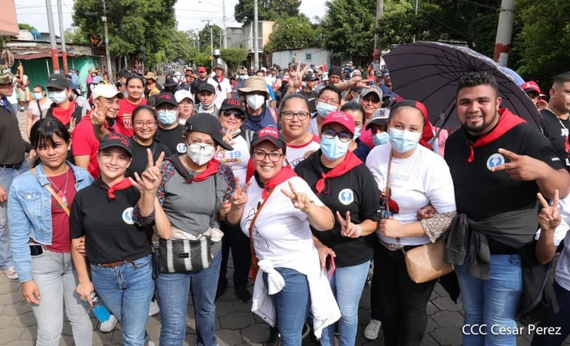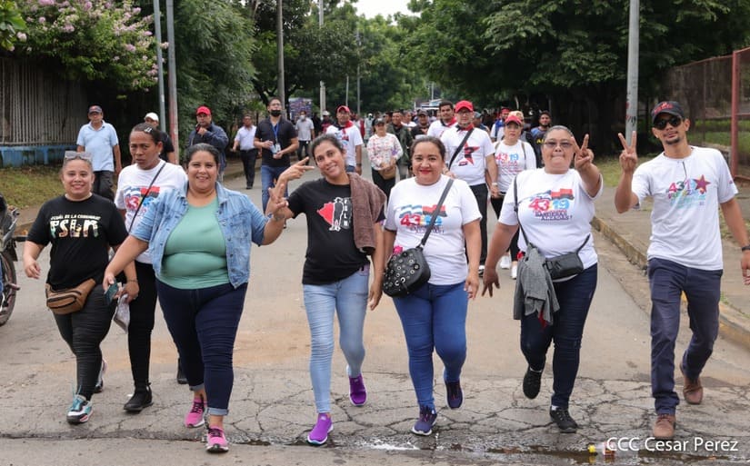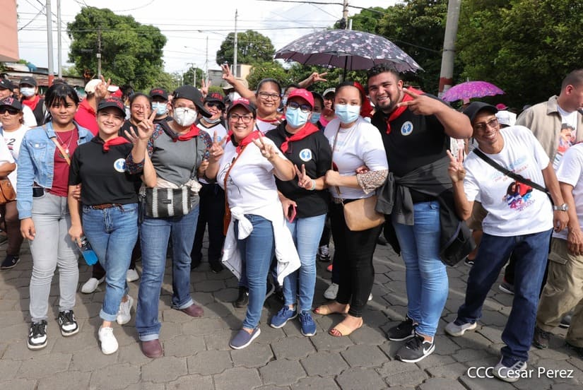 Como parte de las actividades de octubre victorioso y unidos todos con amor hacia la Revolución Sandinista, miles de capitalinos se sumaron a la caminata de este fin de semana que inició en la Colonia Máximo Jerez y recorrió los barrios orientales de Managua.