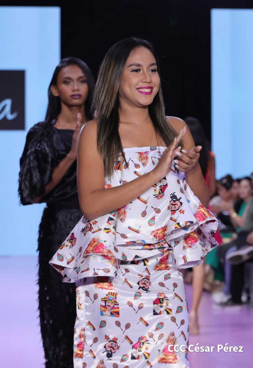 Entre las colecciones presentadas también en este segundo día están Mamarracho, El Cadejo de Joseph Mendoza y la colección Constelación de Xiomara Blandino que está llena de brillo y glamour juvenil.