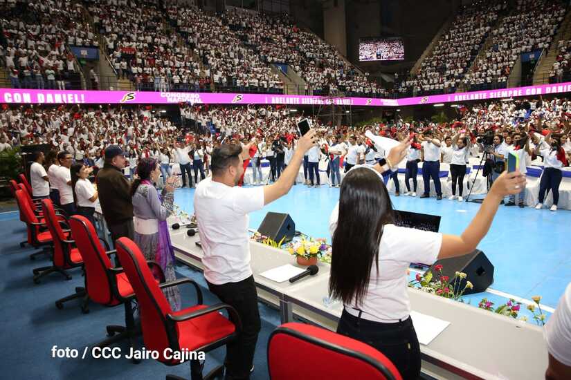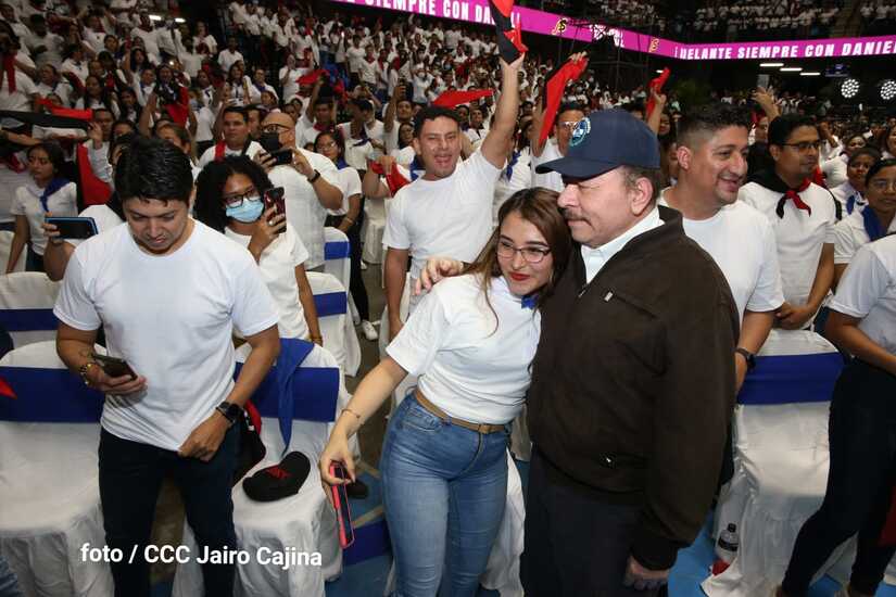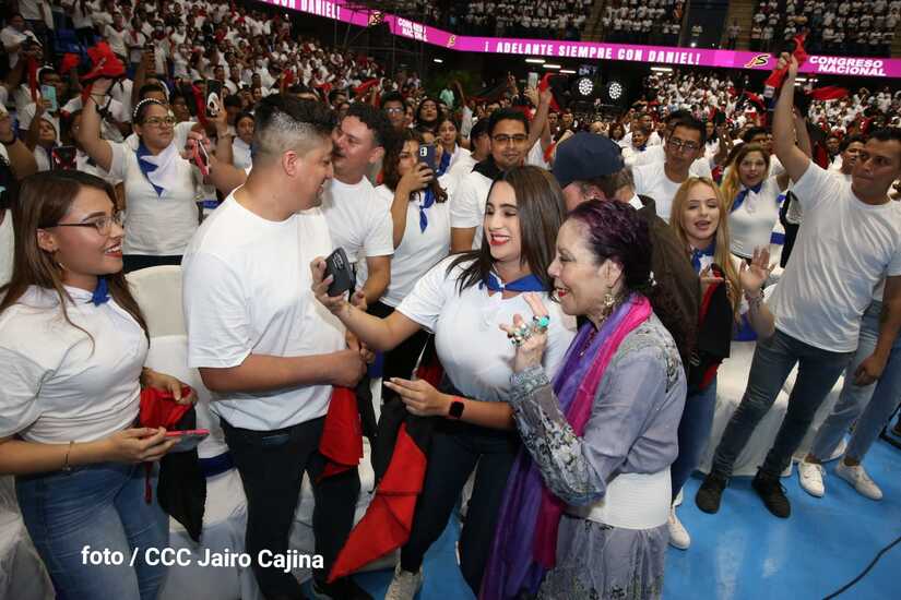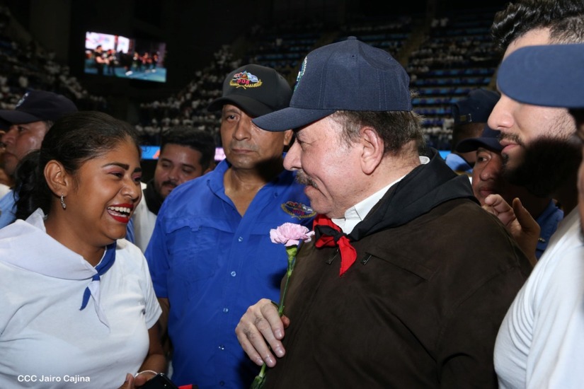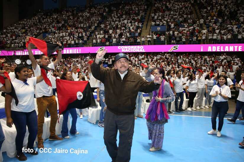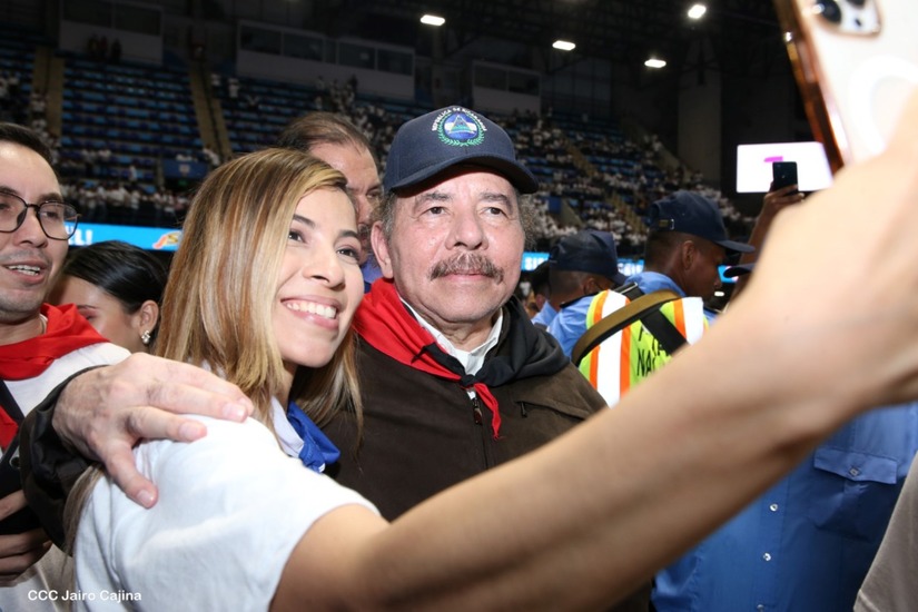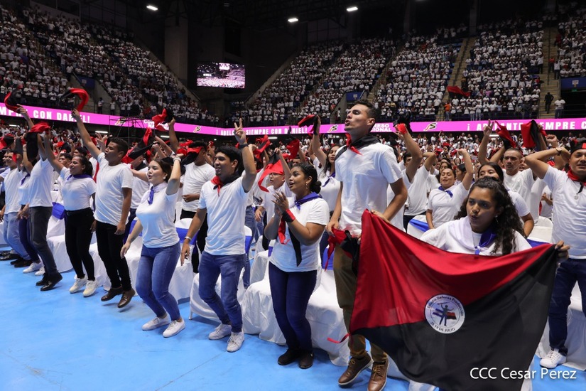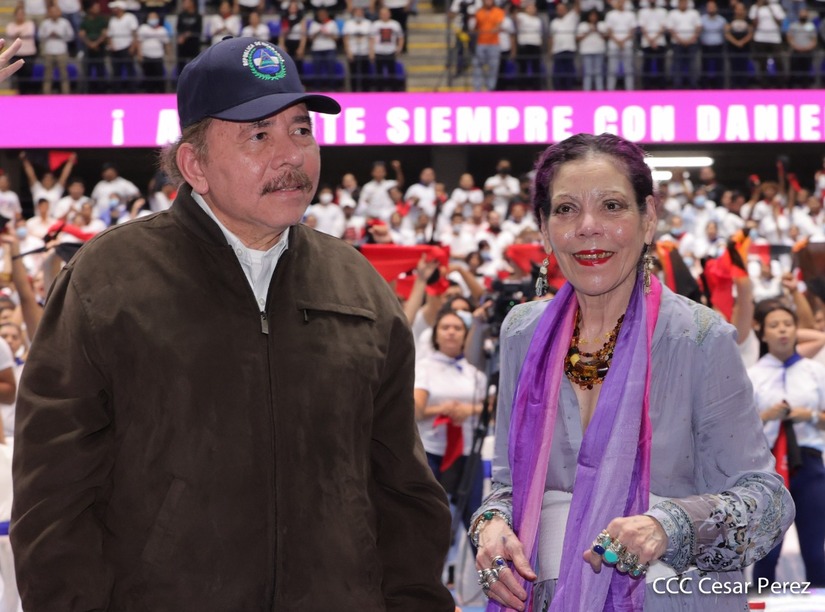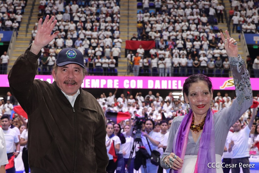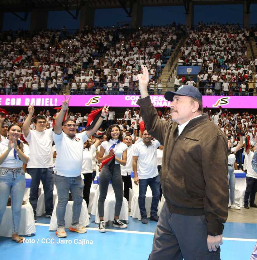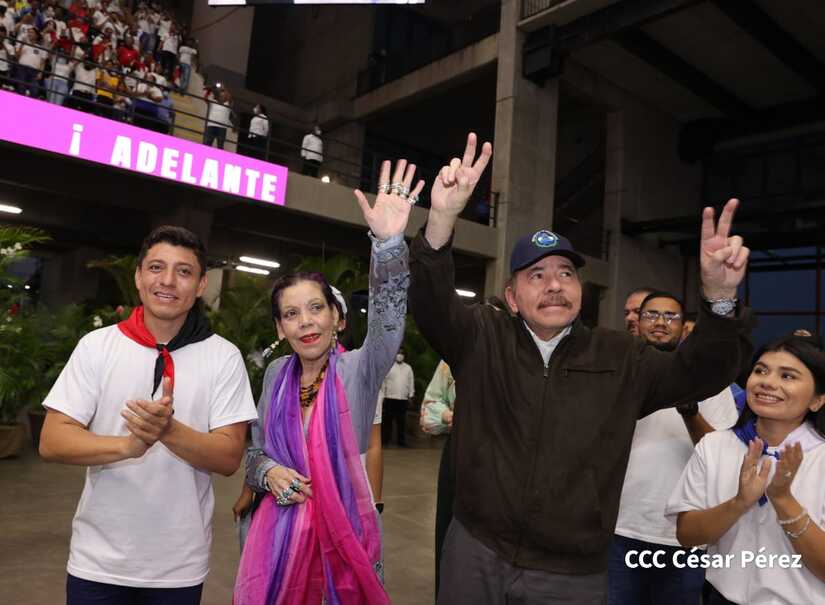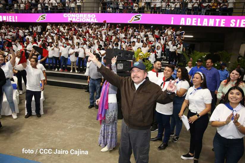 El Presidente Comandante Daniel Ortega y la Vicepresidenta Compañera Rosario Murillo participan en la clausura del Congreso Nacional de la Juventud Sandinista desde el Polideportivo Alexis Argüello.