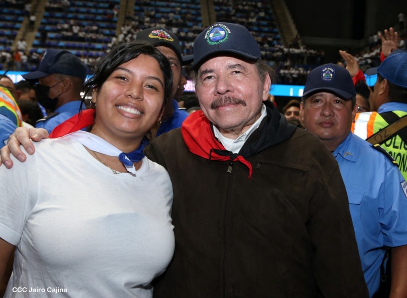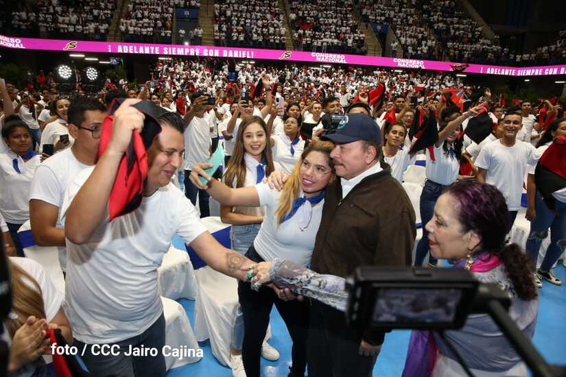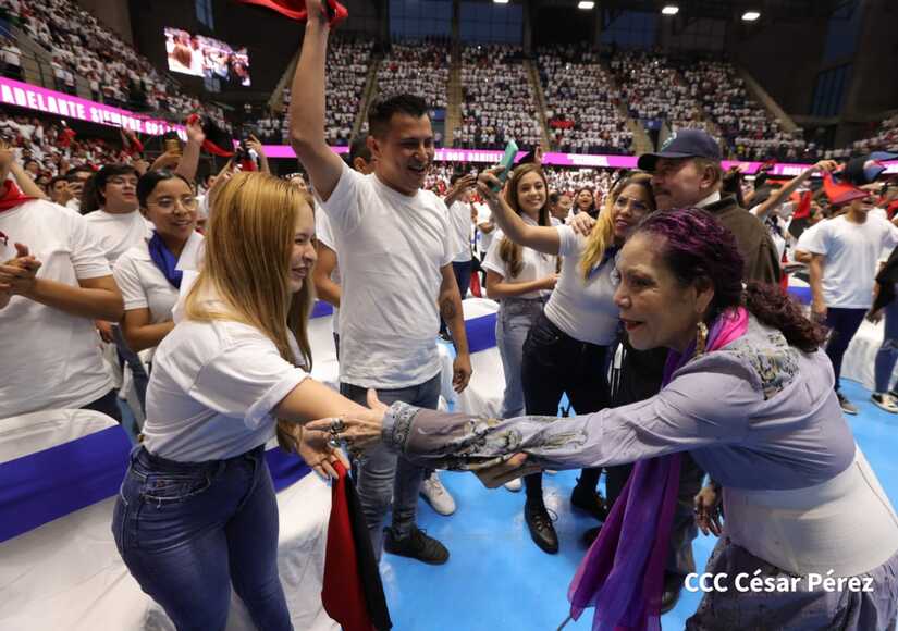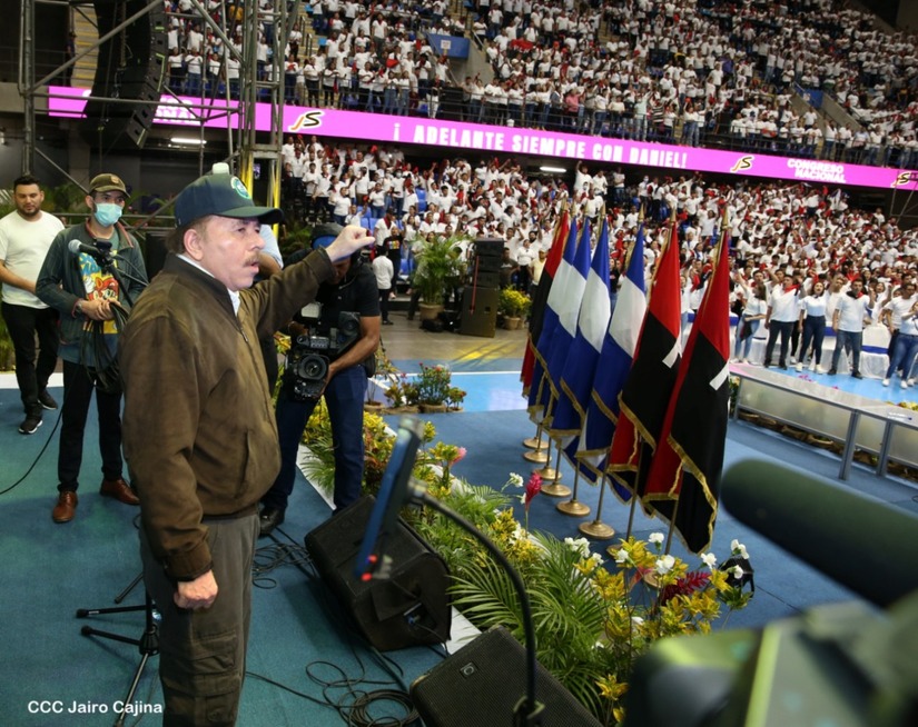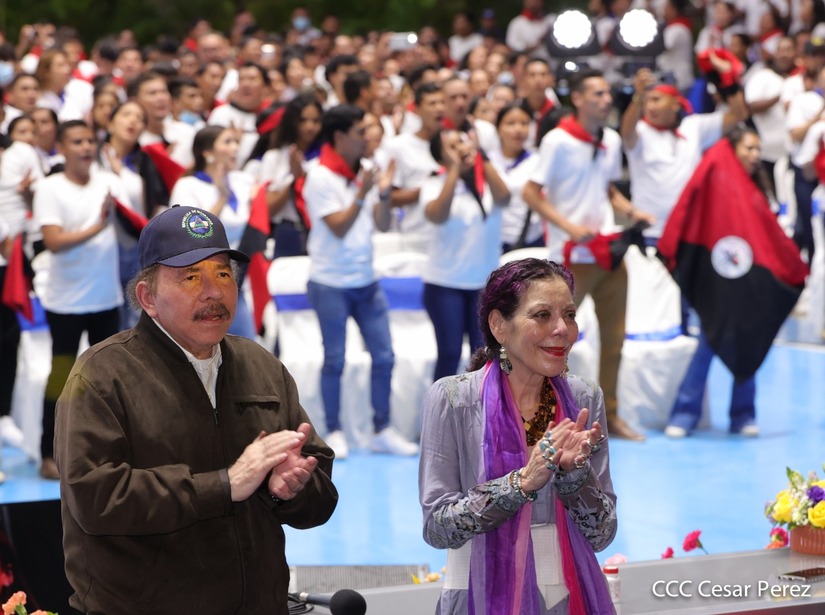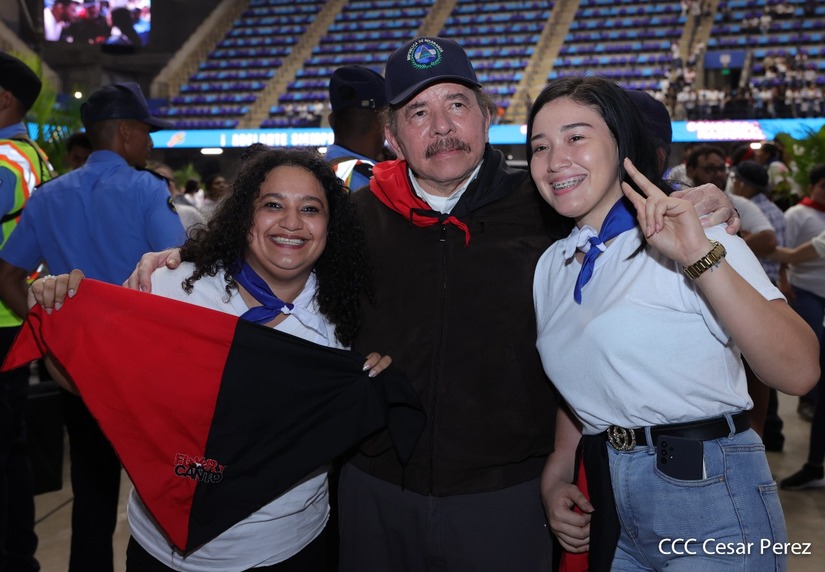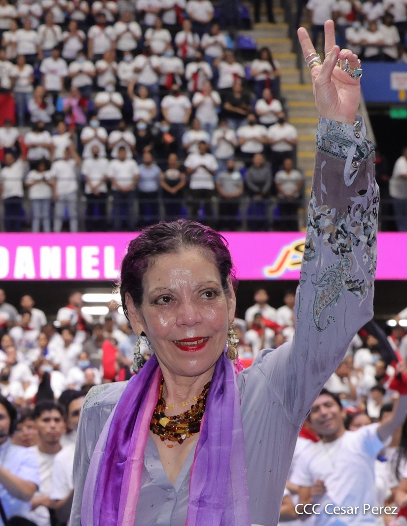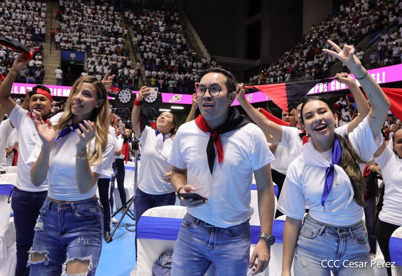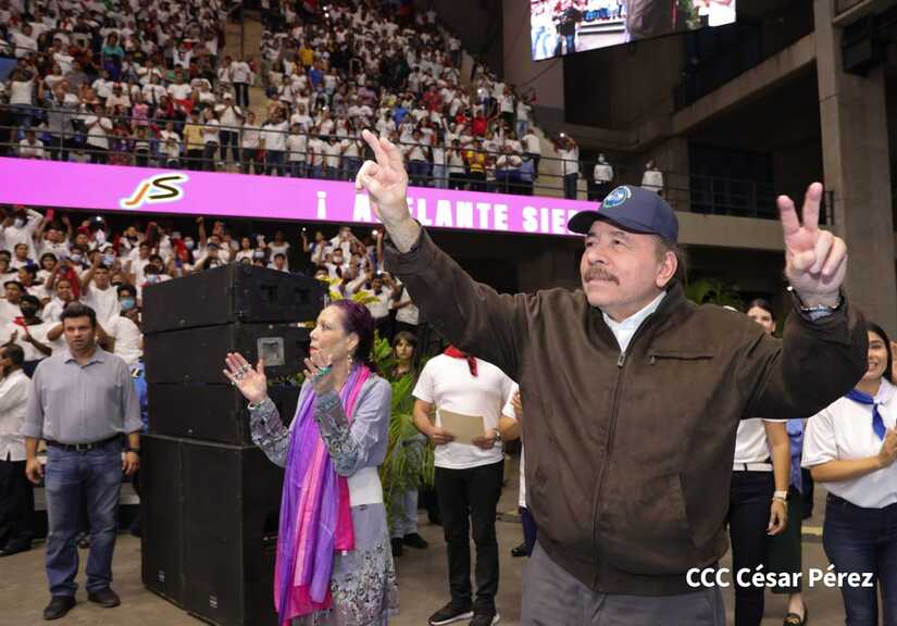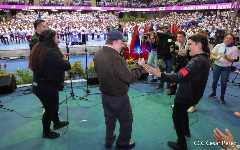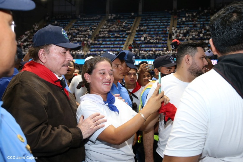 El Presidente Comandante Daniel Ortega y la Vicepresidenta Compañera Rosario Murillo participan en la clausura del Congreso Nacional de la Juventud Sandinista desde el Polideportivo Alexis Argüello.